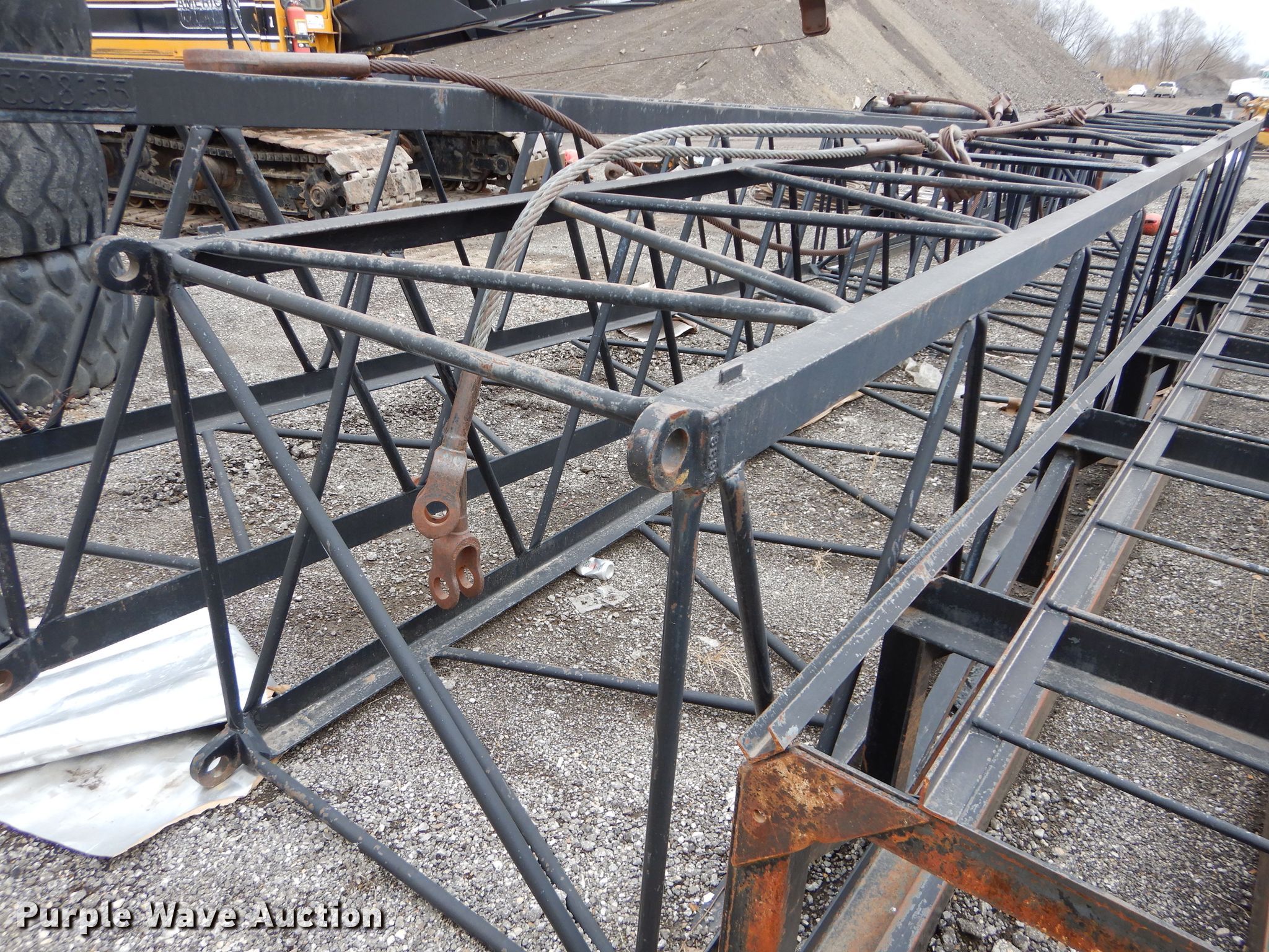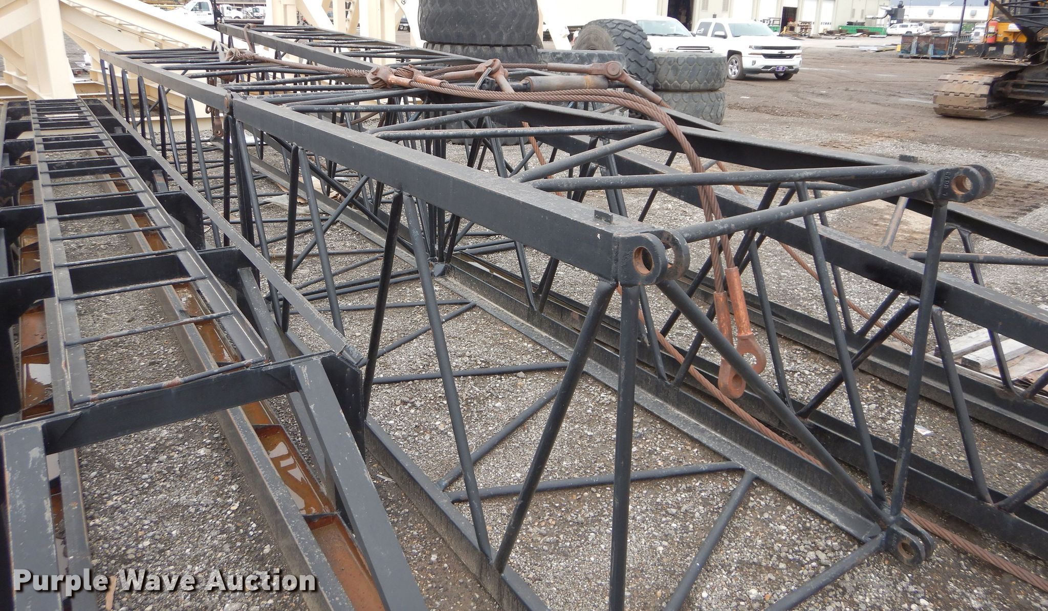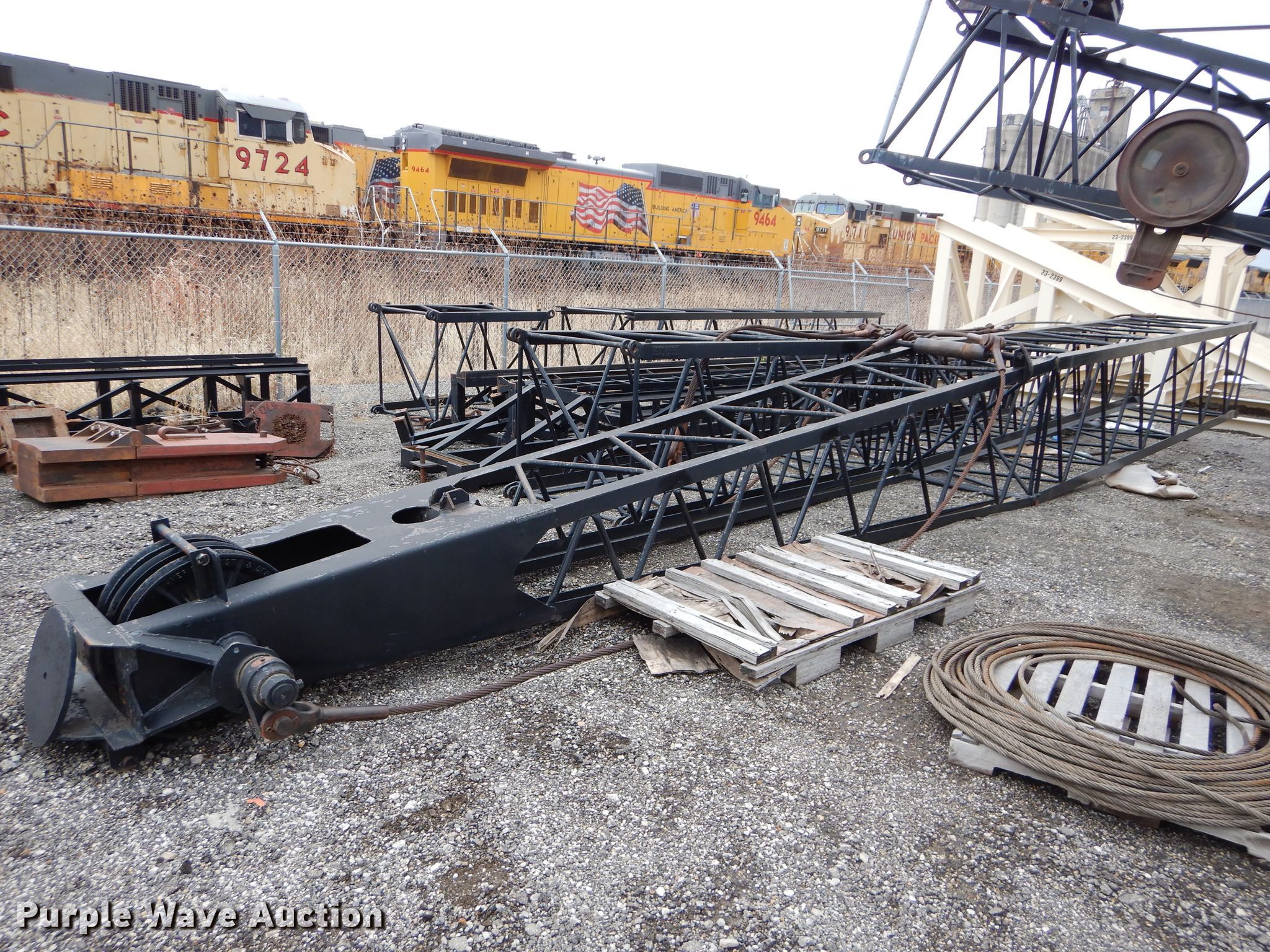 American 599C crane. 8,508 hours on meter, Serial: GS5064. Engine Detroit Diesel 461, Cylinders: 4, Fuel type: Diesel. Chassis Crawler Propulsion: Mechanical, Controls: Air actuated. Operators station Enclosed cab, Crane controls: Stick. Operational Boom Lattice, Boom length: 95', Sections: 4, Maximum lift capacity: 80,000 lbs, Boom controls, Winches: 2. Tracks Width: 35", Extendable tracks. Bettis Asphalt. 1800 NW Brickyard Rd. Topeka, KS 66601