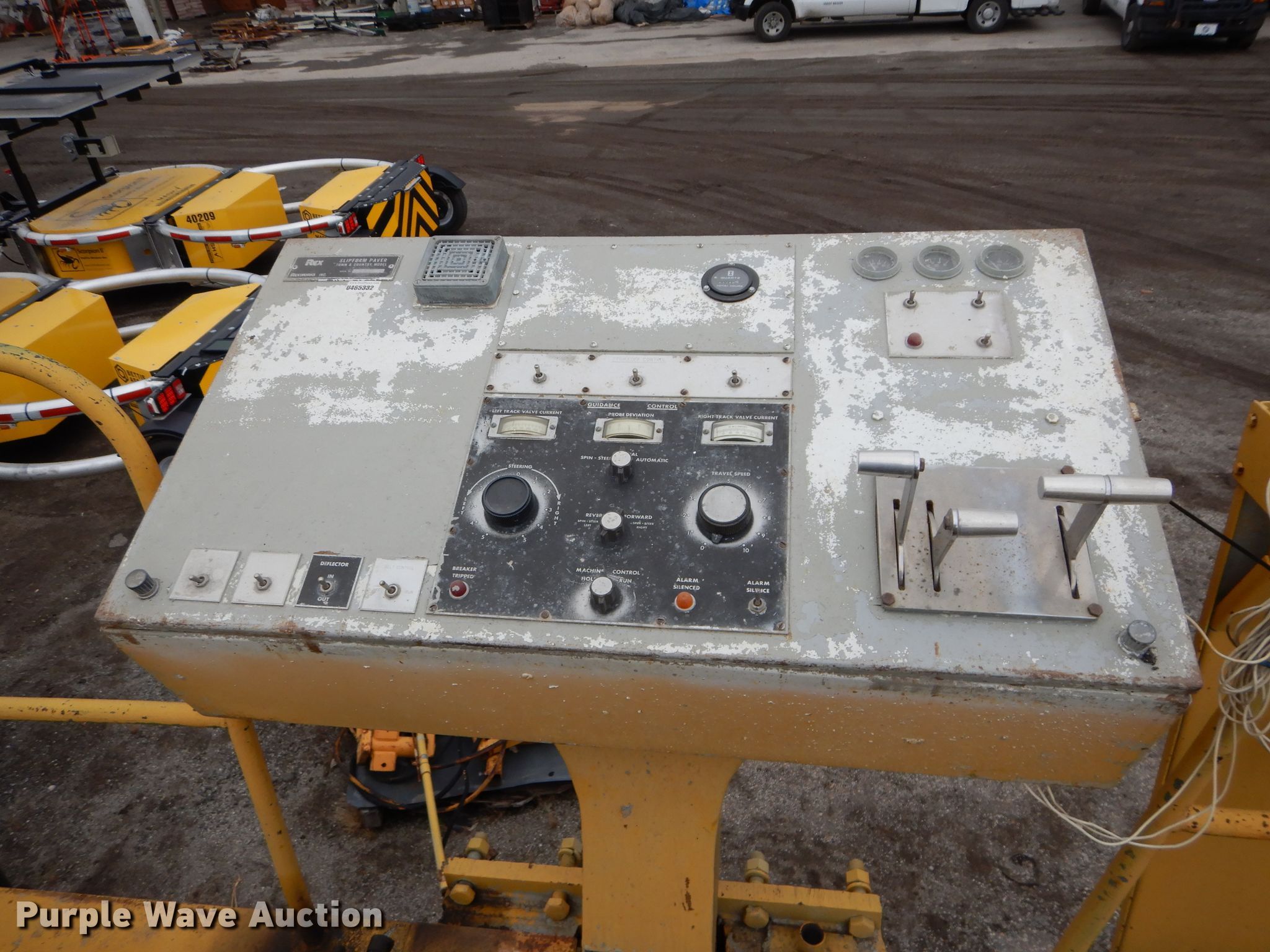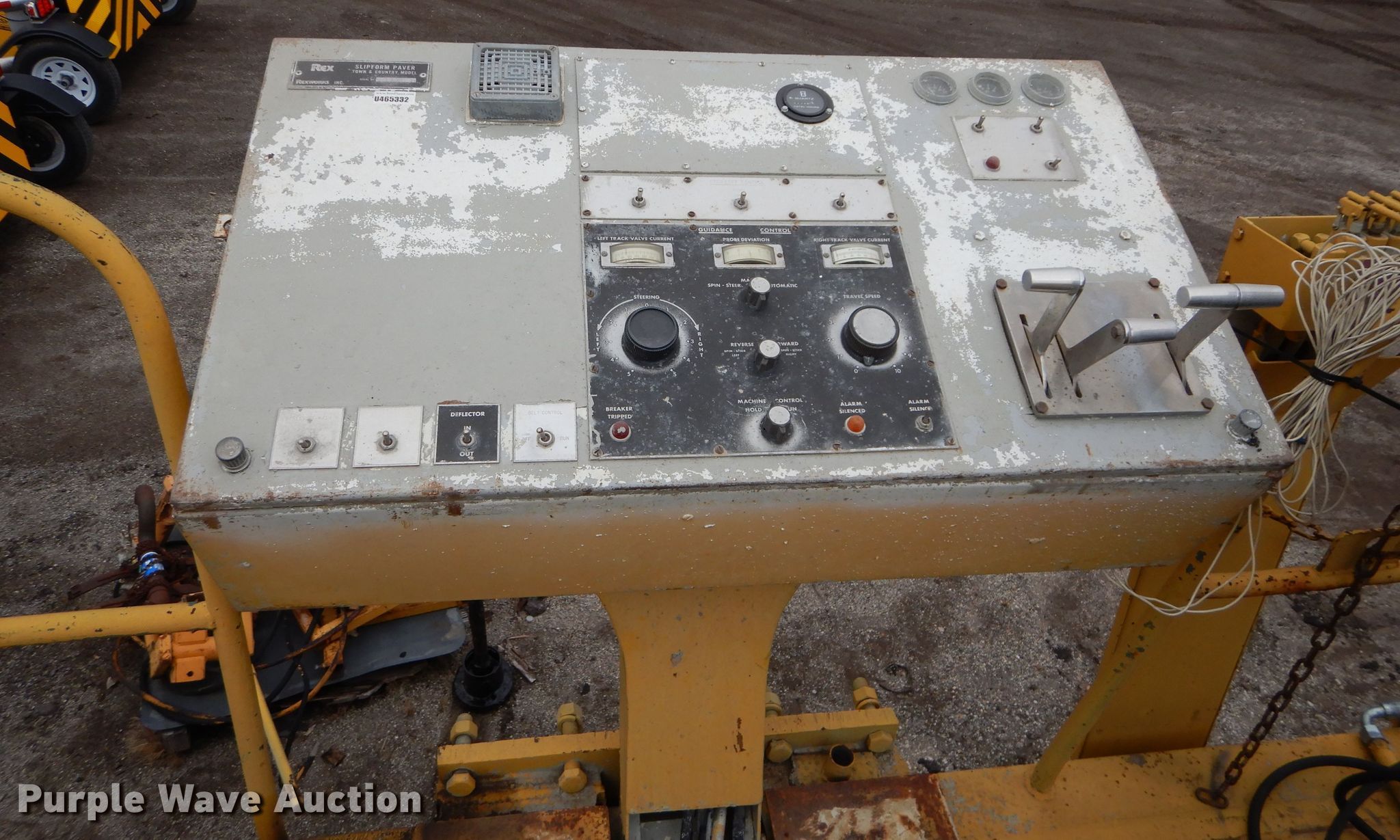 Purple Wave is selling a used Concrete Paver or Curb Machine in Kansas. This item is a Rex Town & Country slip form paver with the following: 378 hours on meter, Caterpillar 3306B six cylinder diesel engine, Hydrostatic transmission, 14' to 24' paving width, 60"W belt, 12"W double grouser track pads, Possible engine idle issues, Serial ECA8798