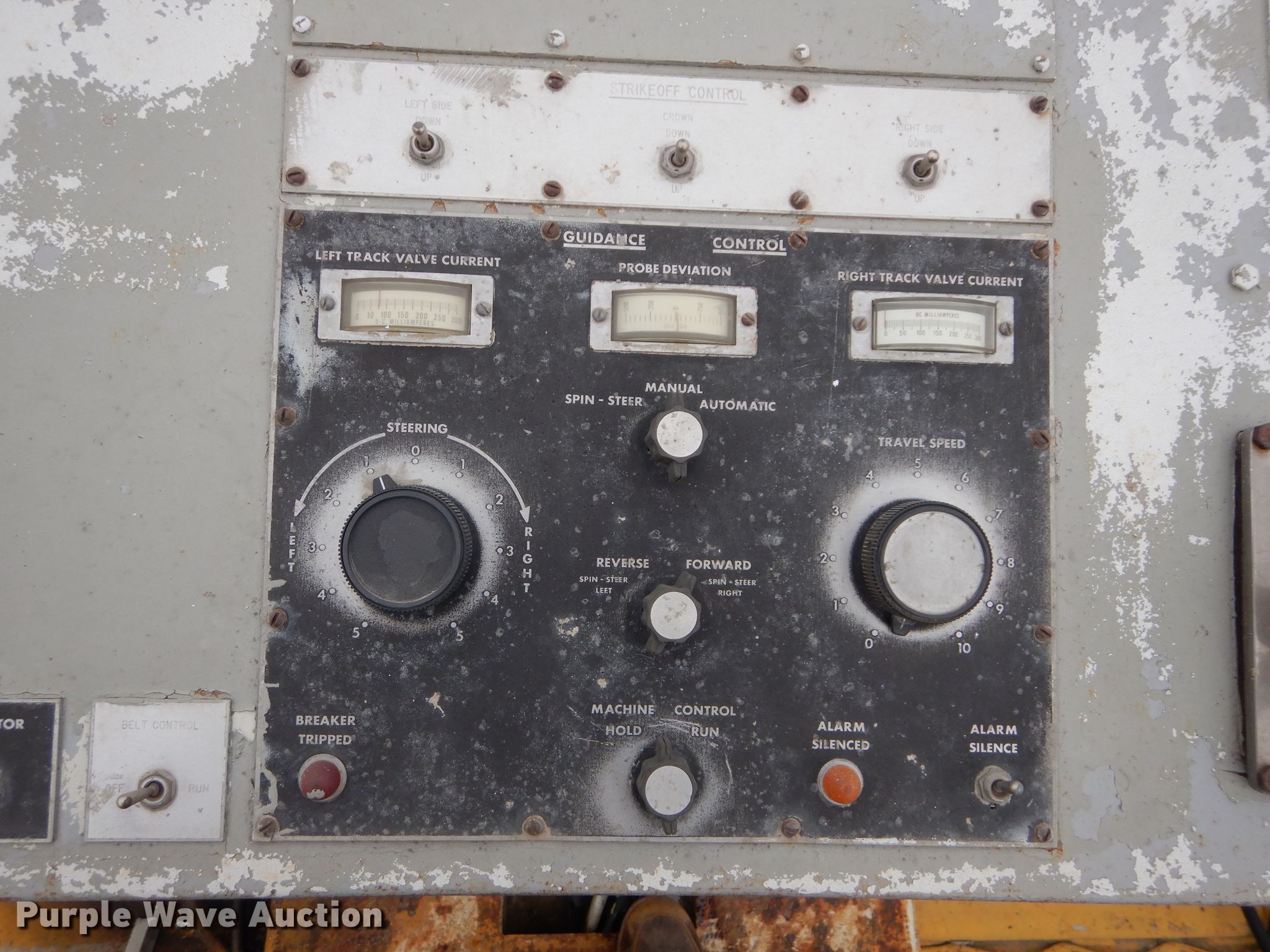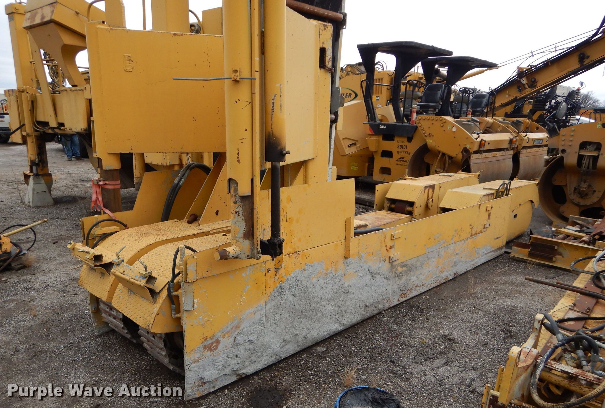 Rex Town & Country slip form paver. 378 hours on meter, Caterpillar 3306B six cylinder diesel engine, Hydrostatic transmission, 14' to 24' paving width, 60"W belt, 12"W double grouser track pads, Possible engine idle issues, Serial ECA8798. Bettis Asphalt. 1800 NW Brickyard Rd. Topeka, KS 66601
