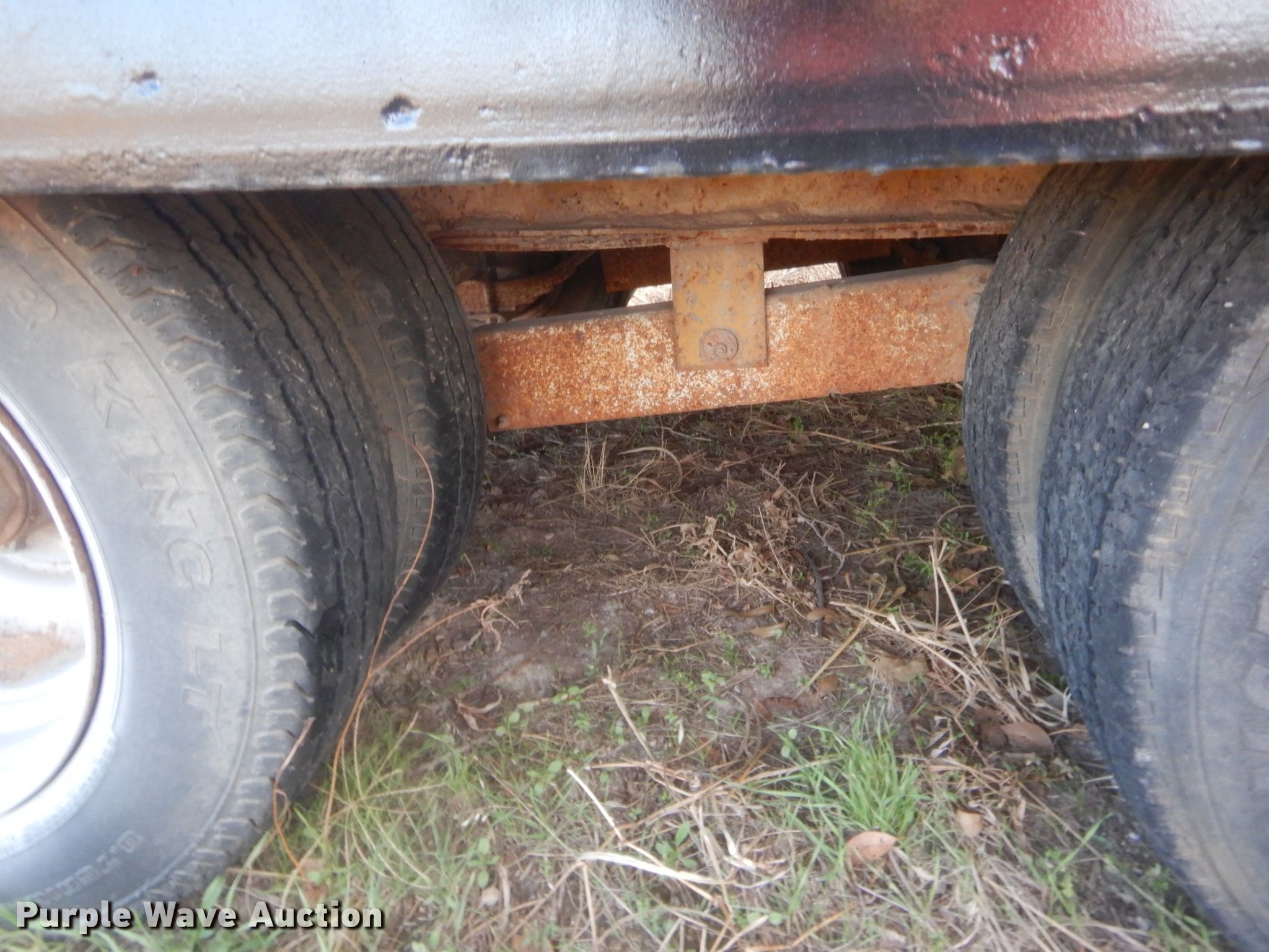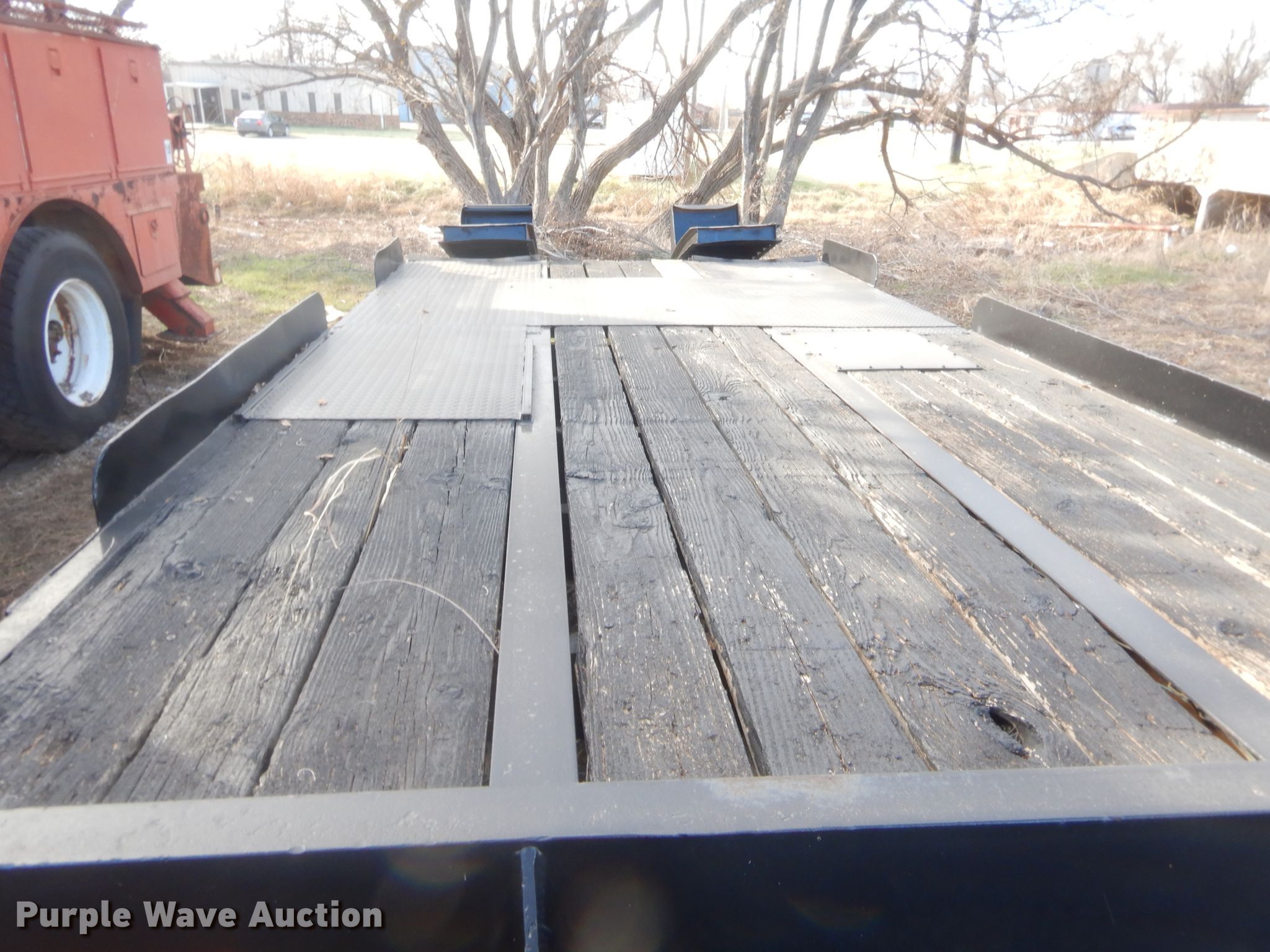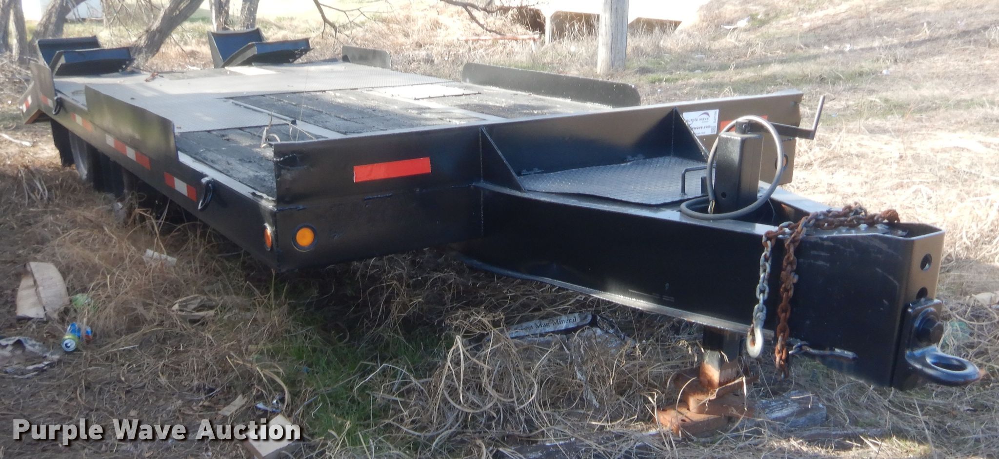 Purple Wave is selling a used Equip. Trailer in Oklahoma. This item is a Shop built equipment trailer with the following: 25'L x 96"W overall, 16'L x 96"W wood deck, 5' tail length, 4.5'L ramps, Single leg landing gear, Spring suspension, Electric brakes, Tandem axle, 225/75R16 tires
