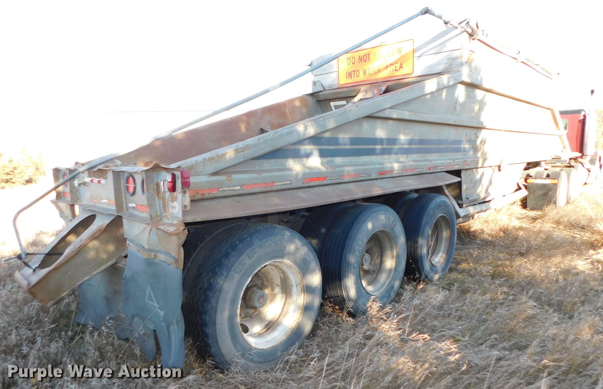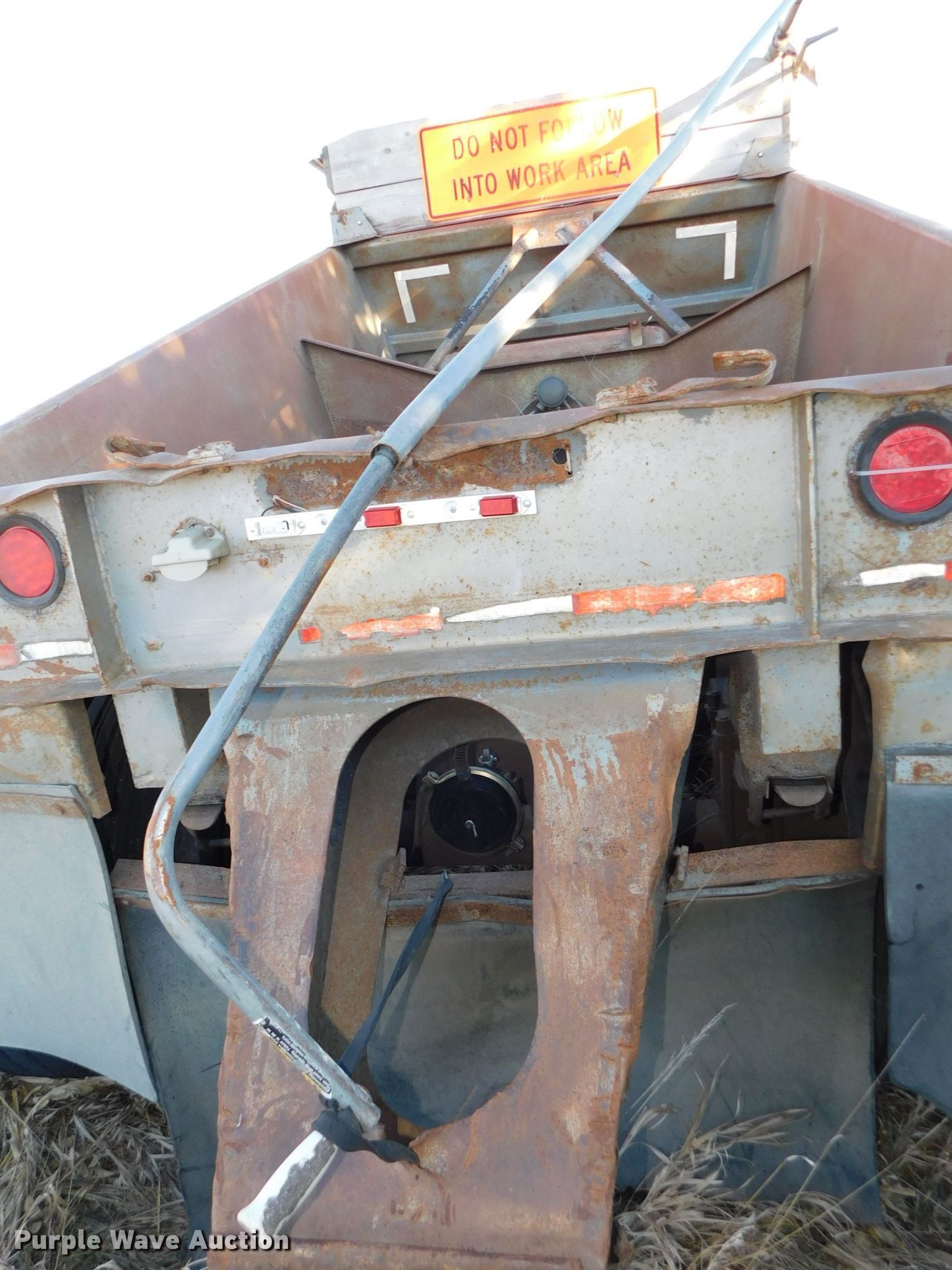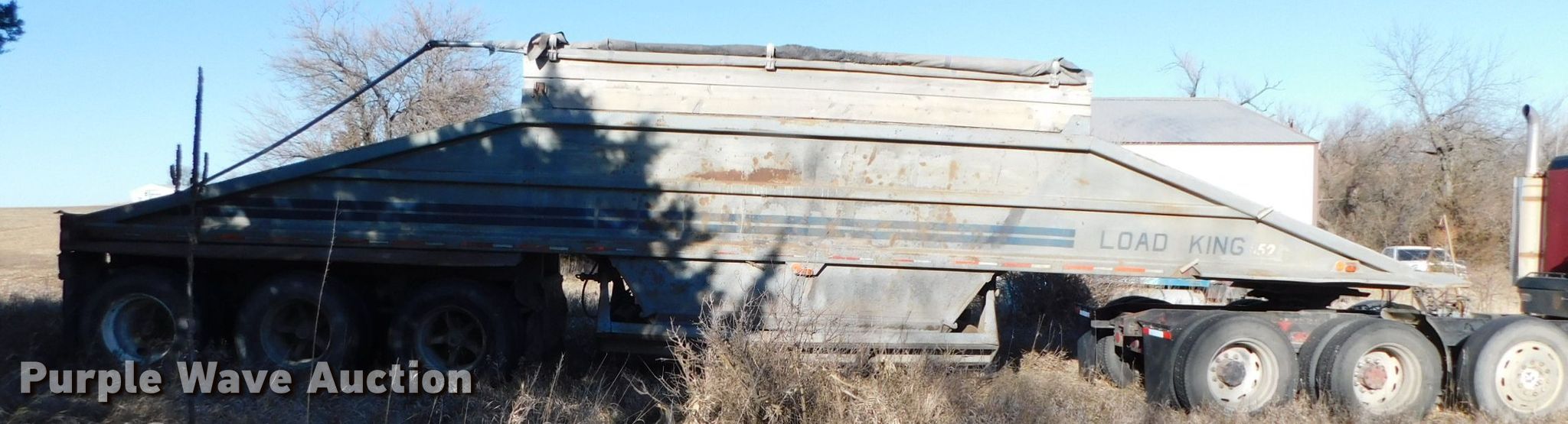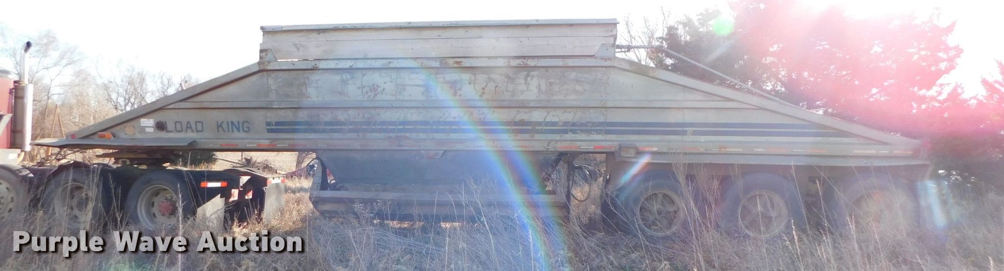 Purple Wave is selling a used Bottom Dump Trailer in Nebraska. This item is a 1985 Load King 1827-0-3AXLE bottom dump trailer with the following: 38'L overall, 16" side board height, 18 cu.yd. capacity, Air operated clamshell gate, Trailer controls, Rear push block, Dual leg landing gear, Spring suspension, Air brakes, Triple axle, 11R22.5 tires, GVWR 66,900 lbs, GAWR 20,000 lbs