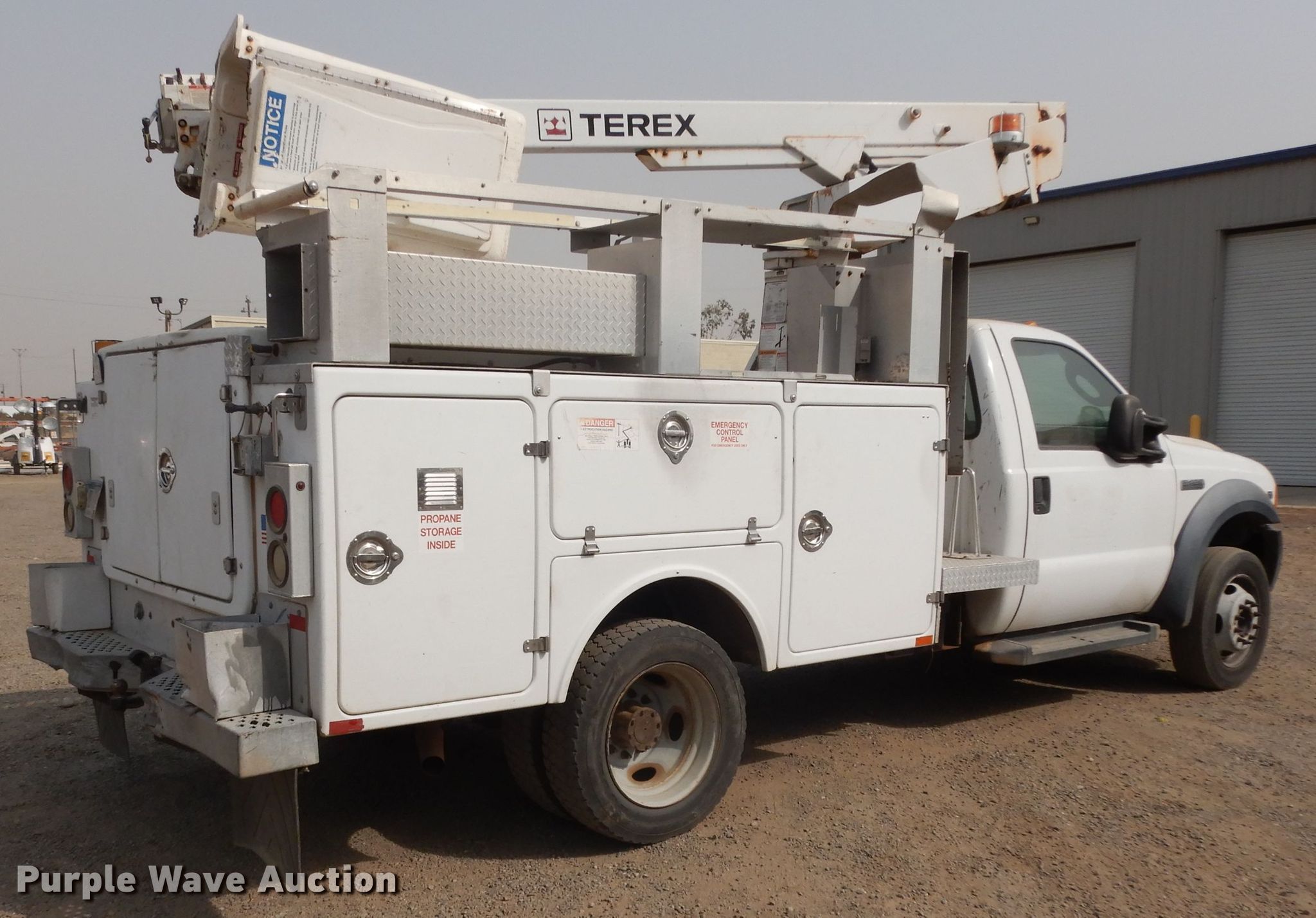 2006 Ford F450 Super Duty bucket truck. 168,428 miles on odometer. Engine Displacement: 6.8L SOHC 30V, Cylinders: 10, Fuel type: Gas, HP: 305. Transmission Automatic. Chassis Axles: Single, Suspension: Spring, Brakes: Hydraulic, GVWR: 16,000 lbs, Wheelbase: 165". Interior AC, Heat, Auxiliary controls, Brake controller. Operational Utility bed Brand FX, Serial: 05-11582, Length: 8', Boom 2006 Terex Hi-Ranger T292, Serial: 2050731160, Boom length: 13', Maximum lift capacity: 300 lbs, Maximum lift height: 29', Boom type: Telescopic, Man basket, Boom controls Ground, Platform/ basket.. Tires Size: 225/70R19.5. Minnesota title. 1FDXF46Y56ED65055. 1840 E Gerard Ave. Merced, CA 95341