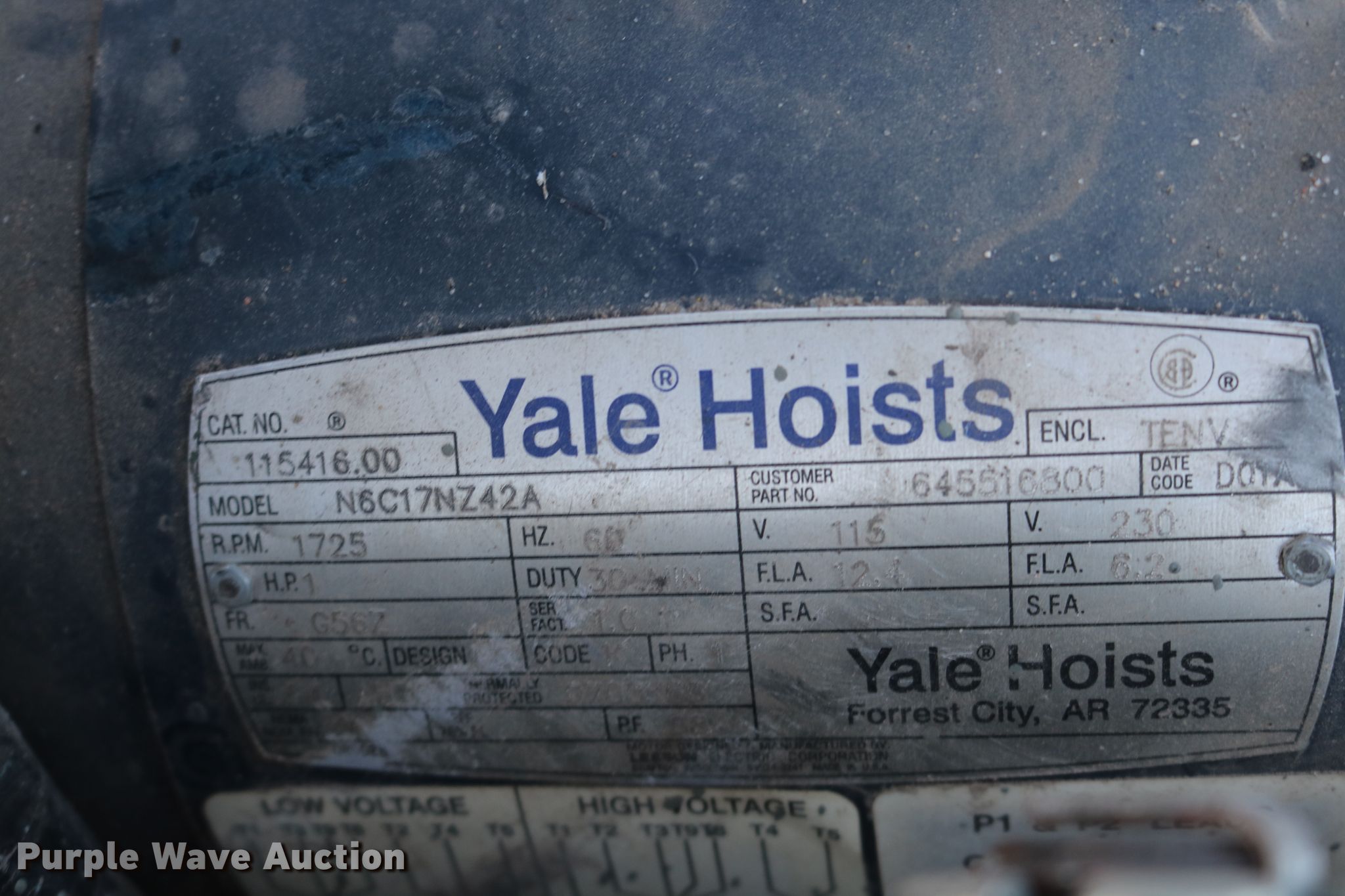(2) overhead cranes. 272"L x 12" I-beam, (2) Yale hoists One ton capacities, Remote, (6) rollers. Wildcat Construction. 8335 Vollmer Rd. Colorado Springs, CO 80908