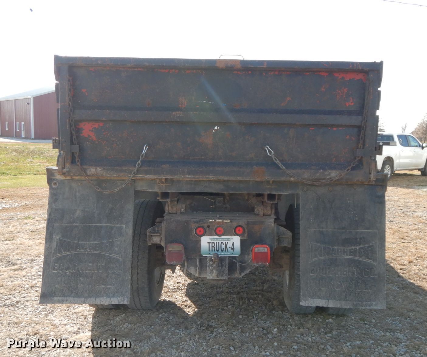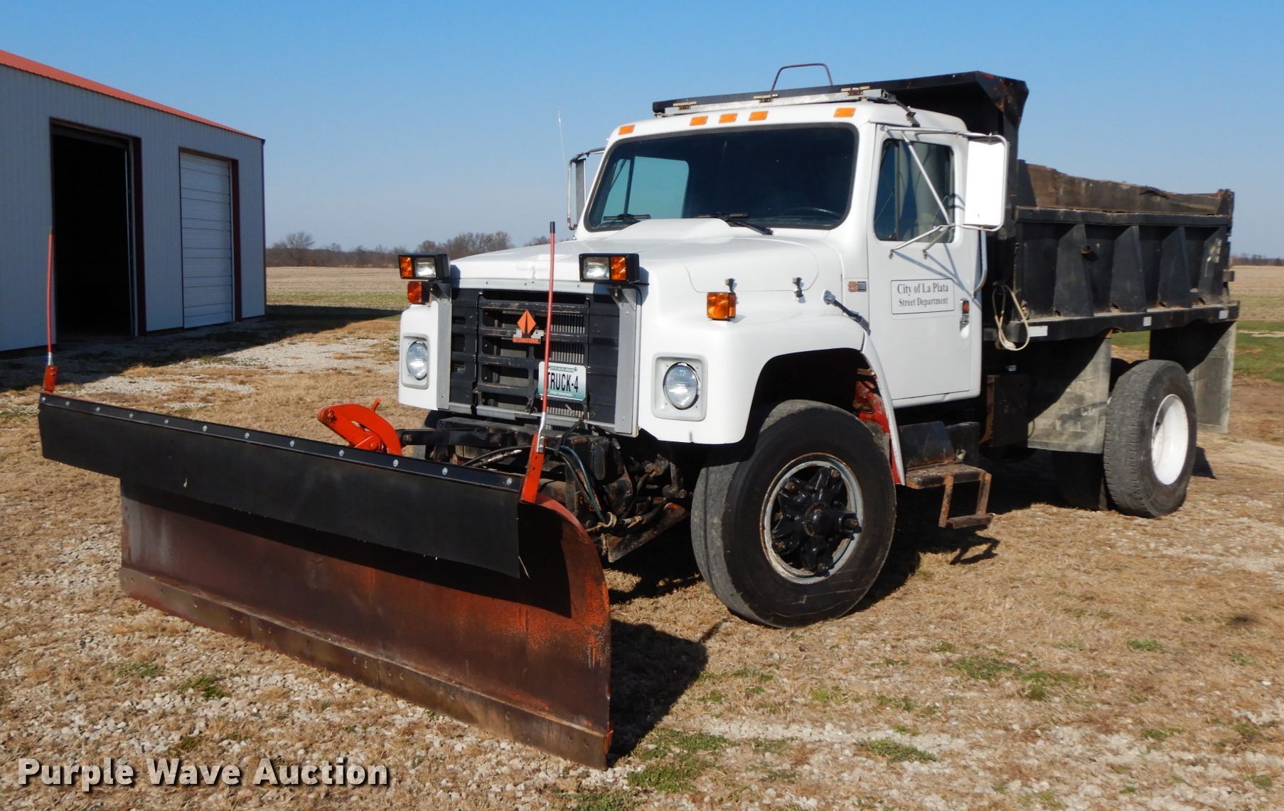 1989 International 1754 dump truck. 136,326 miles on odometer. Engine Cylinders: 6, Fuel type: Diesel. Transmission Spicer, Manual, Speed: 10. Chassis Axles: Single, Suspension: Spring, Brakes: Hydraulic, PTO, Wheelbase: 156". Interior Heat. Operational Dump bed 10' L x 96" W, Side height: 25", Side board height: 9", Bed type: Steel, Ram: Single , End gate: Manual, Plow Coates PRB4211, Width: 132". Tires Size: 11R22.5. Notes Possible starter issues, Possible front wheel bearing issues, Possible brake issues, Hydraulic leak. Missouri title. 1HTLCCFPXKH627466. 1395 N Owensby St. La Plata, MO 63549