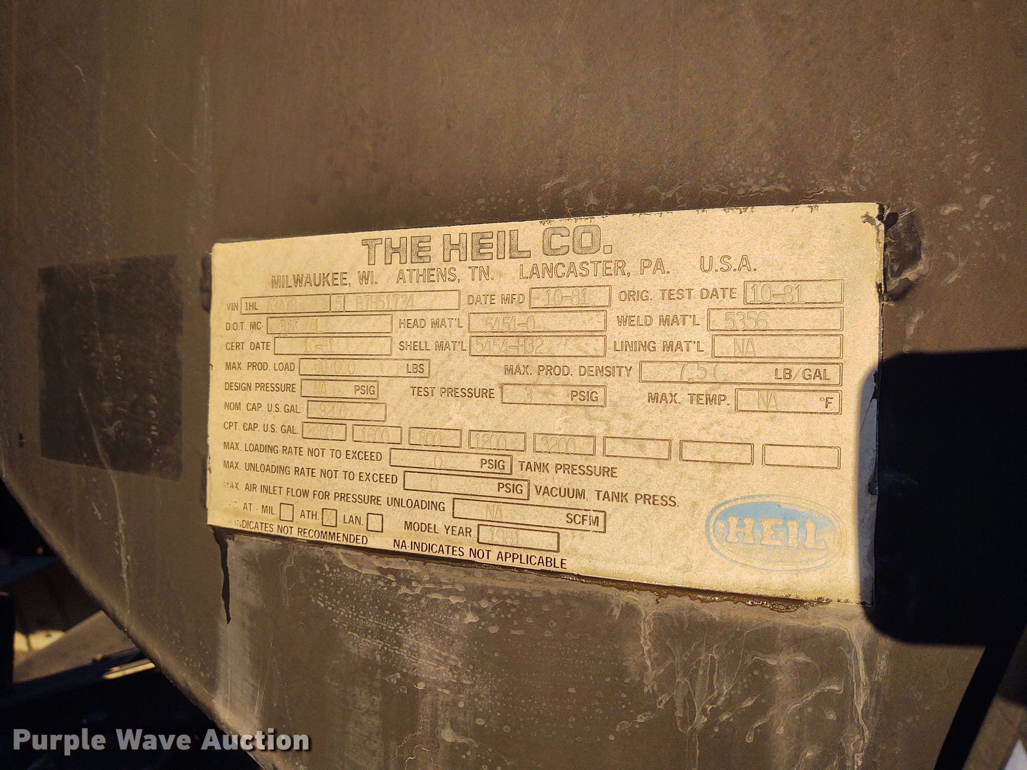 Purple Wave is selling a used Tank Trailer in Kansas. This item is a 1981 Heil tank trailer with the following: 40'6"L, 9,200 gallon capacity, Compartments: 5, Pump, Aluminum tank, Dual leg landing gear, Spring suspension, Air brakes, Tandem axle, 11R22.5 tires