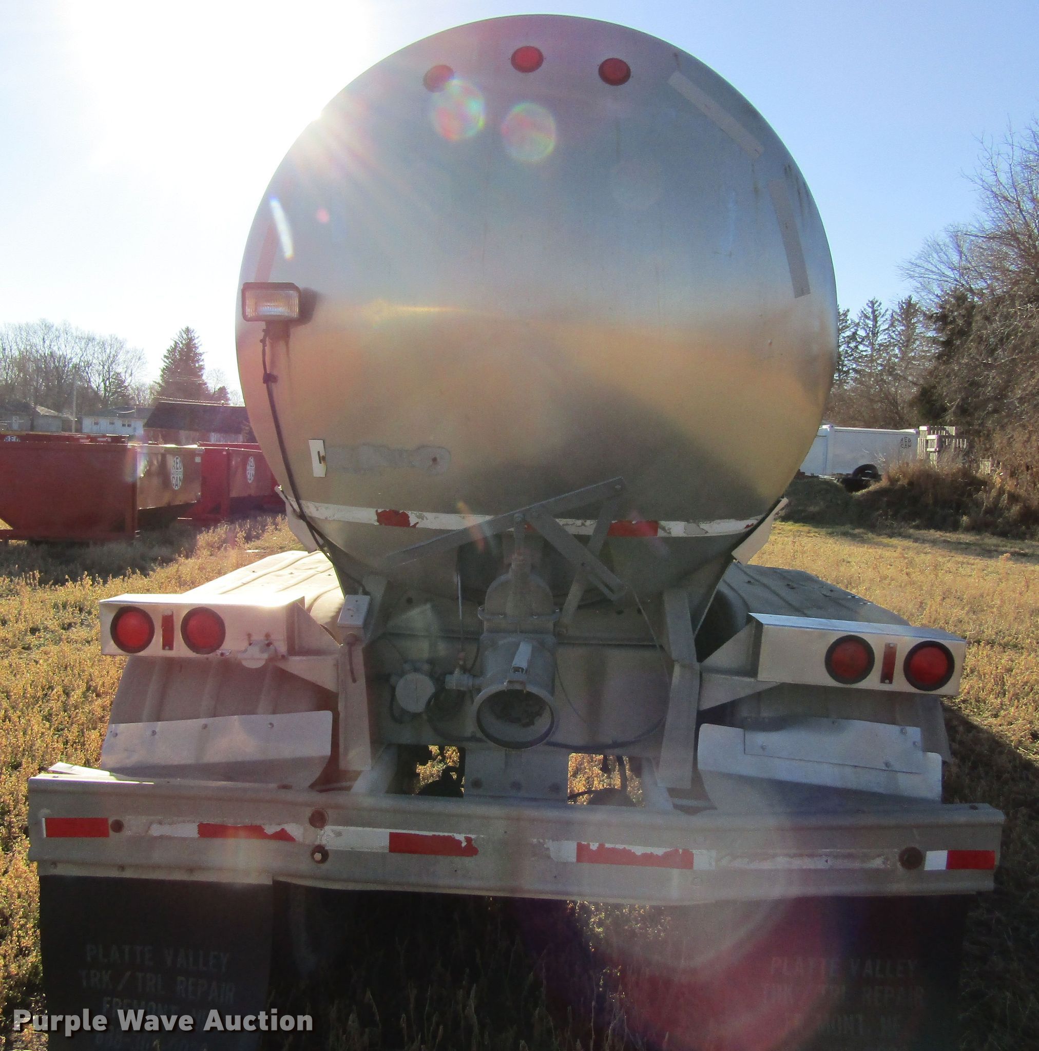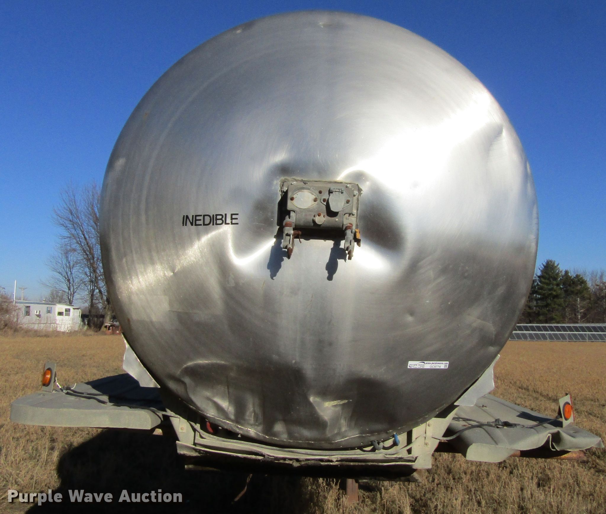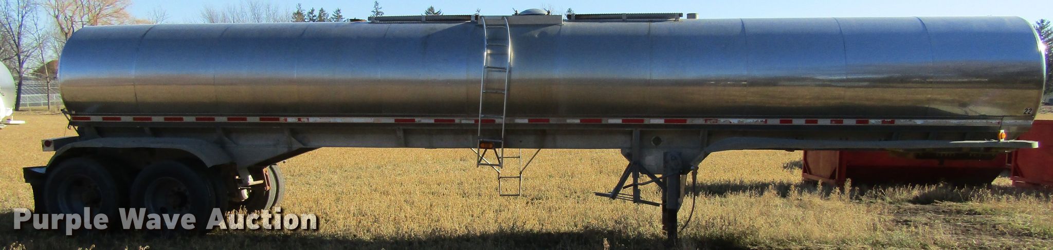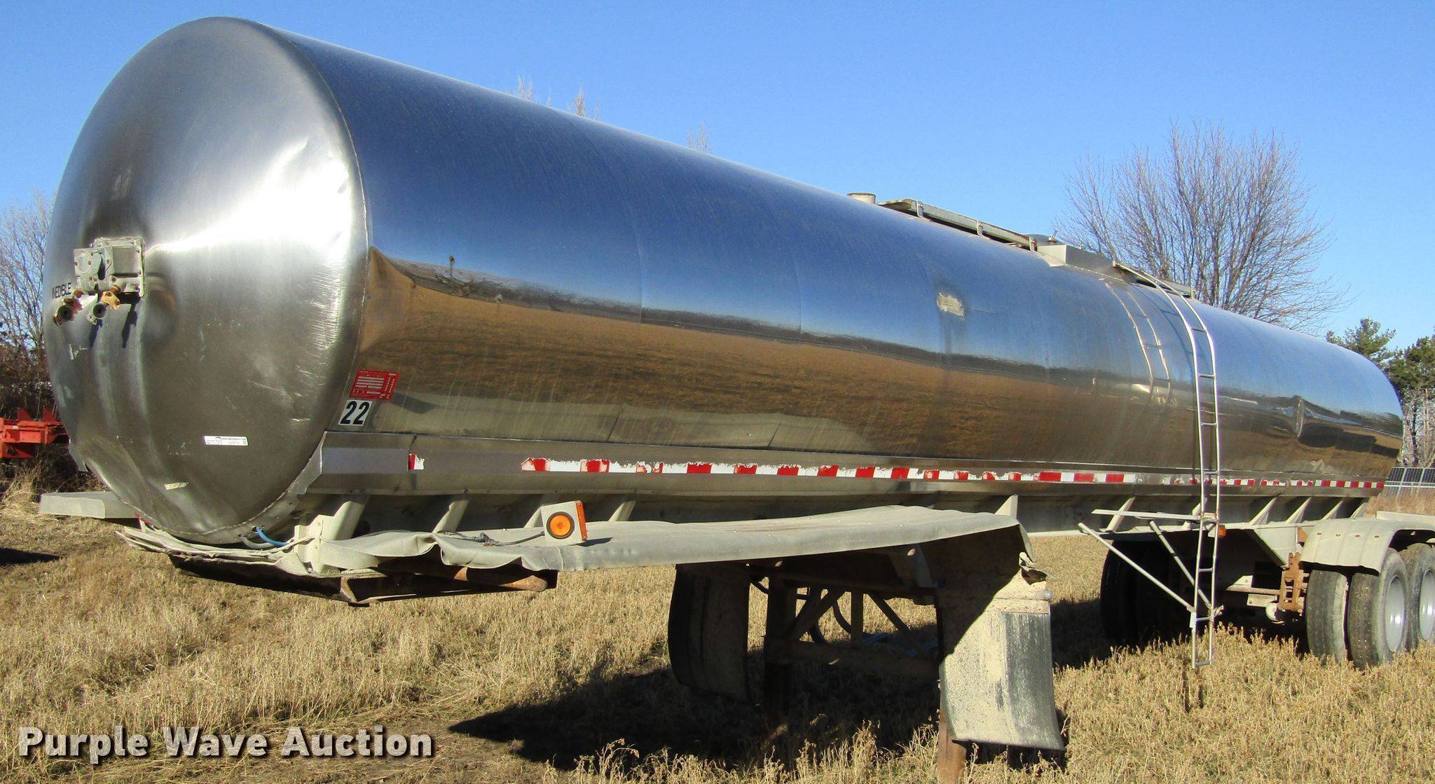 Purple Wave is selling a used Tank Trailer in Iowa. This item is a 1975 Walker tank trailer with the following: 44'L overall, 39'L x 96"W stainless steel tank, 6,200 gallon capacity, 7" diameter outlet valve, 1" diameter relief valve, Dual leg landing gear, Spring suspension, Air brakes, Tandem axle, Aluminum wheels, 11R24.5 tires, GVWR 53,300 lbs