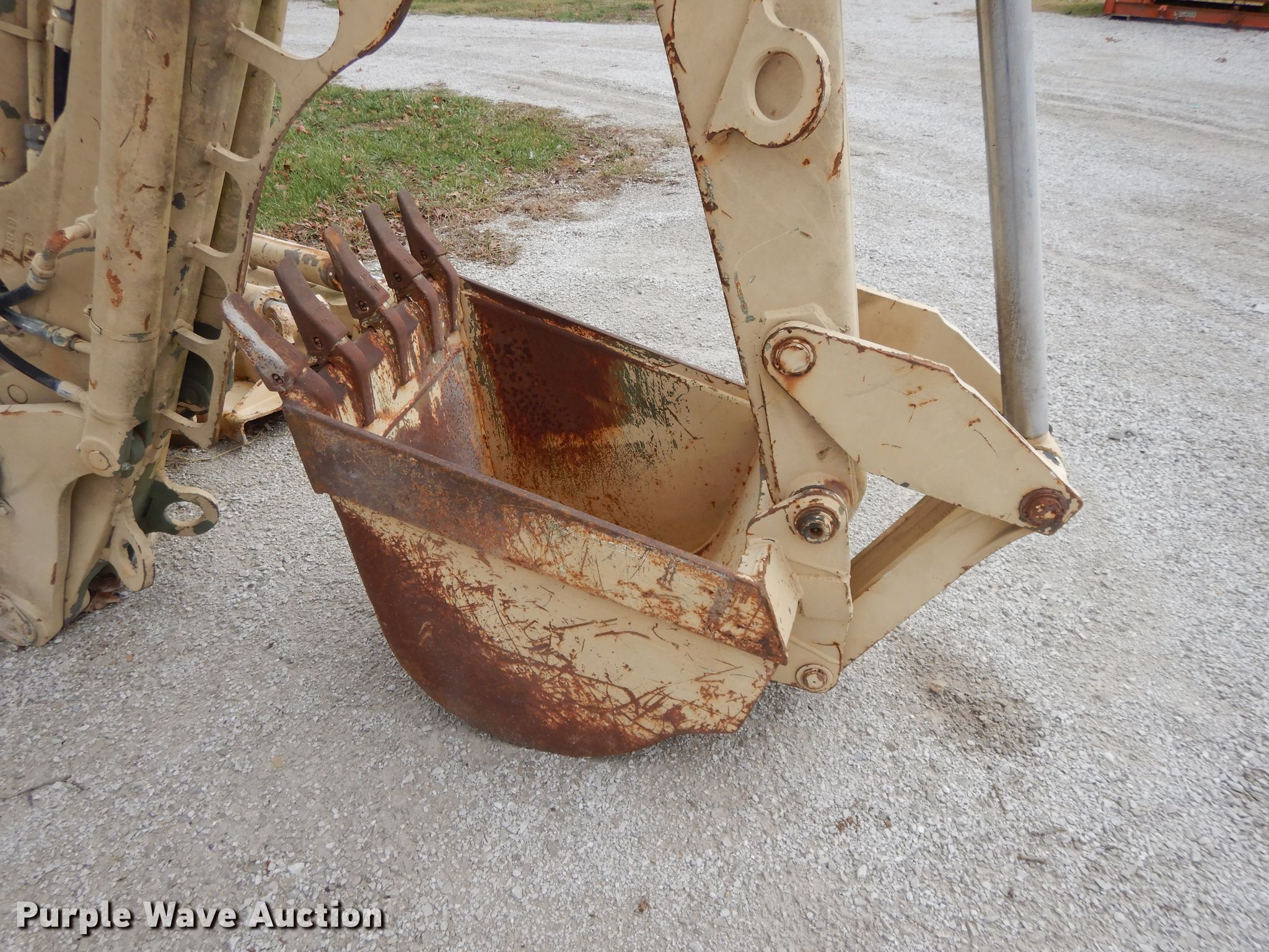 Purple Wave is selling a used Backhoe Attach. in Missouri. This item is a Case M350 backhoe stick with the following: 72" stick length, Three stick controls, Bucket, Width: 24", Cutting edge: Weld-on, Teeth: 5