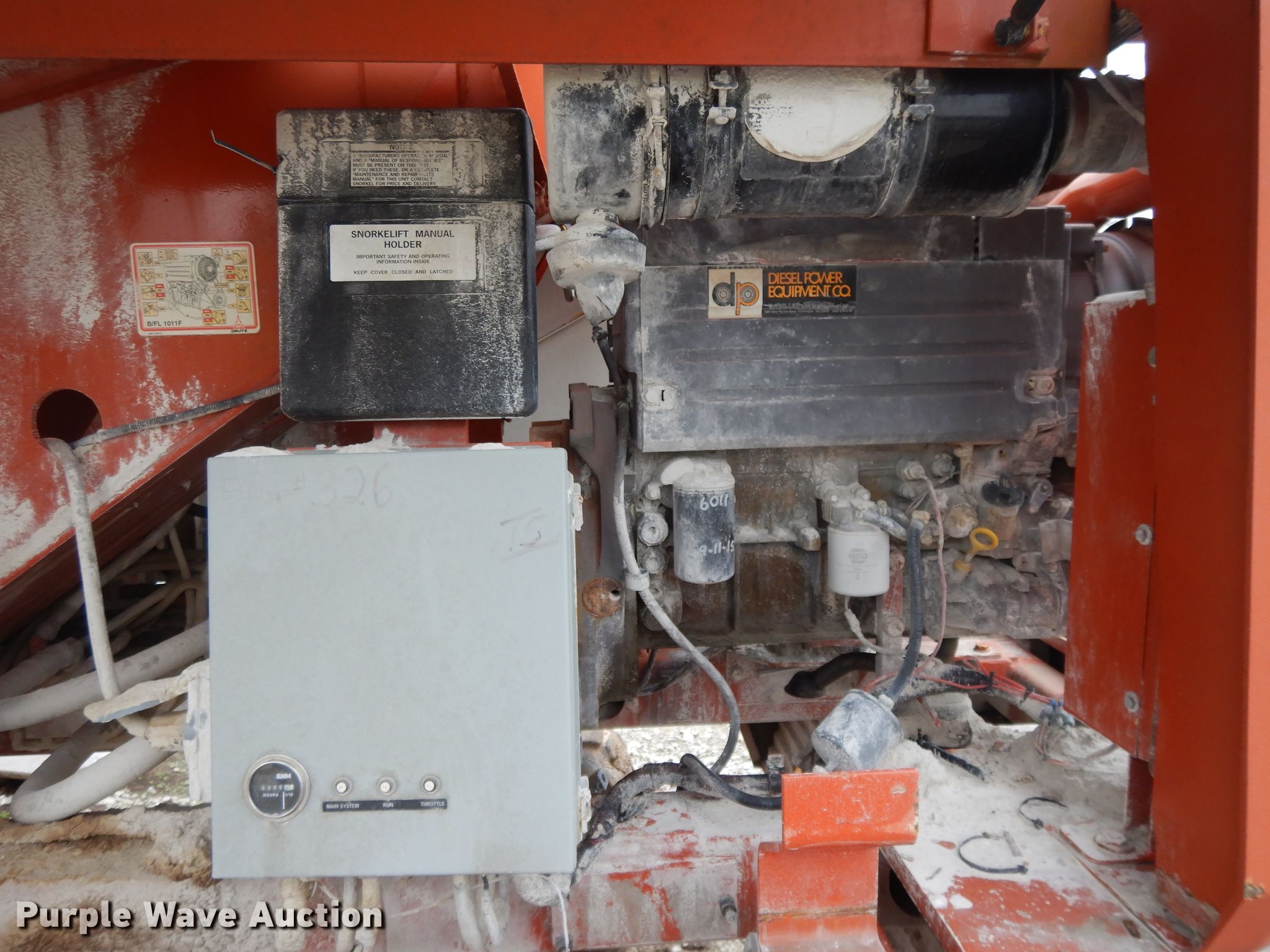 1998 Snorkelift TBA60RD7 boom lift. 6,295 hours on meter, Serial: 982615. Engine Duetz F4L1011F, Cylinders: 4, Fuel type: Diesel, HP: 56. Operational Rough terrain, Maximum reach length: 50', Maximum lift height: 60', Platform: 92" L x 30" W, AC power outlet, Controls: Platform, Platform rotation: Hydraulic. Tires Tire size: 15-19.5. Notes Non-operational unit. Lowe-North Construction. 13275 Thorn Rd. Jasper, MO 64755