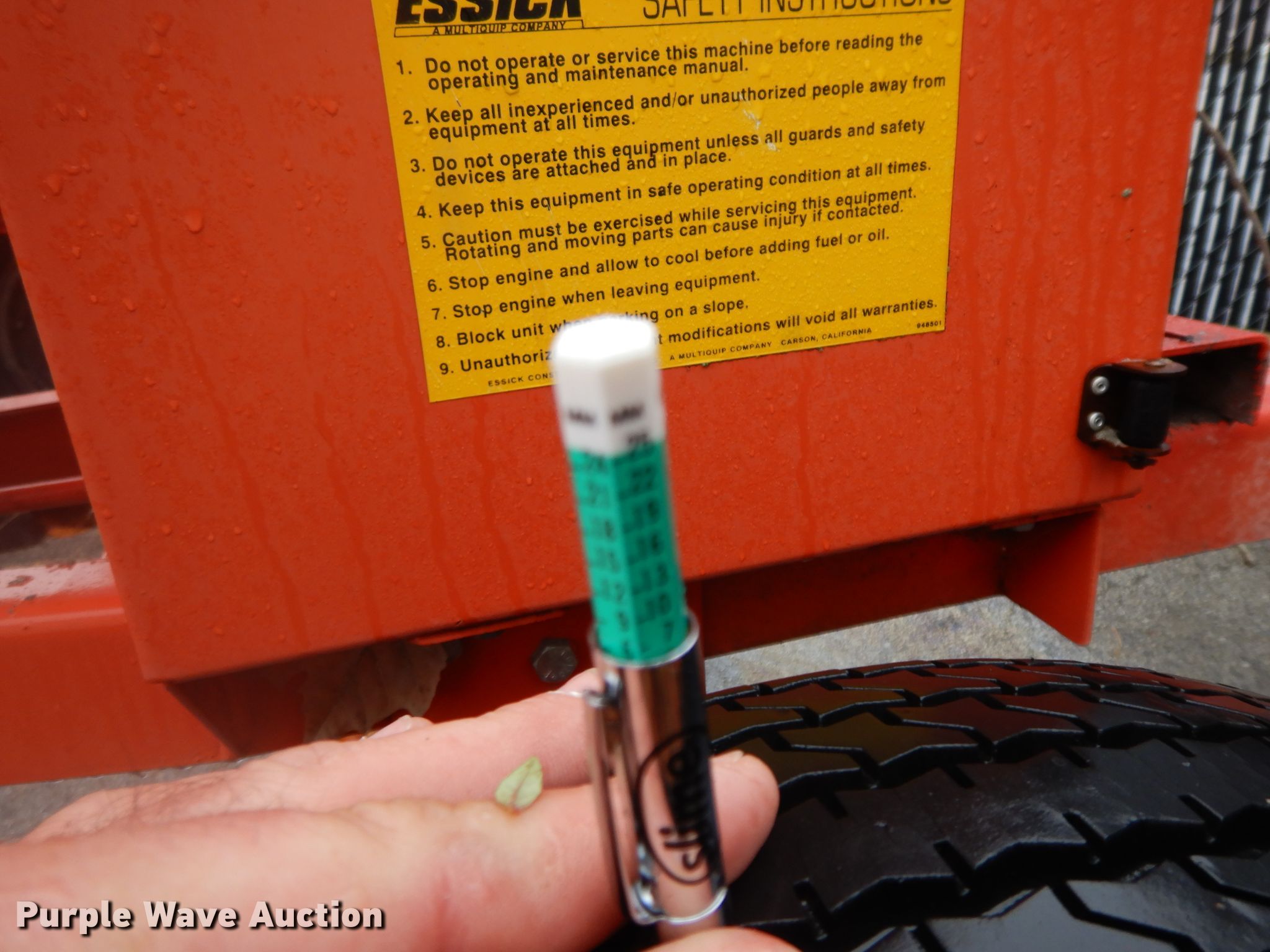 Purple Wave is selling a used Concrete Dispenser in Missouri. This item is a Essick EM-700 concrete mixer with the following: Honda GX240 gas engine, 8 HP, 8'Lx 4'W overall, 29"L x 16"W hopper, Single leg landing gear, 175/80D13 tires, Serial 20853843