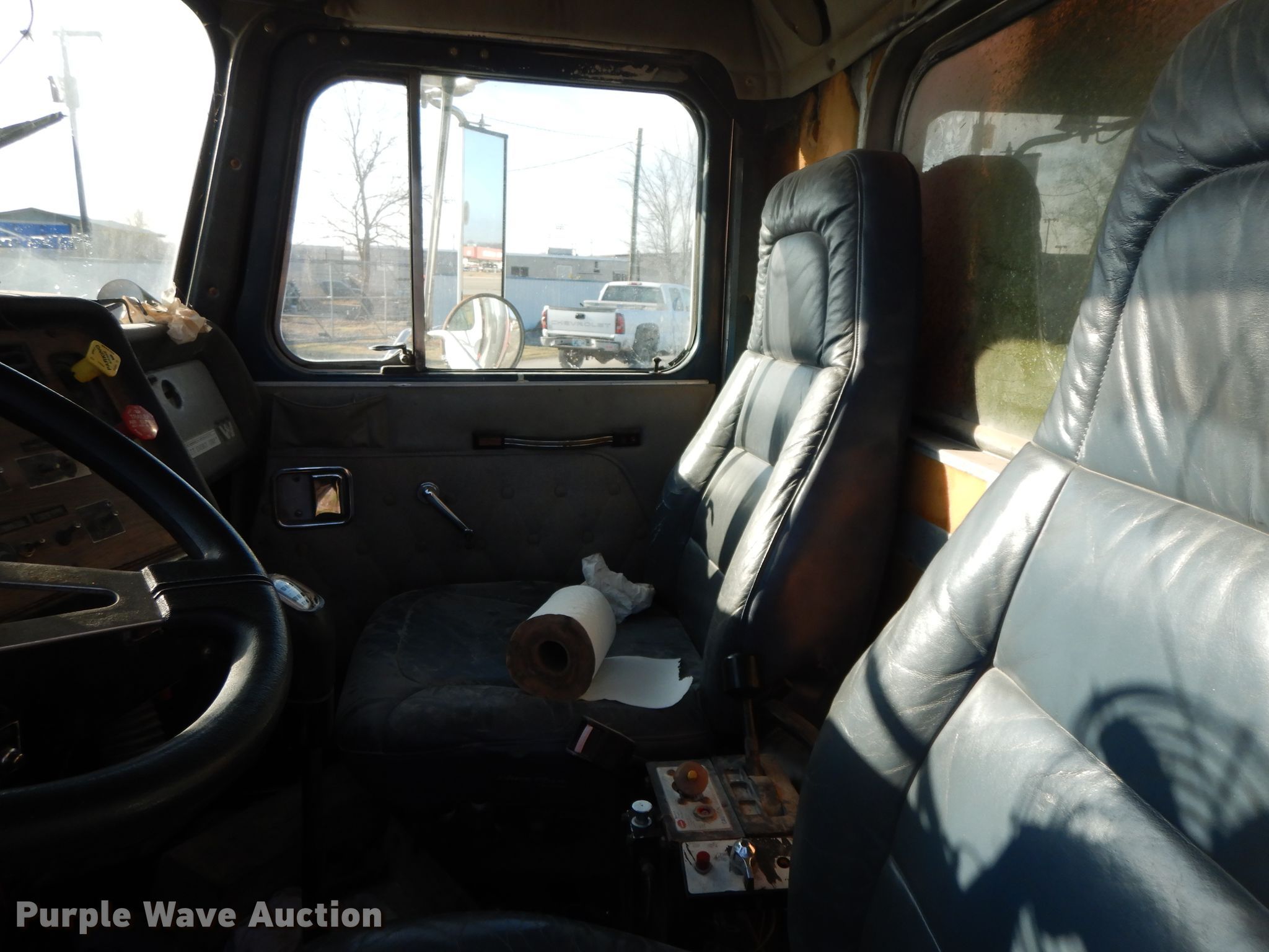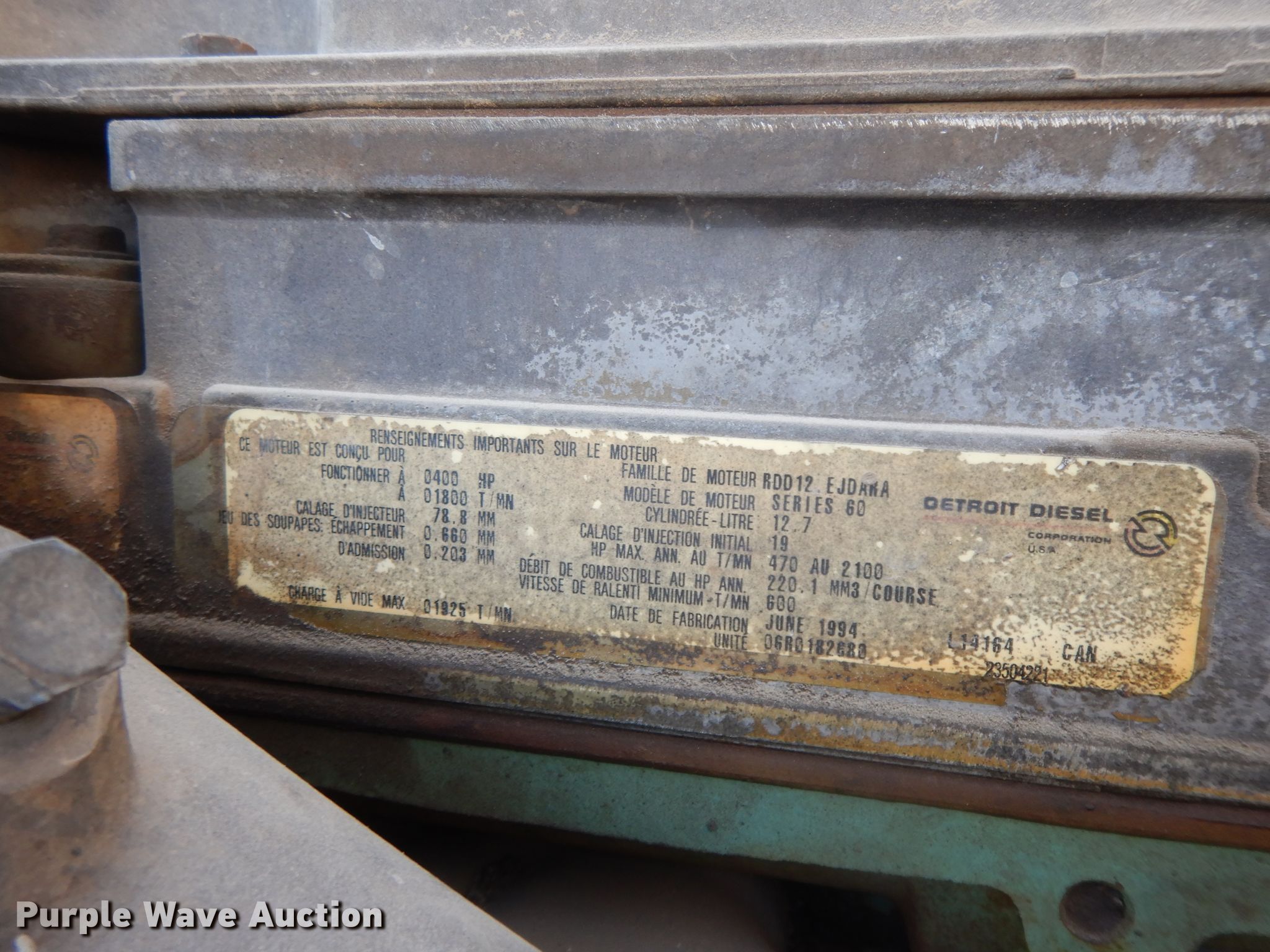 1995 Western Star 4900 dump truck. 549,856 miles on odometer. Engine Detroit Diesel Series 60, Displacement: 12.7L, Cylinders: 6, Fuel type: Diesel, HP: 400, Engine brake. Transmission Eaton Fuller, Manual, Speed: 10. Chassis Axles: Tandem, Suspension: Spring over walking beam, Brakes: Air, PTO, GVWR: 52,000 lbs FAWR: 12,000 lbs, IAWR: 20,000 lbs, RAWR: 20,000 lbs, Wheelbase: 214". Interior AC, Heat, Cruise control. Operational Dump bed 14' L x 96" W, Side height: 39", Bed type: Steel, Roll tarp, Ram: Single , End gate: Manual. Tires Size: 11R24.5. Oklahoma title. 2WKPDCXH9SK936413. IMI Worldwide. 200 N Mill St. Pryor, OK 74361