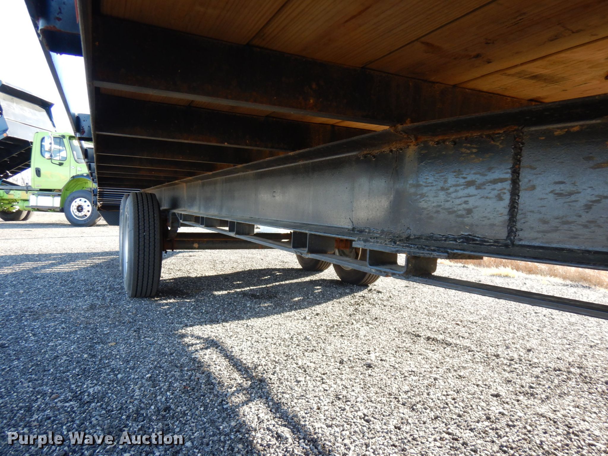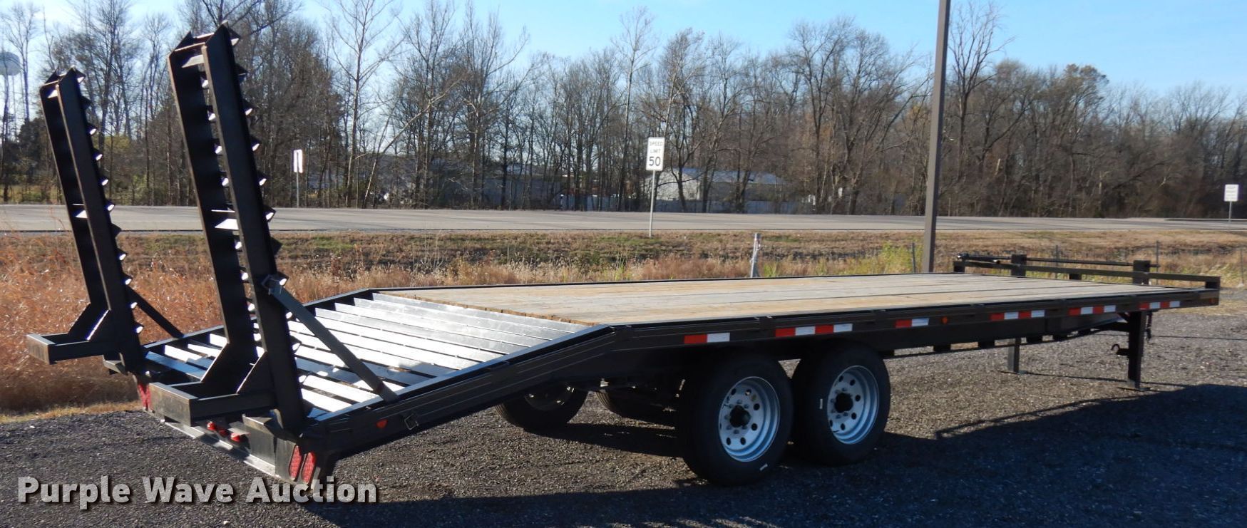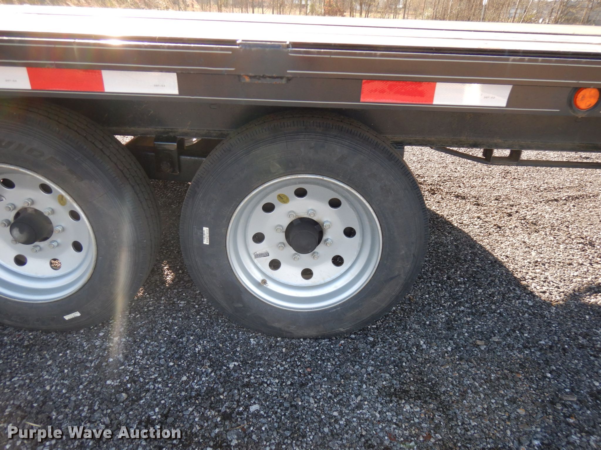 Purple Wave is selling a used Equip. Trailer in Indiana. This item is a 2020 Bluegrass equipment trailer with the following: 30'L overall, 20'L x 101.5"W wood deck, 5'L ramps, Dual leg landing gear, Spring suspension, Electric brakes, Tandem axle, Aluminum wheels, 215/75R17.5 tires, GVWR 14,000 lbs