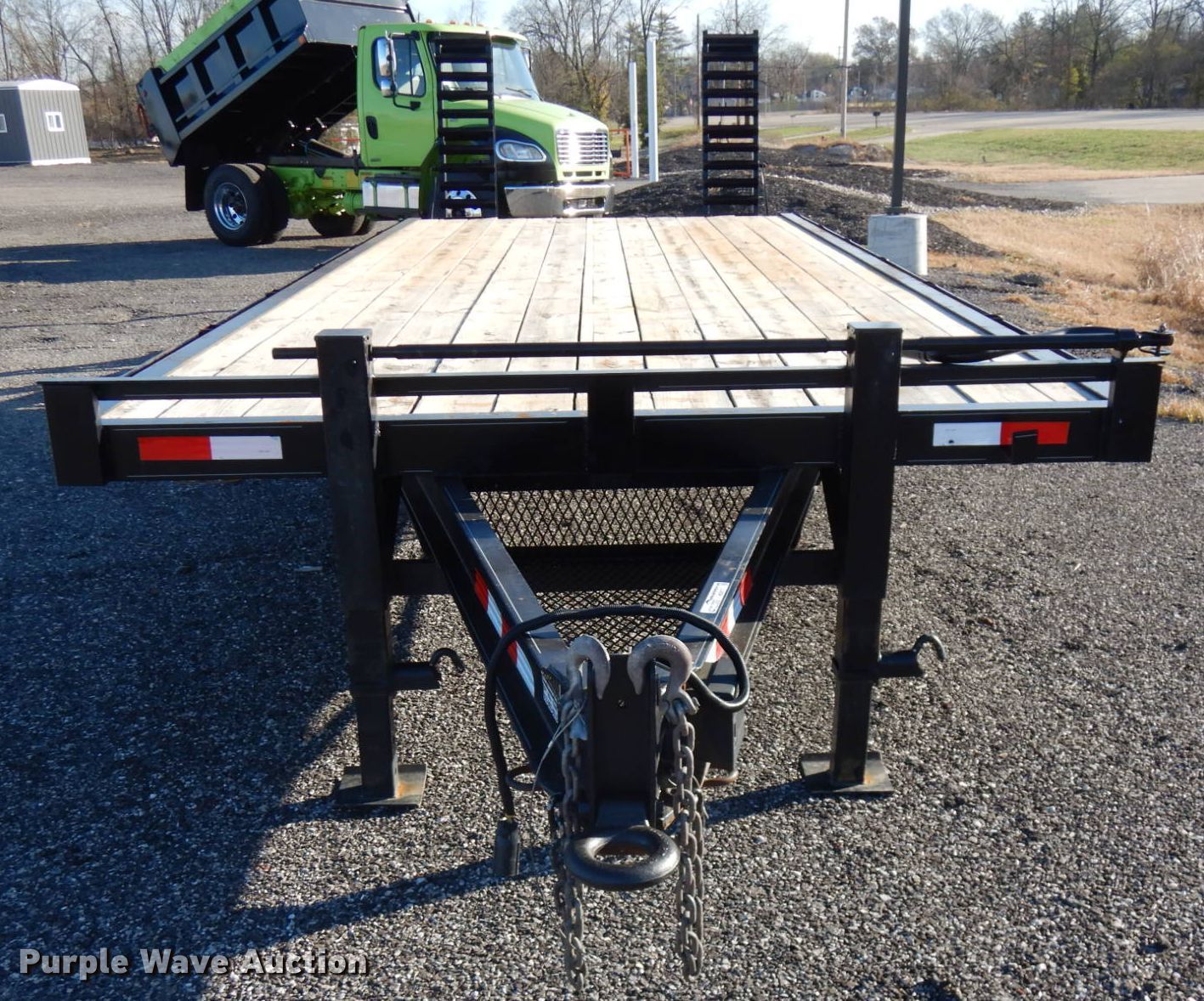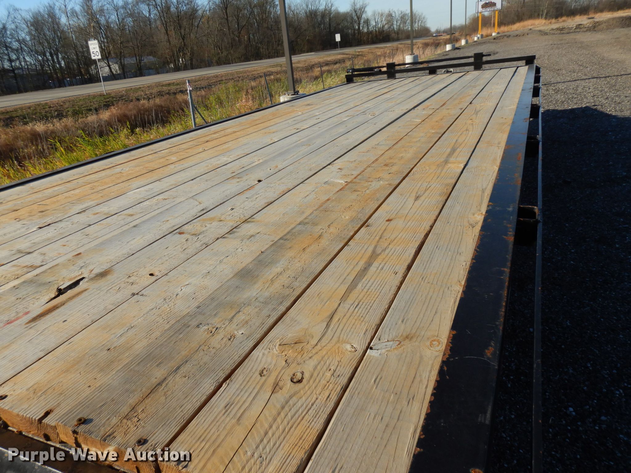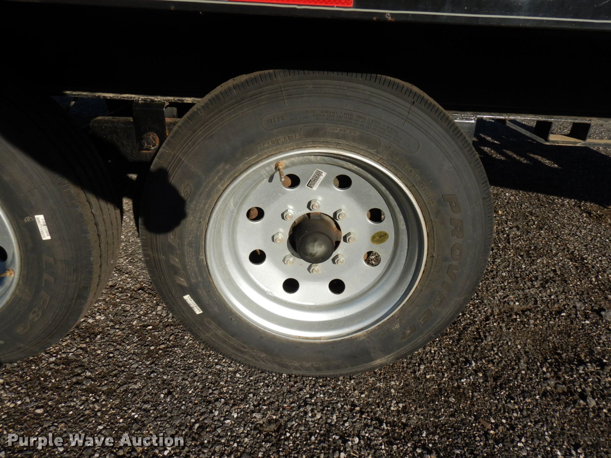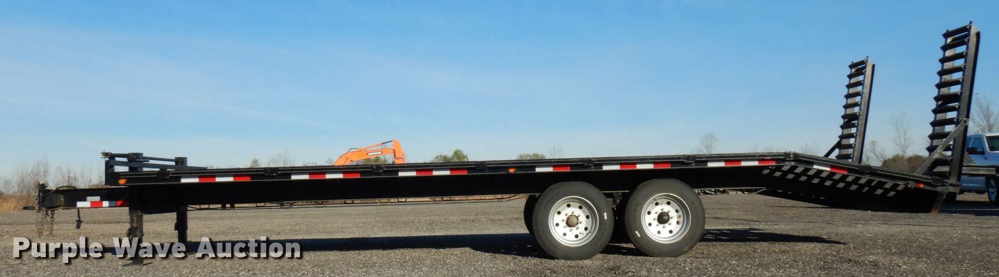 Purple Wave is selling a used Equip. Trailer in Indiana. This item is a 2020 Bluegrass equipment trailer with the following: 30'L overall, 20'L x 101.5"W wood deck, 5'L ramps, Dual leg landing gear, Spring suspension, Electric brakes, Tandem axle, Aluminum wheels, 215/75R17.5 tires, GVWR 14,000 lbs