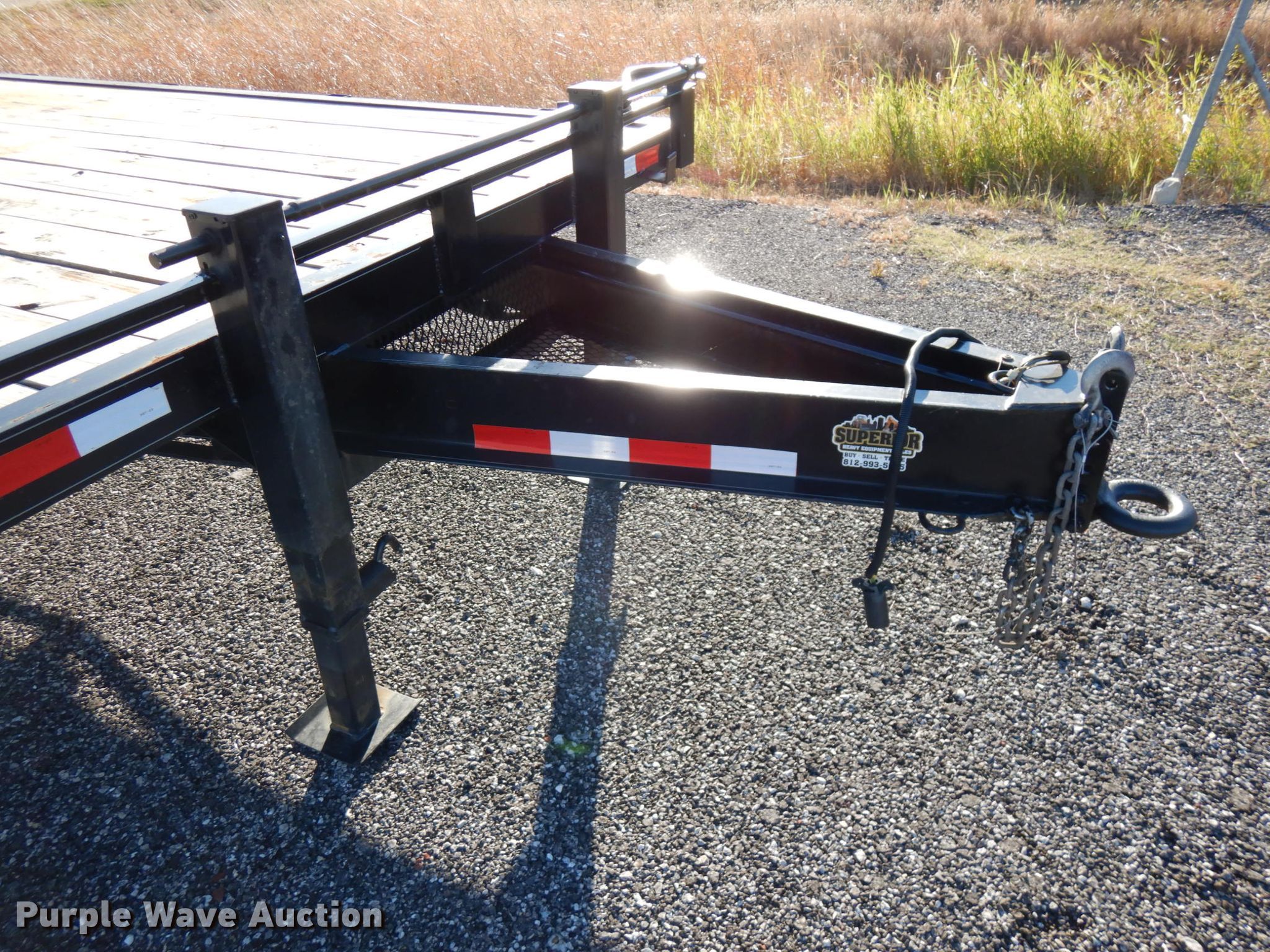 2020 Bluegrass equipment trailer. 30'L overall, 20'L x 101.5"W wood deck, 5'L ramps, Dual leg landing gear, Spring suspension, Electric brakes, Tandem axle, Aluminum wheels, 215/75R17.5 tires, GVWR 14,000 lbs. Indiana title. 57T1F2520LL009950. Superior Heavy Equipment Sales. 827 W Lincoln Ave. Chandler, IN 47610