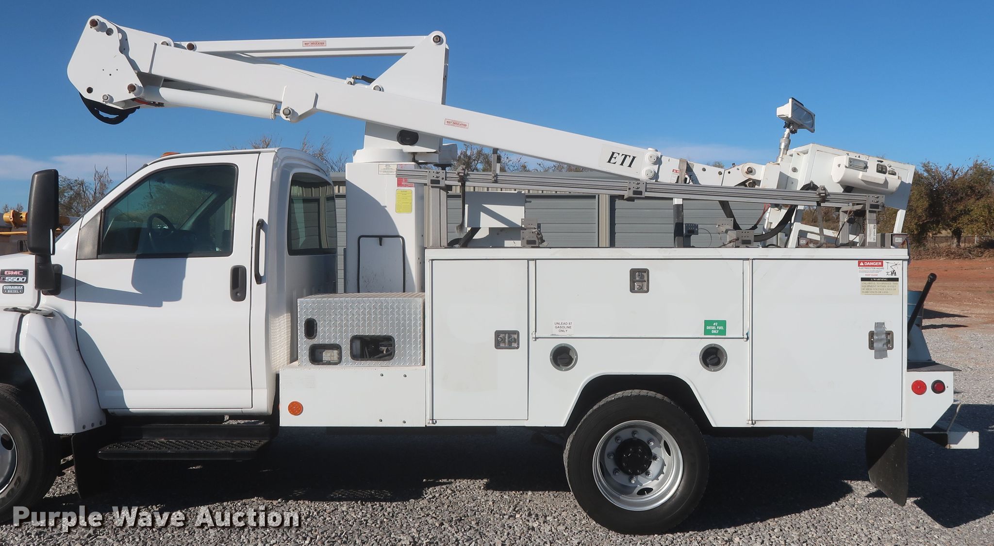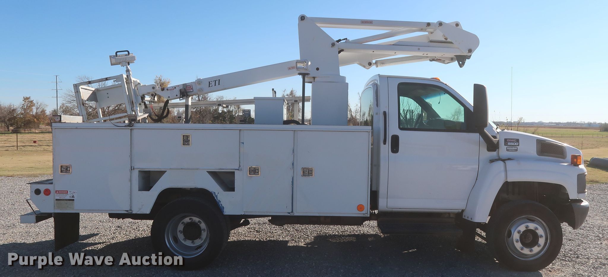 Purple Wave is selling a used Bucket Truck in Oklahoma. This item is a 2009 GMC C5500 bucket truck with the following: 128,854 miles on odometer, PTO hours: 2,832