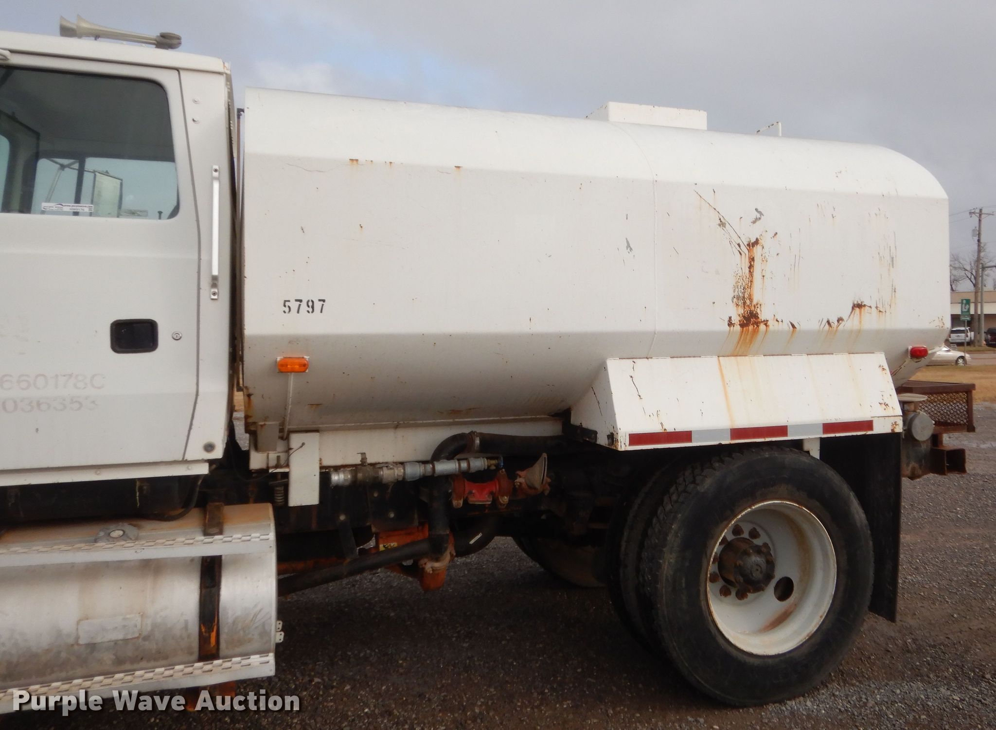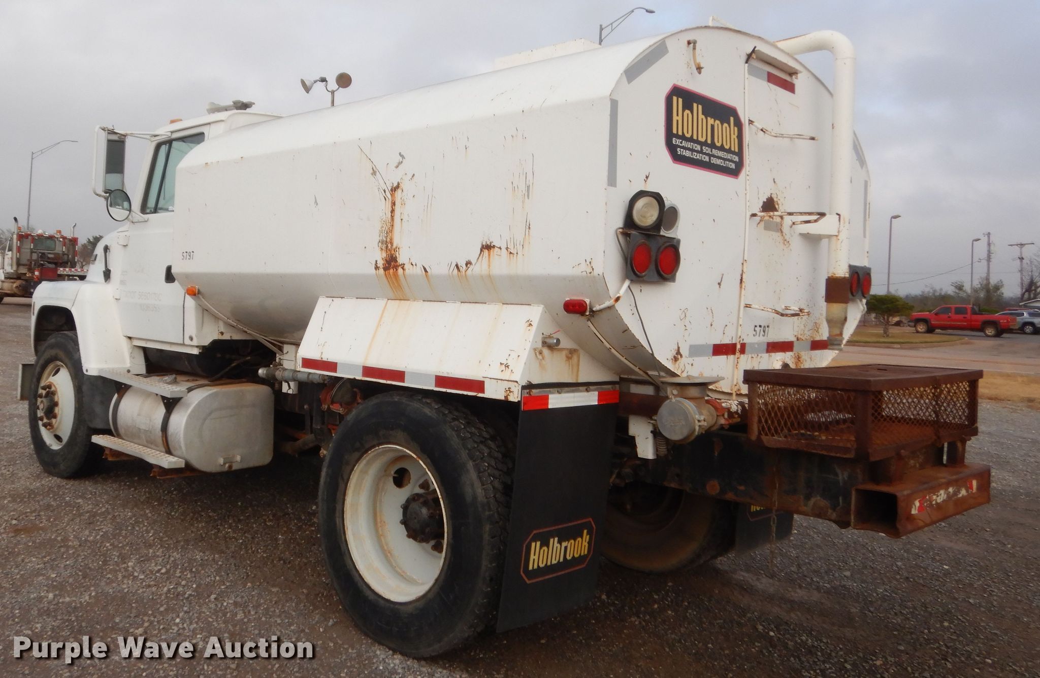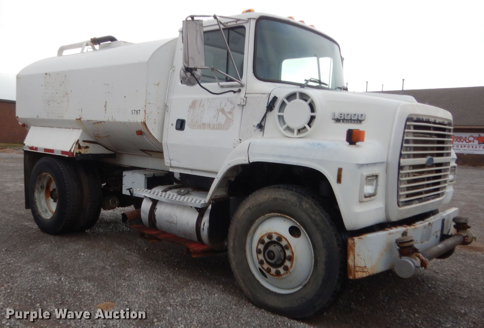 Purple Wave is selling a used Tank Truck or Water Truck in Oklahoma. This item is a 1995 Ford L8000 tank truck with the following: 329,354 miles on odometer