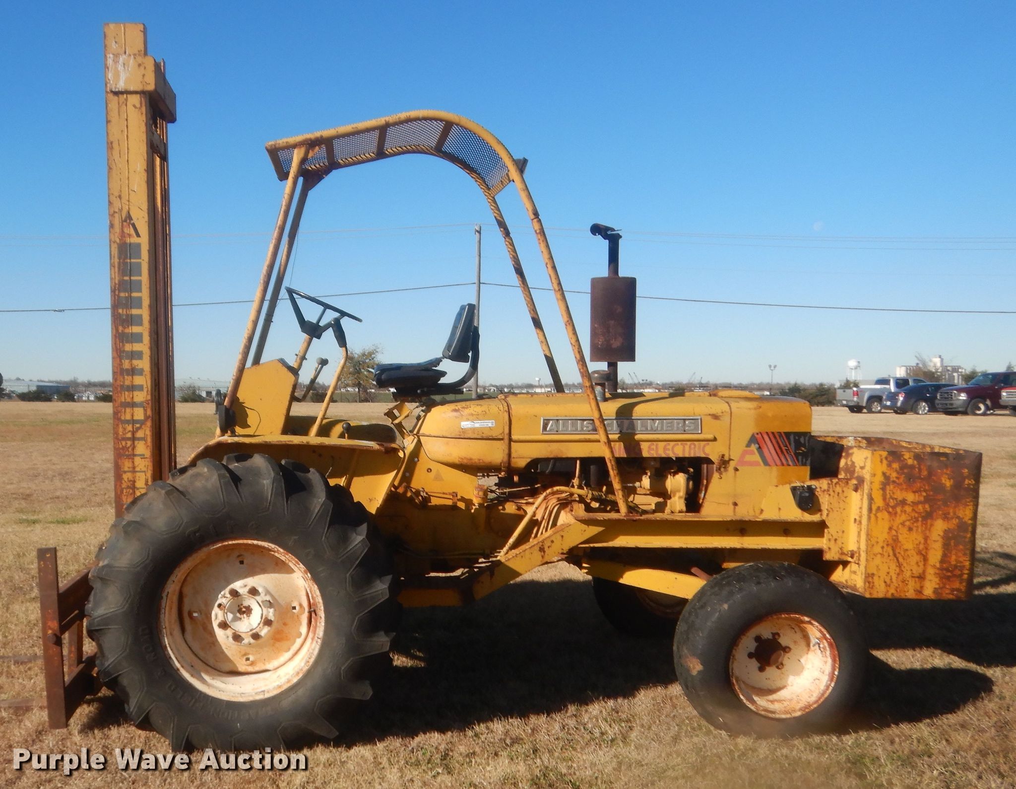 Purple Wave is selling a used Strt. Mast Rough Terr. Forklift in Oklahoma. This item is a Allis Chalmers forklift with the following: 3,274 hours on meter