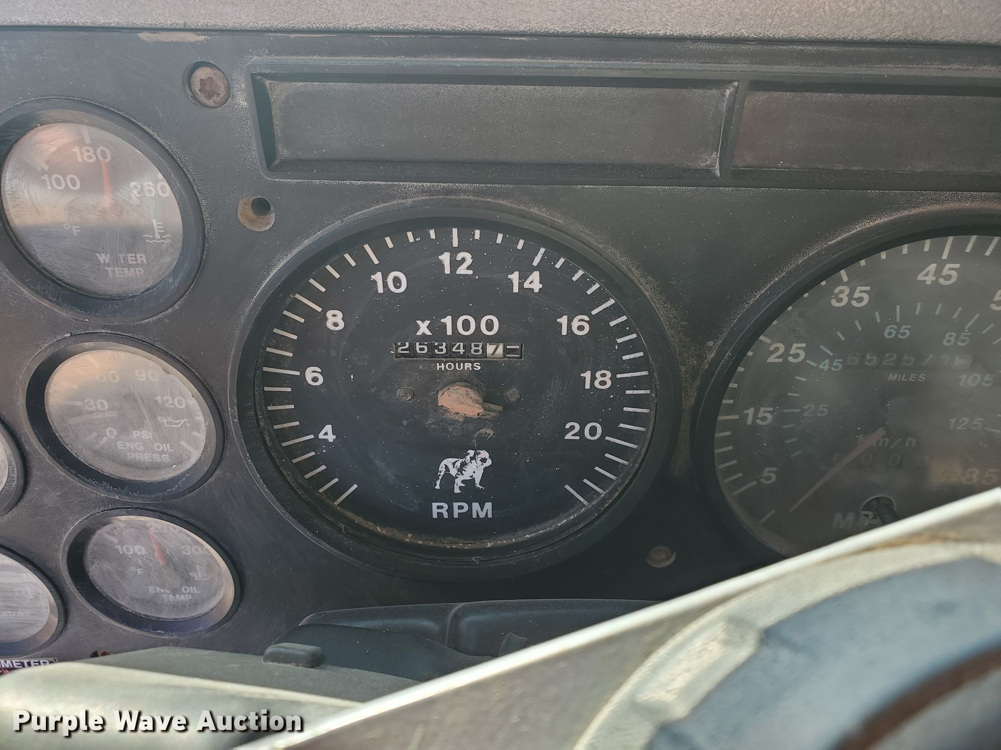 1999 Mack CH613 vacuum truck. 652,571 miles on odometer, Engine hours: 26,348. Engine Mack, Displacement: 12.0L, Cylinders: 6, Fuel type: Diesel, HP: 460. Transmission Eaton Fuller, Manual, Speed: 10. Chassis Axles: Tandem, Suspension: Air, Brakes: Air, PTO. Interior AC, Heat, Heated mirrors, Auxiliary controls. Operational Bed/ tank CMI, Capacity: 80 barrels, Baffle, Top hatches: 2, Rear manway, Vacuum pump Jurop. Tires Size: 11R24.5, Pusher axle: 255/70R22.5. Kansas title. Title distribution may be delayed up to 30 days from verification of funds. 1M1AA18Y8XW109332. Teeter Oilfield Service, LLC. 2525 Co. Rd. 30. Grinnell, KS 67738