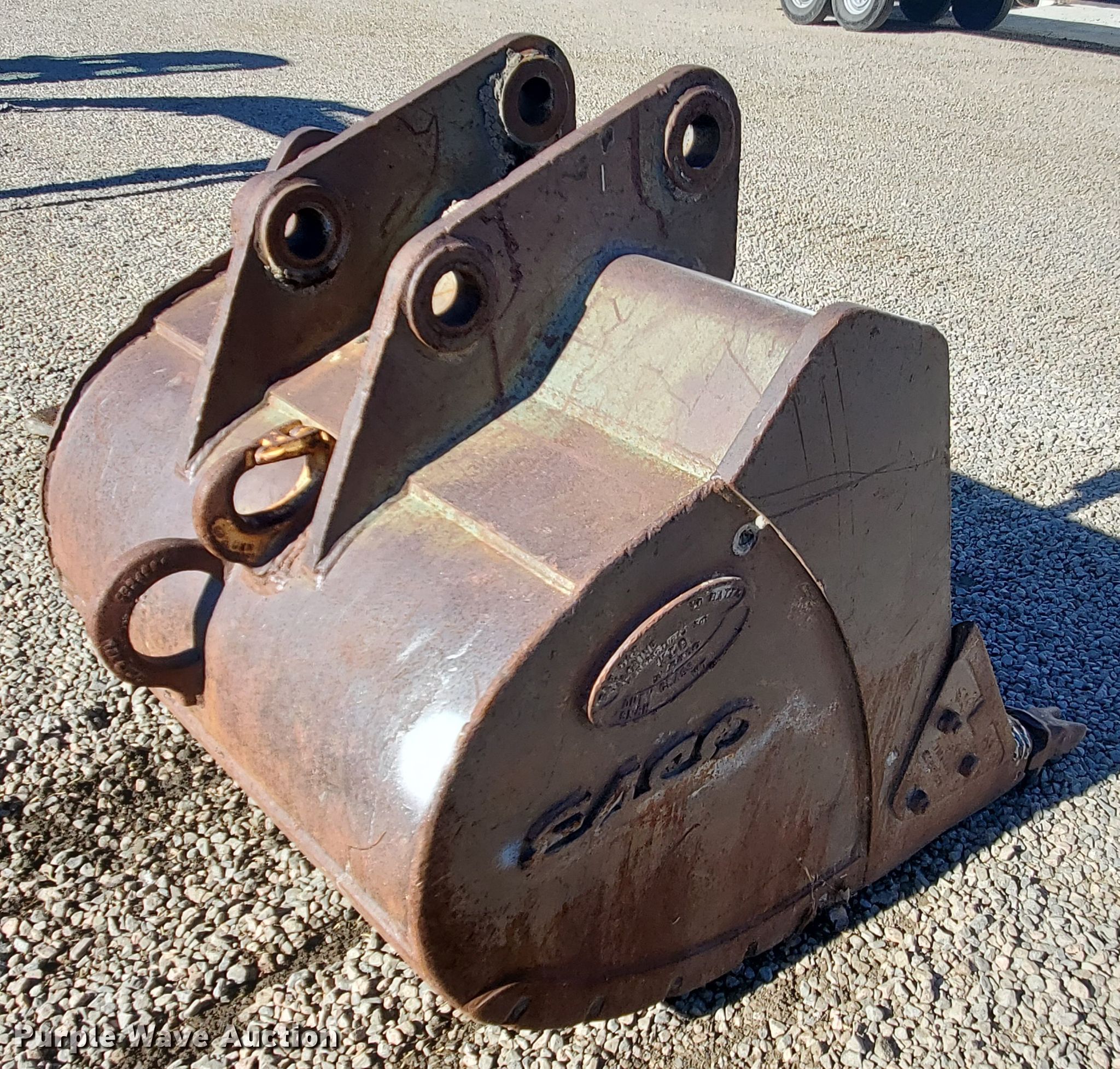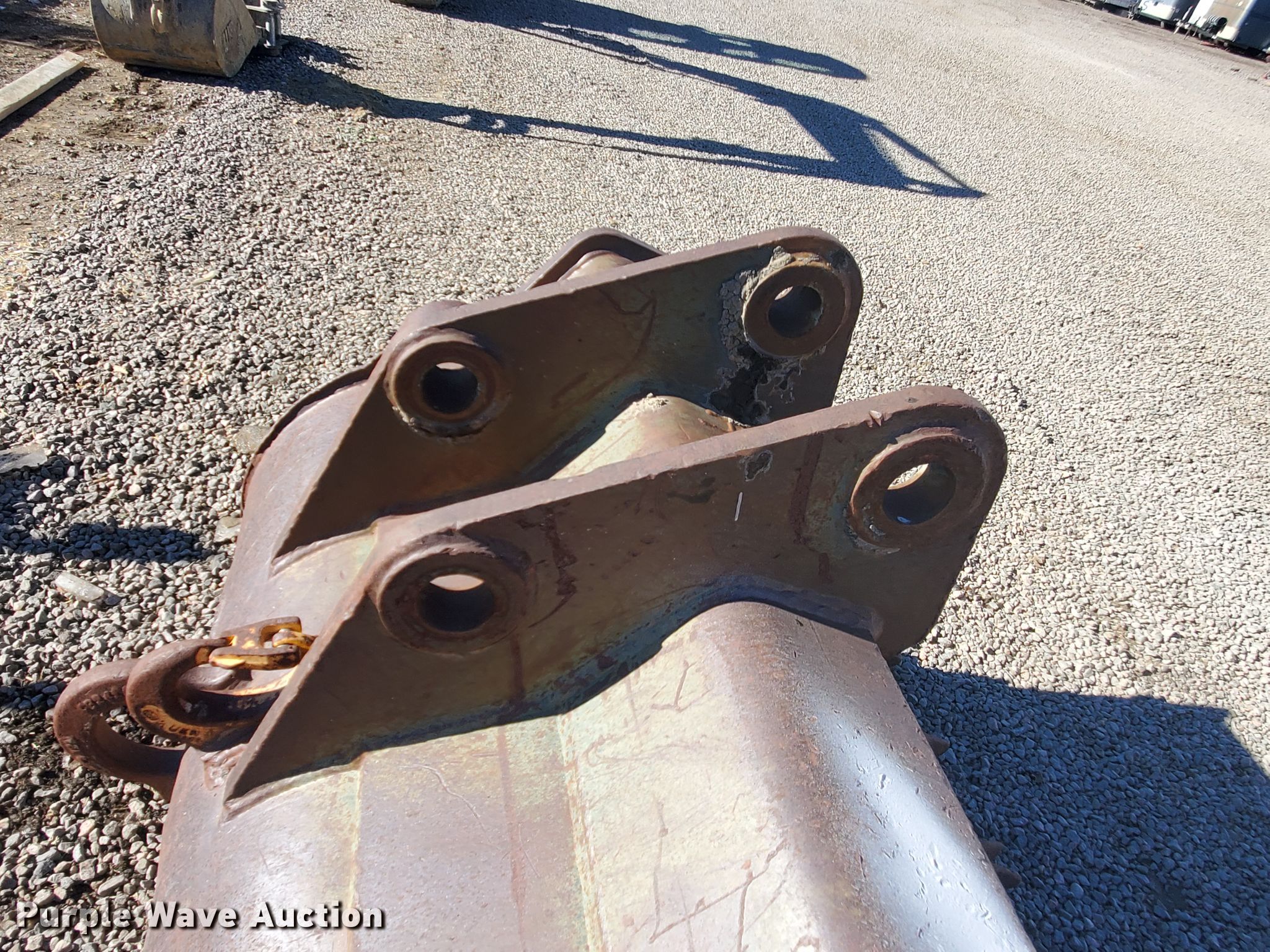 Purple Wave is selling a used Excavator Attach. in Colorado. This item is a Esco 44"W excavator bucket with the following: Cutting edge: Weld-on, Teeth: 5, 15" pin to pin, Approx. 2 1/4" diameter pin holes