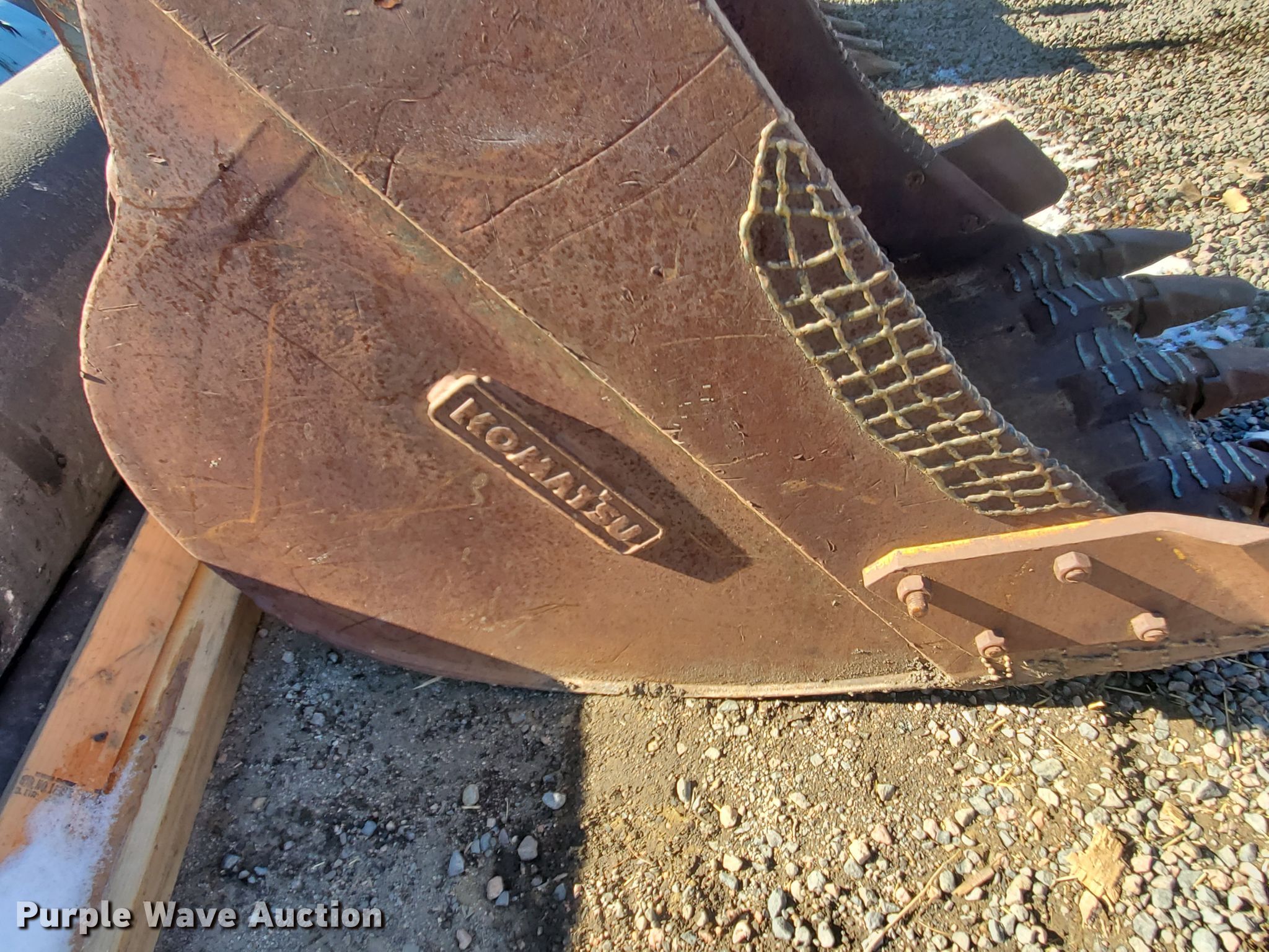 Purple Wave is selling a used Excavator Attach. in Colorado. This item is a Komatsu 40"W excavator bucket with the following: Cutting edge: Weld-on, Teeth: 5, 18" pin to pin, 3 1/4" jpin diameter