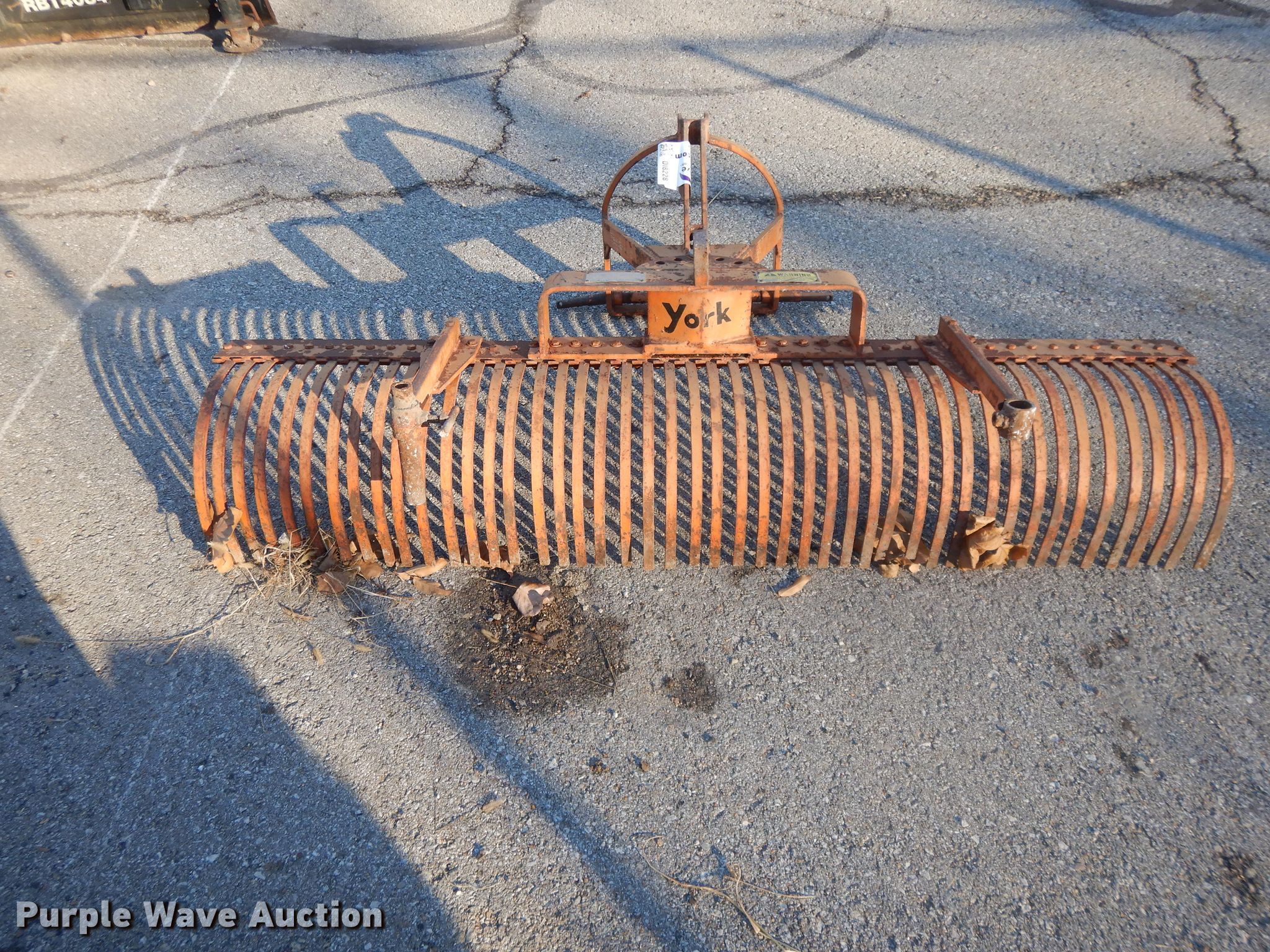 Purple Wave is selling a used Ag Equip. Other in Kansas. This item is a York RS landscape rake with the following: 72"W, Three point hitch, Serial 6768
