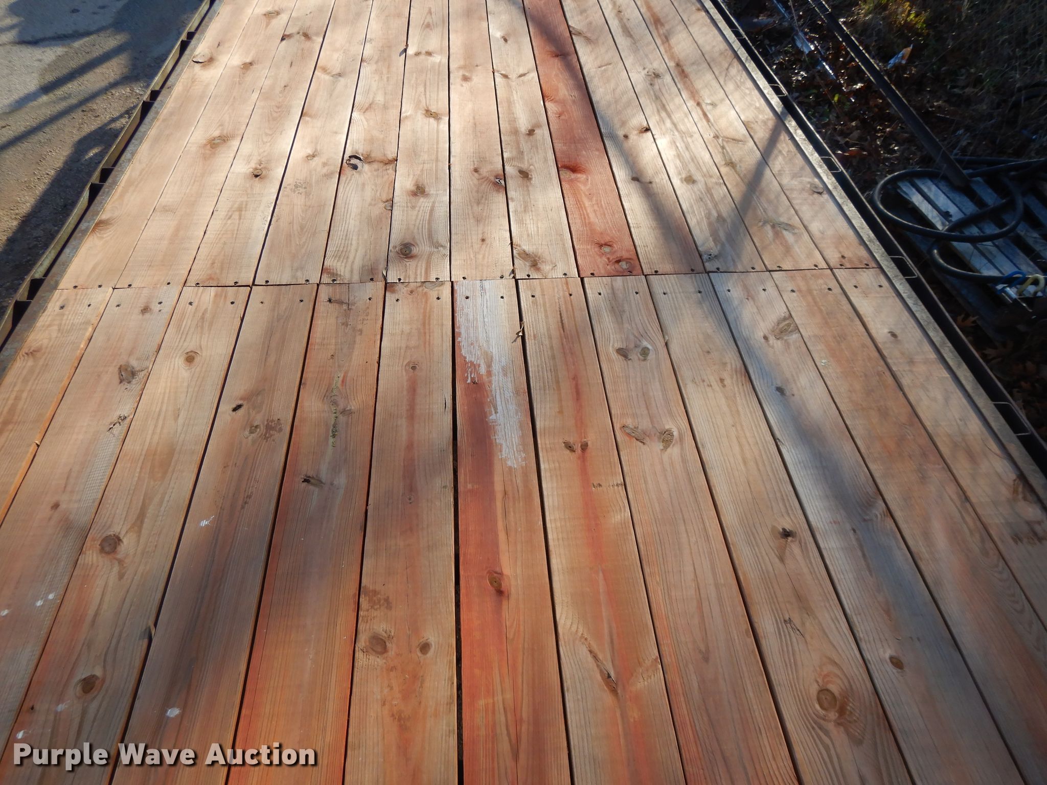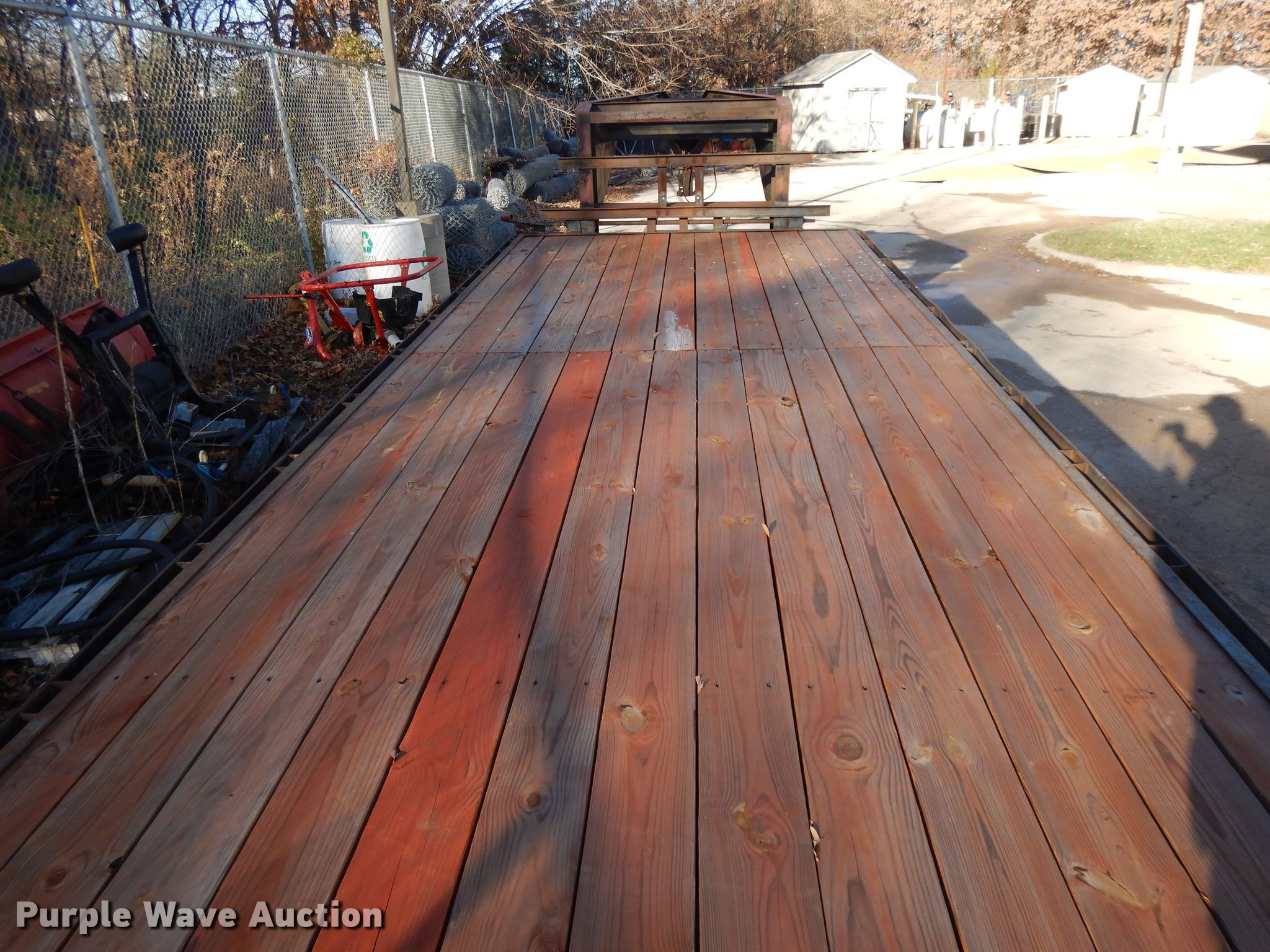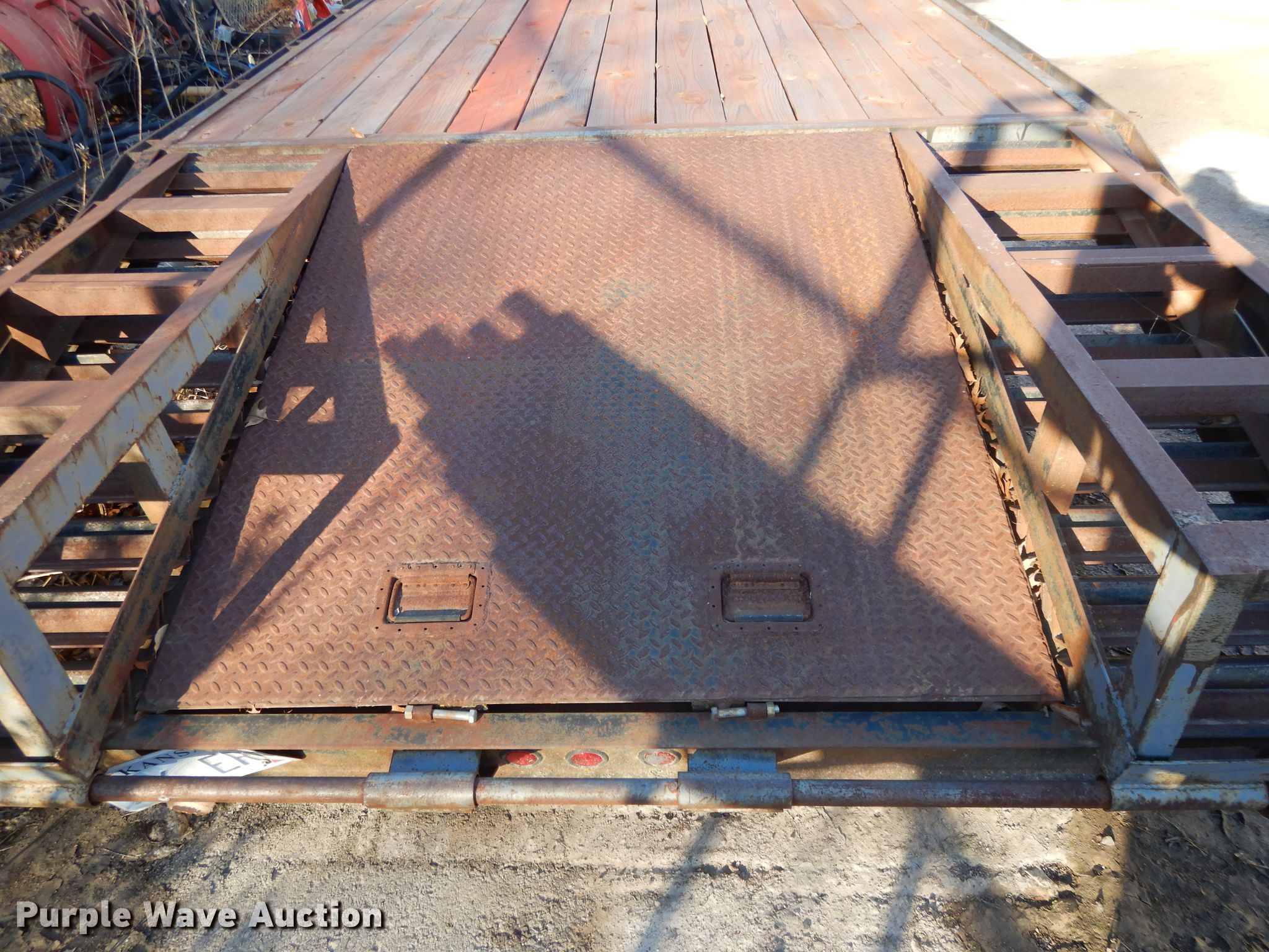 Purple Wave is selling a used Flat or Drop Deck Trailer in Kansas. This item is a 2000 Buck Dandy equipment trailer with the following: 32'L x 101"W overall, 20'L x 97"W deck, 5' tail length, 5'L ramps, Wood deck, Dual leg landing gear, Spring suspension, Electric brakes, Tandem axle, Steel wheels, 235/85R16 tires, GVWR 14,000 lbs, GAWR 7,000 lbs