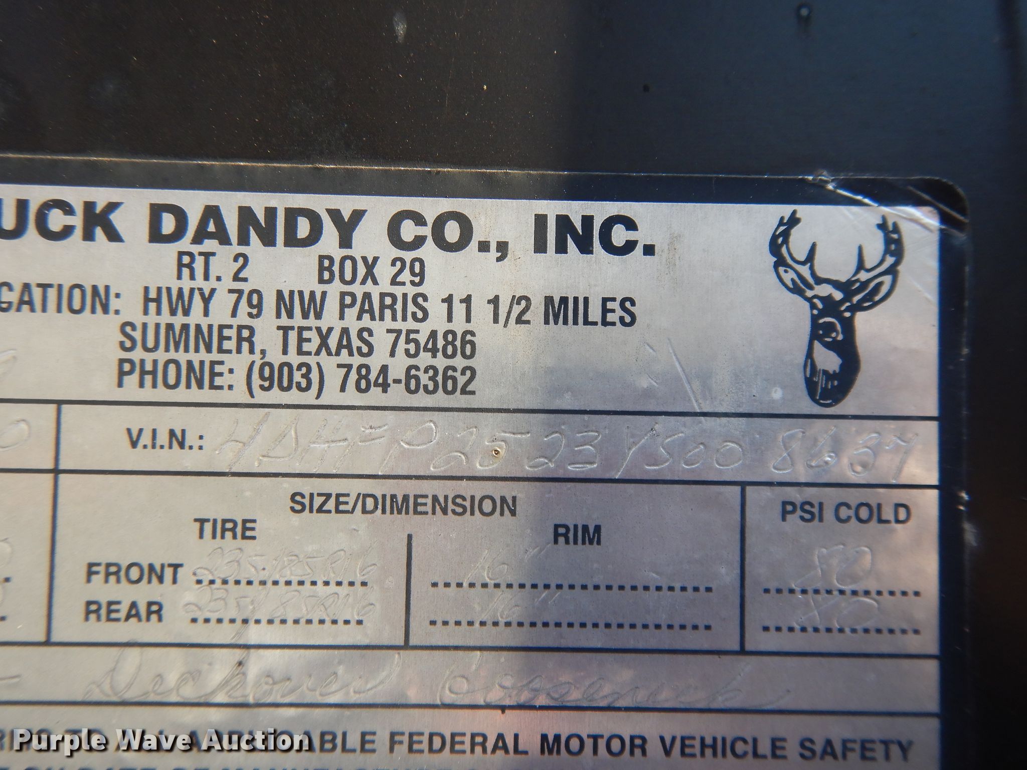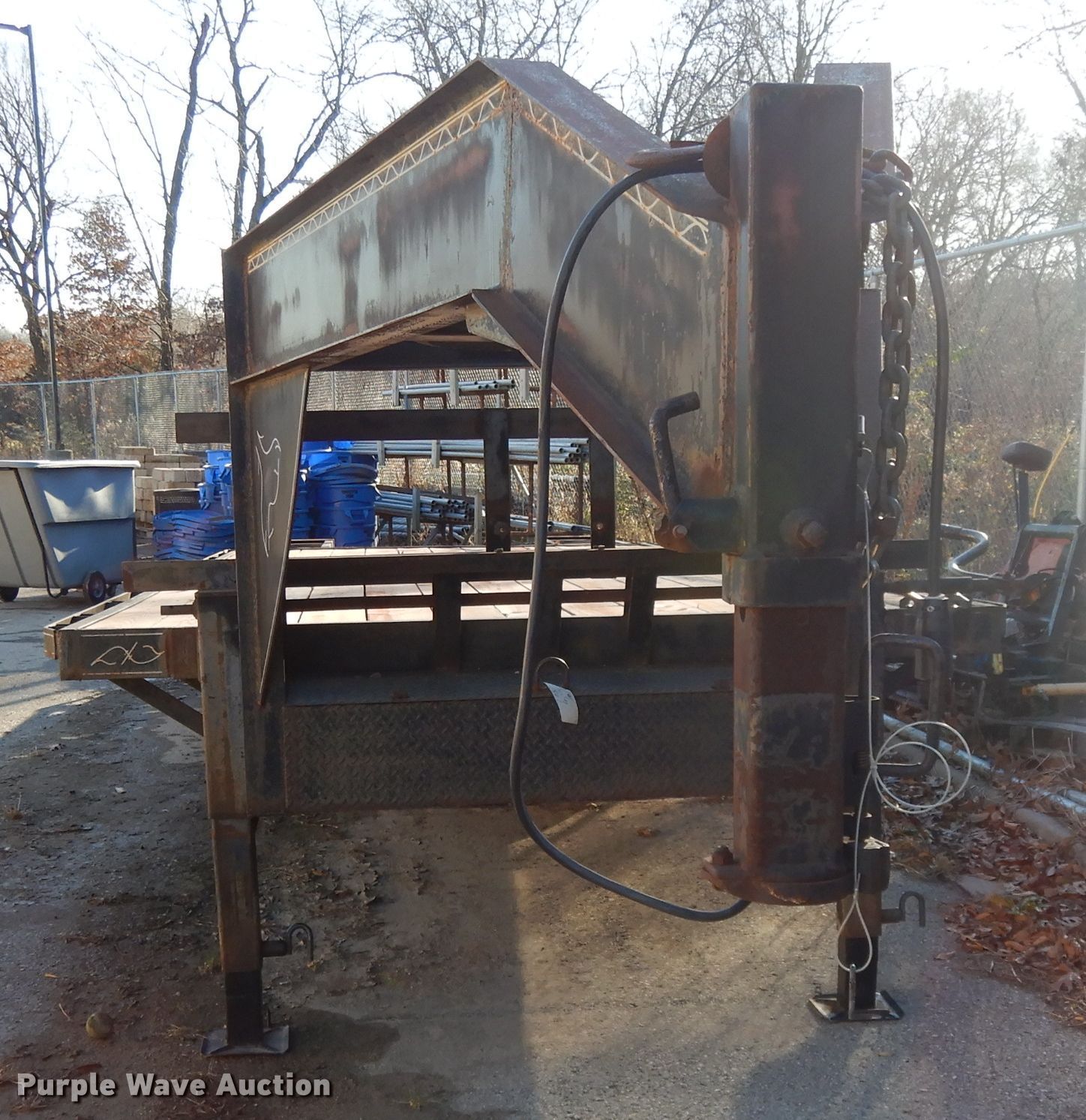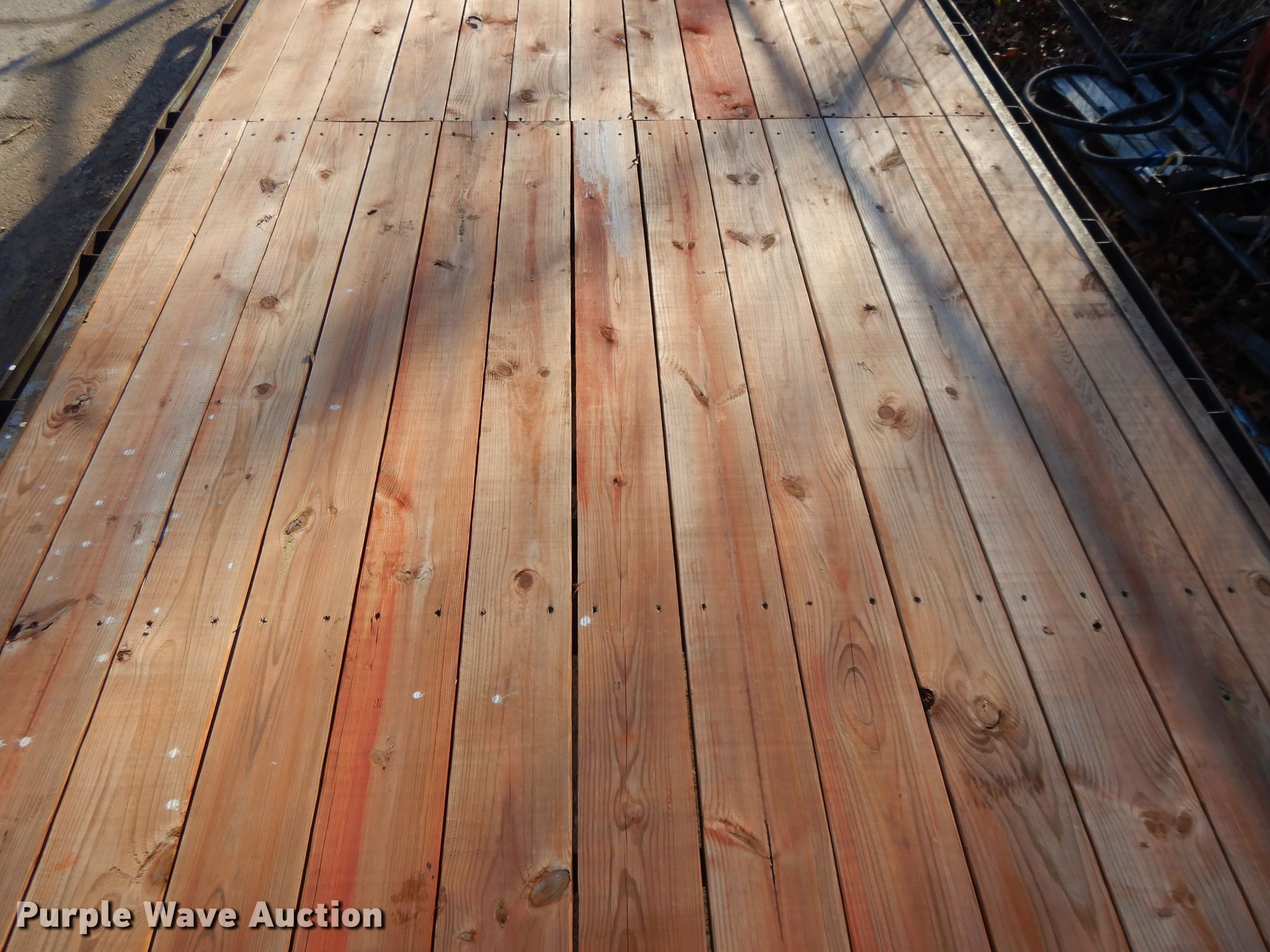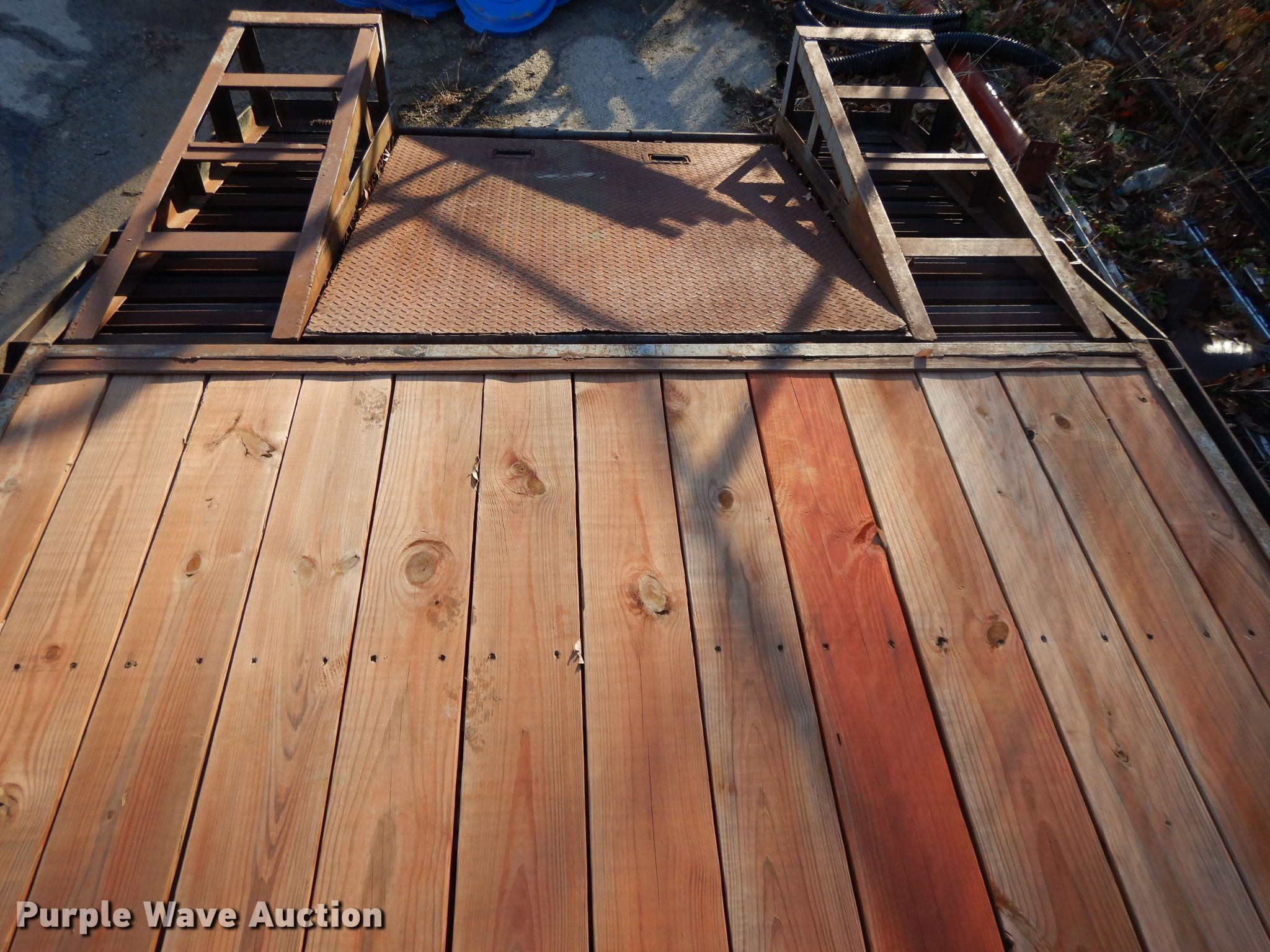 Purple Wave is selling a used Flat or Drop Deck Trailer in Kansas. This item is a 2000 Buck Dandy equipment trailer with the following: 32'L x 101"W overall, 20'L x 97"W deck, 5' tail length, 5'L ramps, Wood deck, Dual leg landing gear, Spring suspension, Electric brakes, Tandem axle, Steel wheels, 235/85R16 tires, GVWR 14,000 lbs, GAWR 7,000 lbs