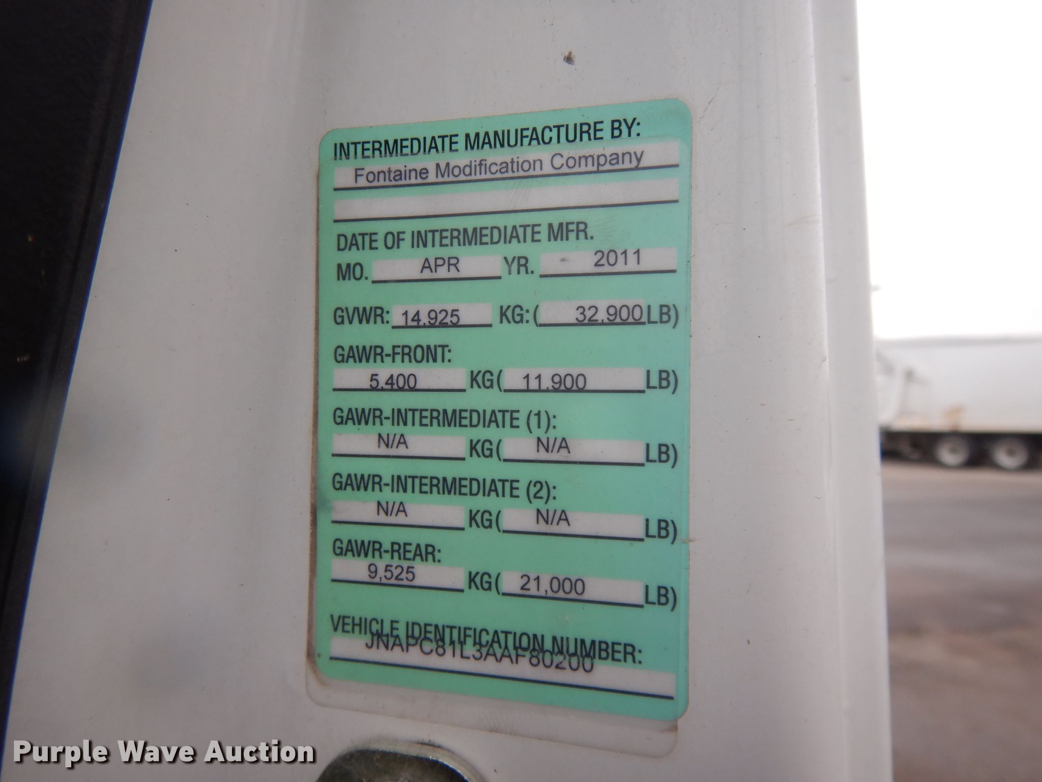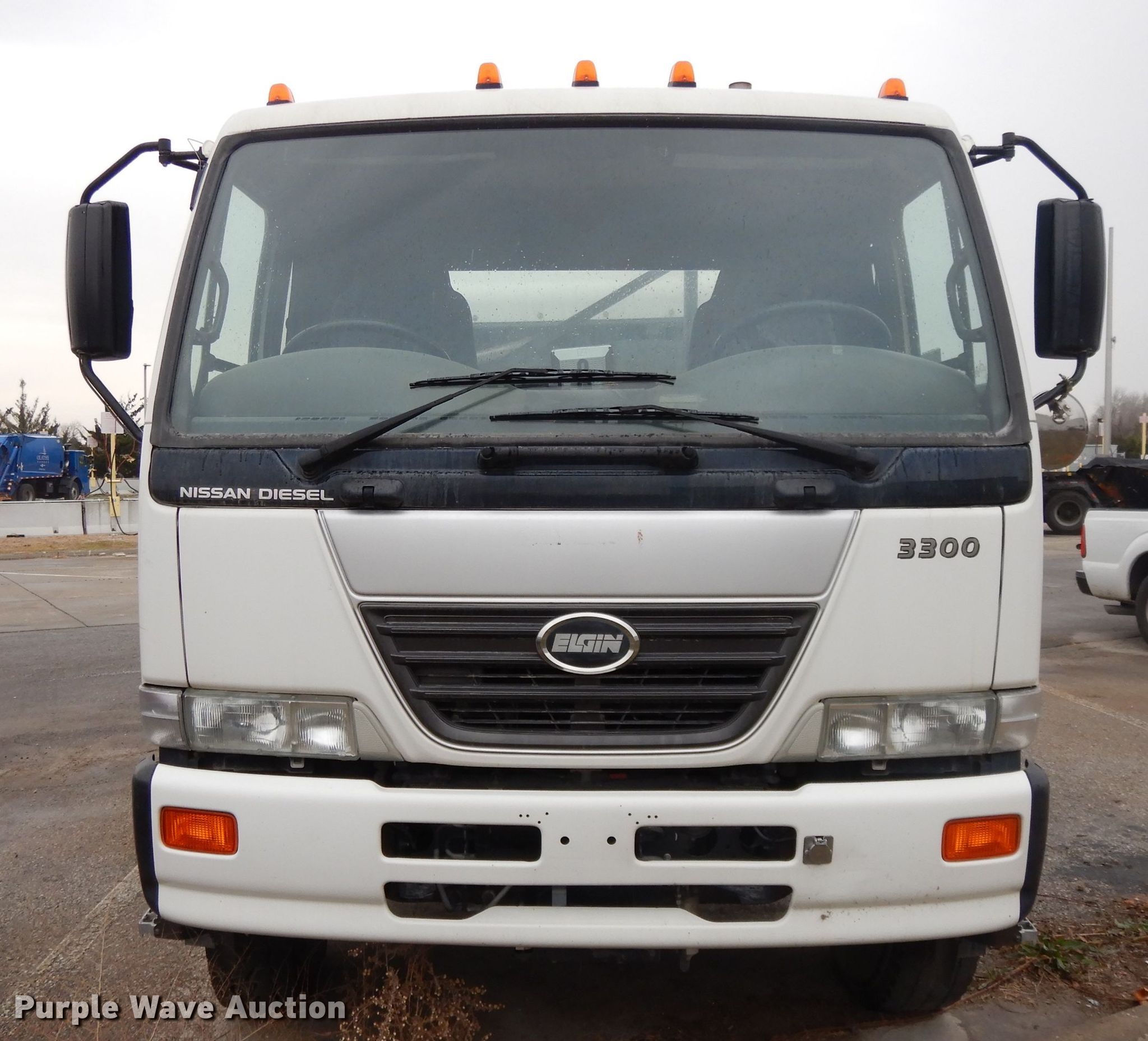 2010 Nissan UD3300 street sweeper truck. 65,681 miles on odometer. Engine Nissan, Displacement: 7.684L, Cylinders: 6, Fuel type: Diesel. Transmission Automatic. Chassis Suspension: Spring, Brakes: Hydraulic. Operators station Enclosed cab, AC, Heat, Dual operating station, Backup camera. Operational Broom Width: 60", Sweeper bed Sweeper bed type: Vacuum Elgin Whirlwind, Left gutter broom Diameter: 24", Right gutter broom Diameter: 24", Engine Cylinders: 4. Tires Size: 11R22.5. Notes Dead batteries, Unknown operating condition. Kansas title. Title distribution may be delayed up to 30 days from verification of funds. JNAPC81L3AAF80200. Olathe, KS 66061