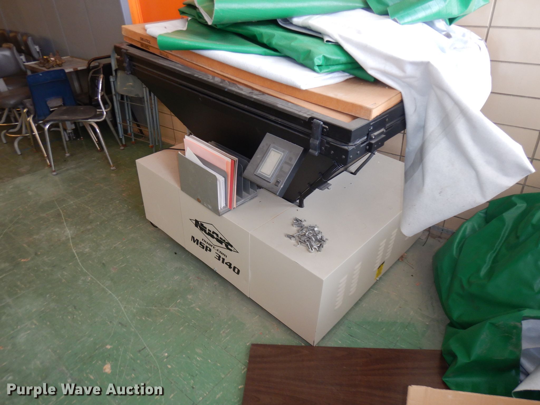 Purple Wave is selling a used Tools in Iowa. This item is a (2) screen printing machines with the following: Economax D EMXD240302016A21 screen printing machine, 230V, NuArc MSP3140 screen printing machine, 110V