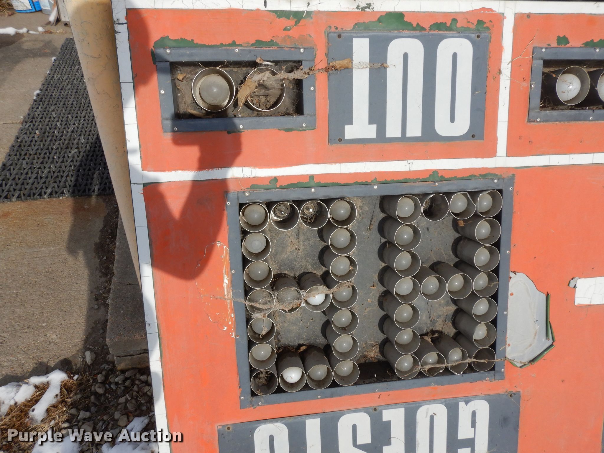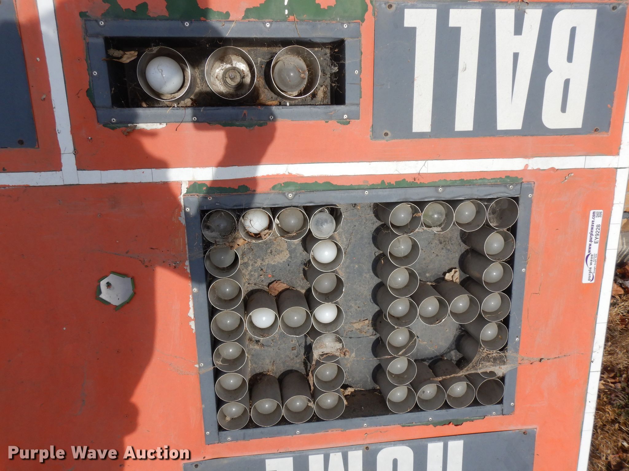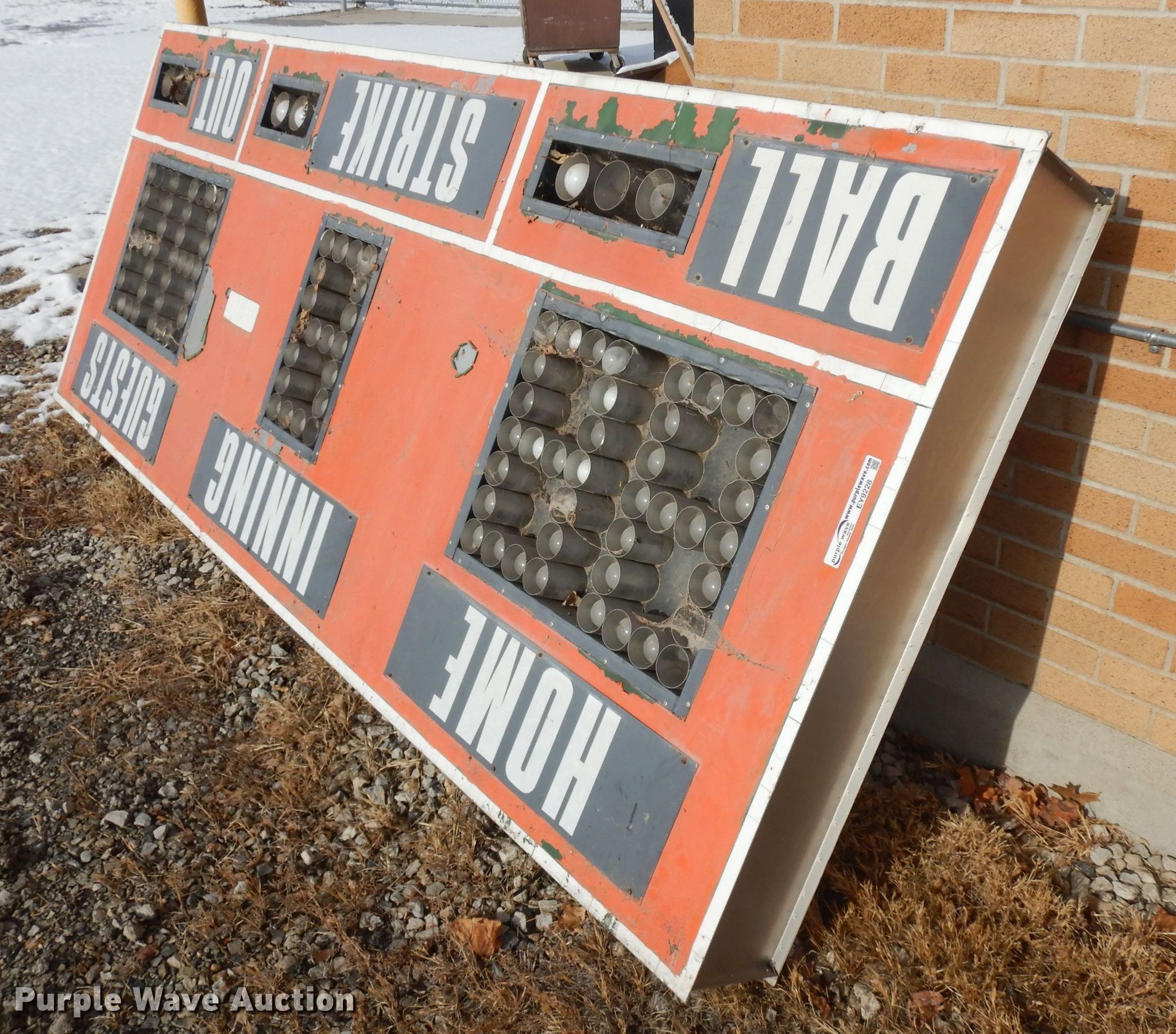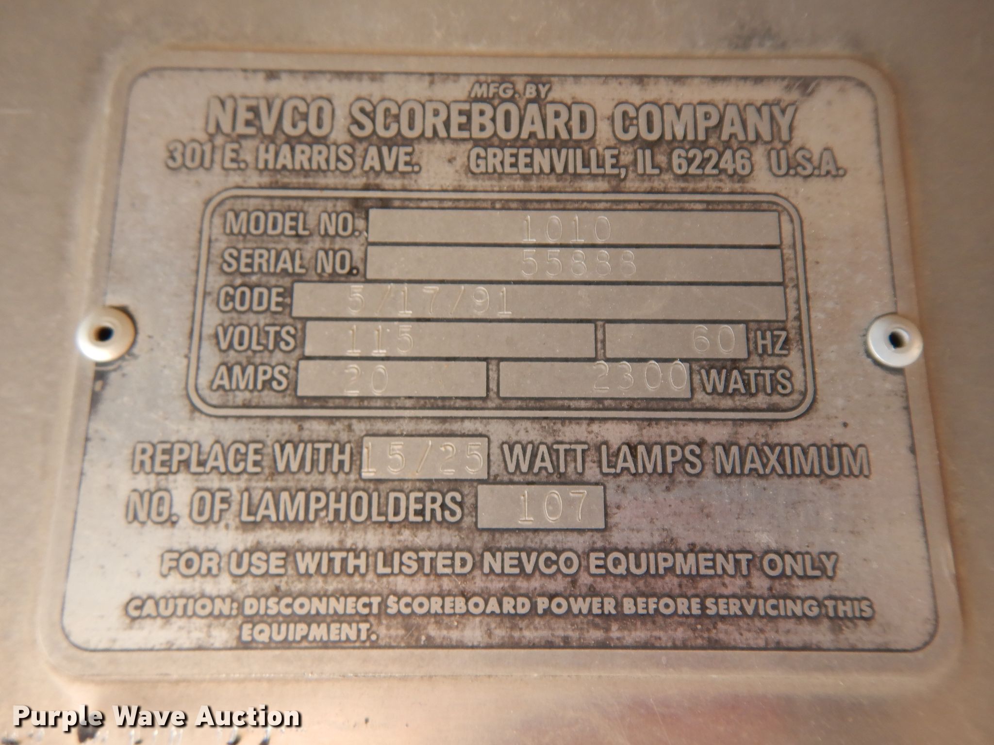 Purple Wave is selling a used Sporting Goods in Iowa. This item is a Nevco Scoreboard Company 1010 baseball scoreboard with the following: 115V
