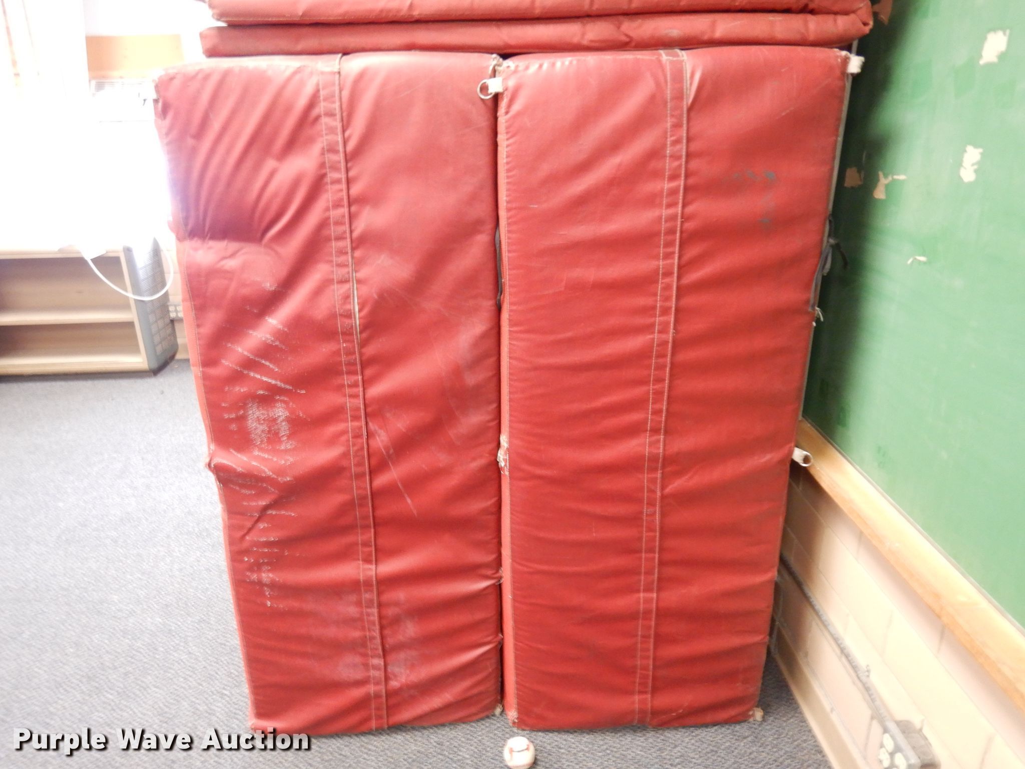 Purple Wave is selling a used Sporting Goods in Iowa. This item is a Sporting goods with the following: (2) high jump pads, 96" x 62", (3) wall mounts, (2) starter blocks on plywood