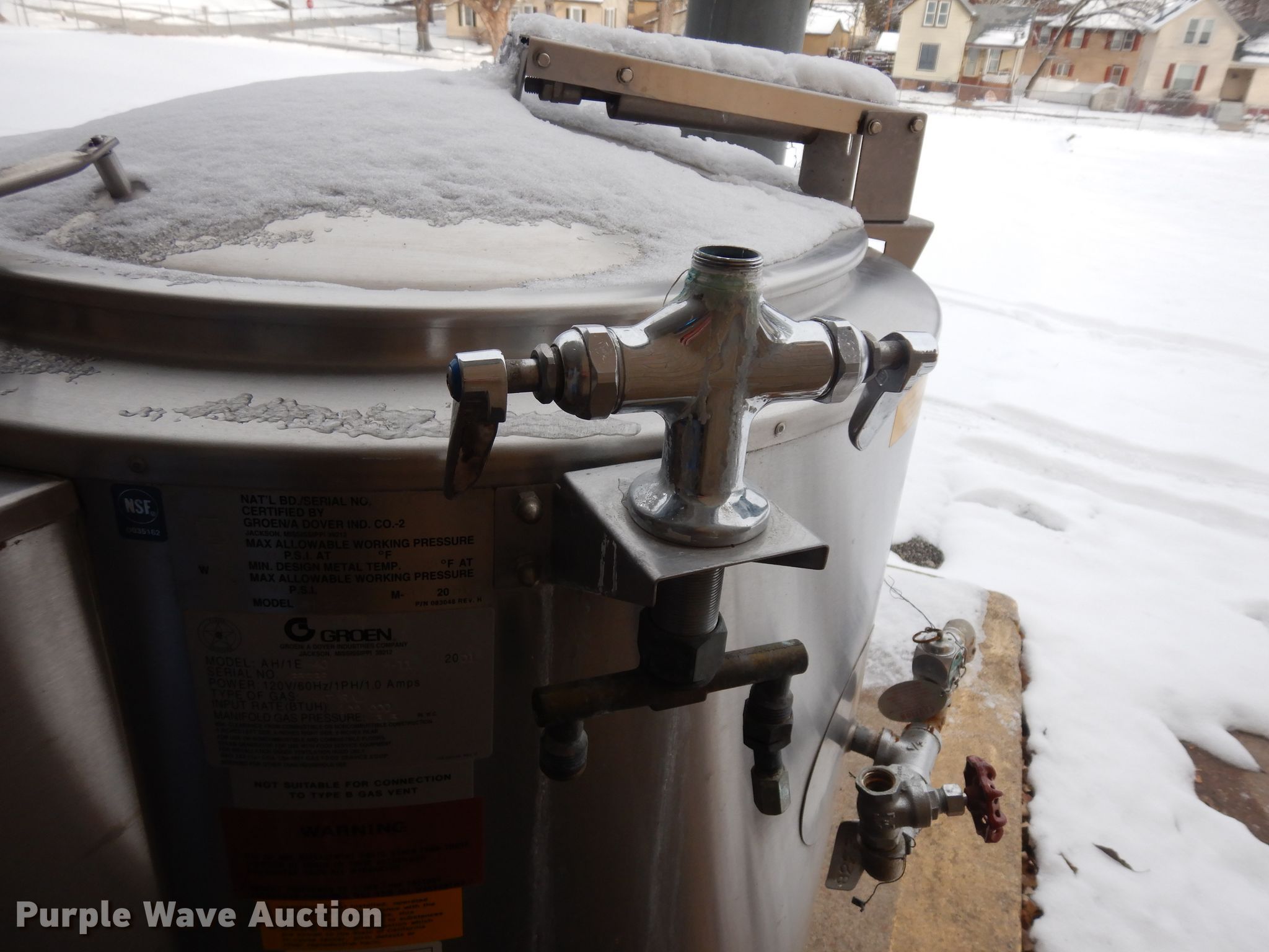 Purple Wave is selling a used Appliances in Iowa. This item is a Groen AH/1E-40 stainless steel kettle cooker with the following: 115V, Single phase, Natural gas