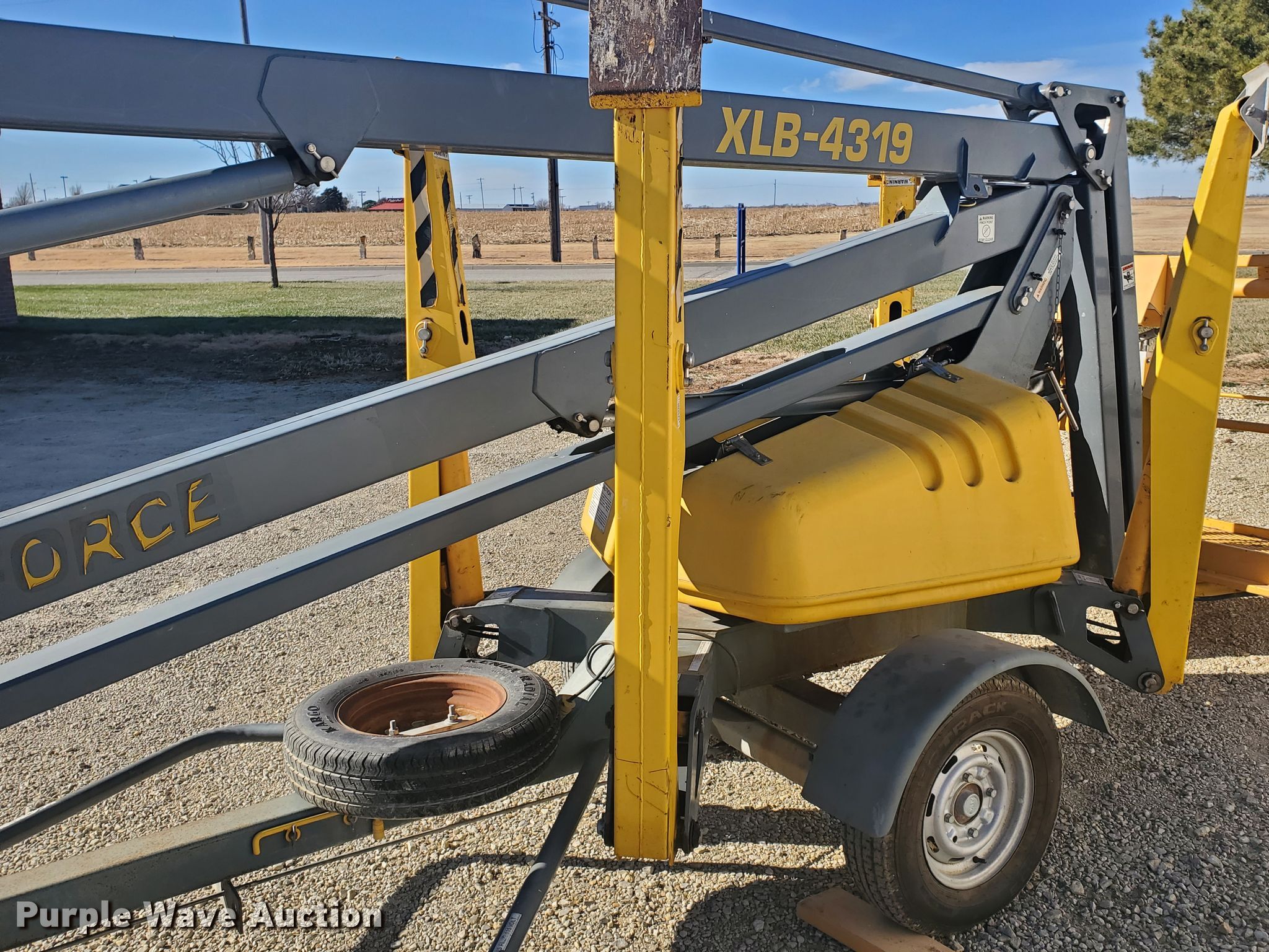 2003 Bil-Jax XLB4319 Workforce boom lift. Serial: K133305. Electric Motor Volts: 24. Operational Tow behind, Maximum lift capacity: 450 lbs, Maximum reach length: 19', Maximum lift height: 43', Hydraulic outriggers, Hydraulic extendable jib, Platform: 48" L x 24" W, Controls: Platform, Ground, Platform rotation: Hydraulic. Tires Tire size: 175/80R13. Notes Outrigger leaks down. This is worksite support equipment and will not come with a title. Transfer of ownership documentation will be a bill of sale. K133305. North Central Kansas Technical College. 3033 US-24. Beloit, KS 67420