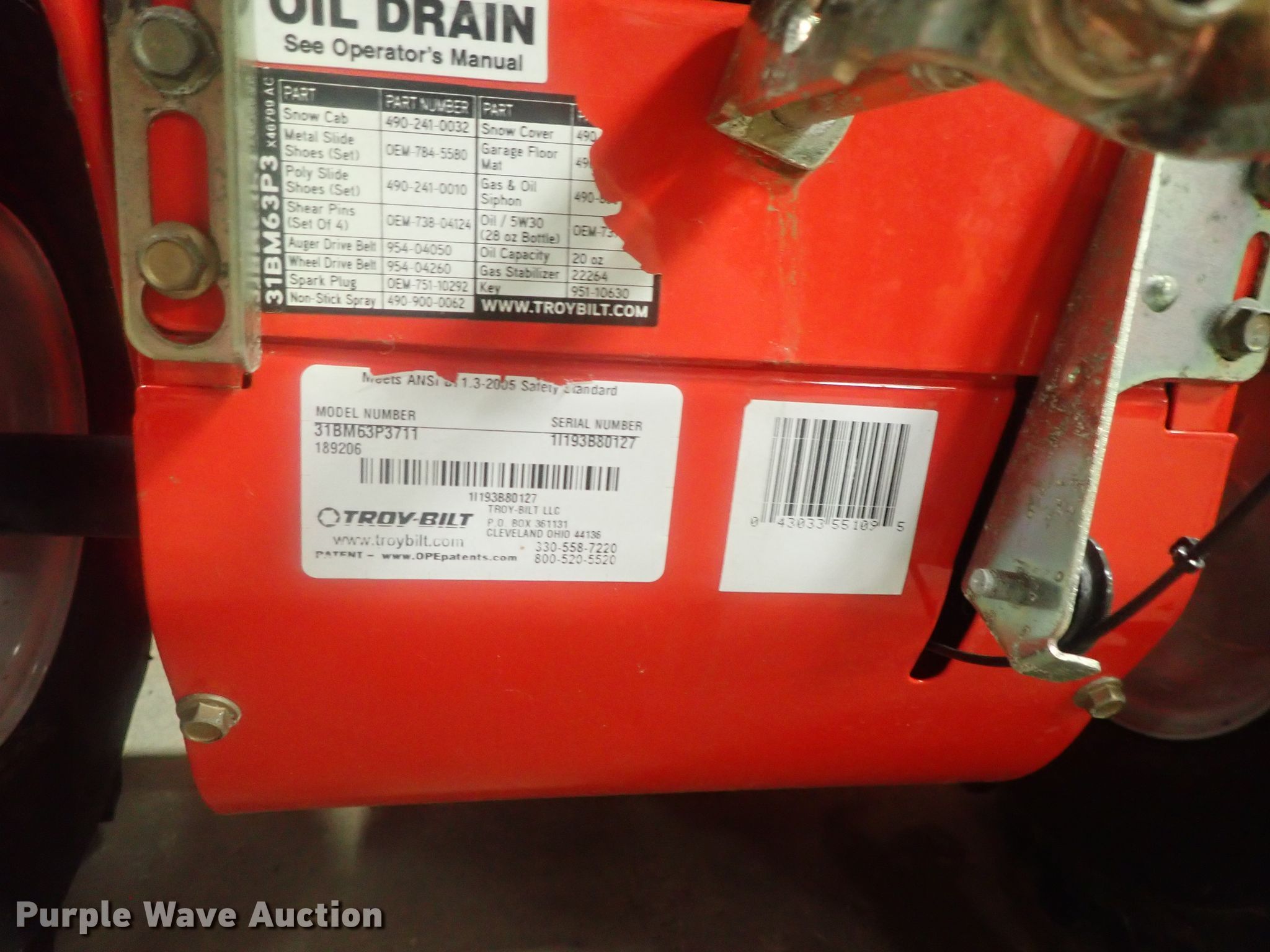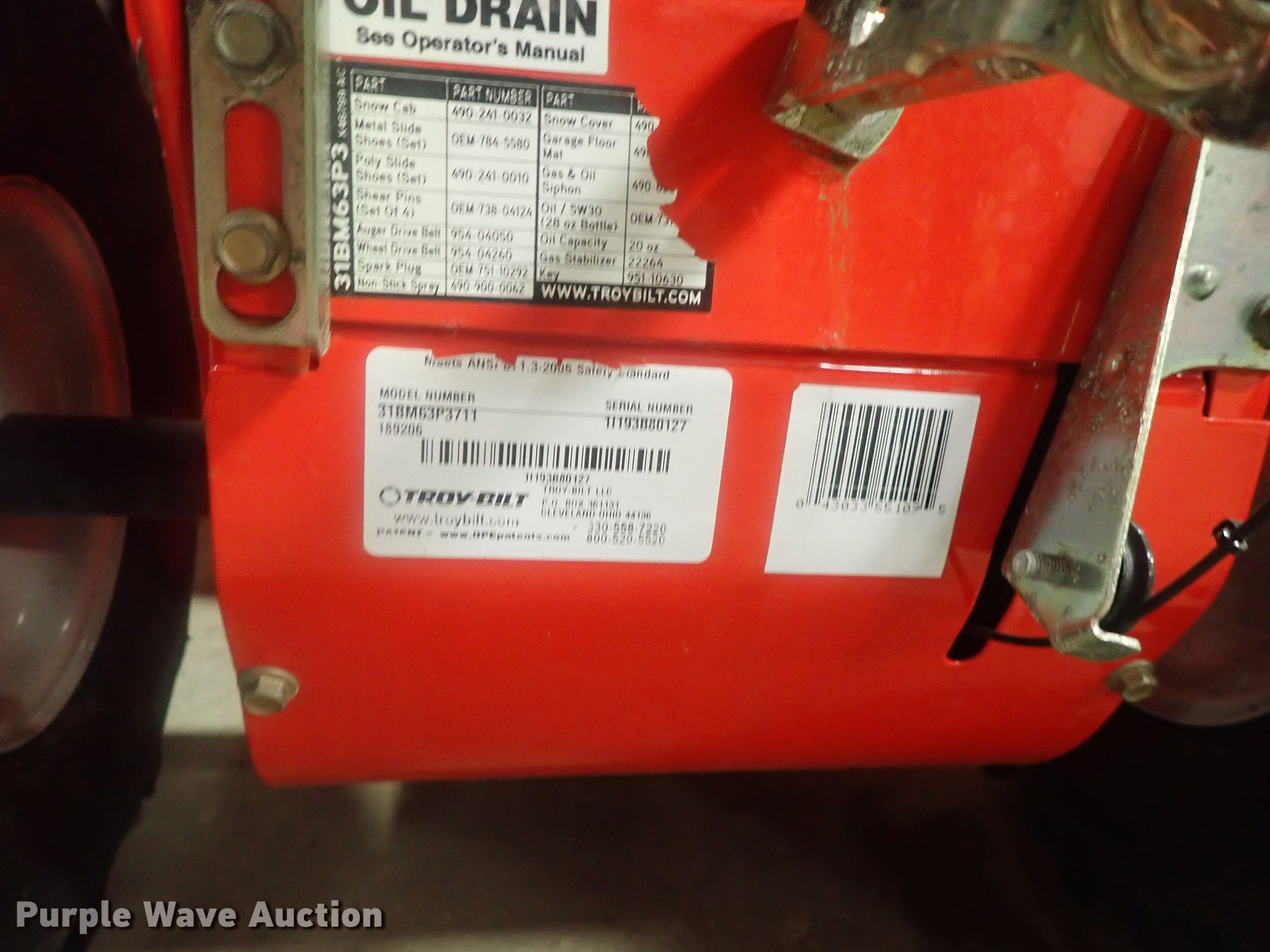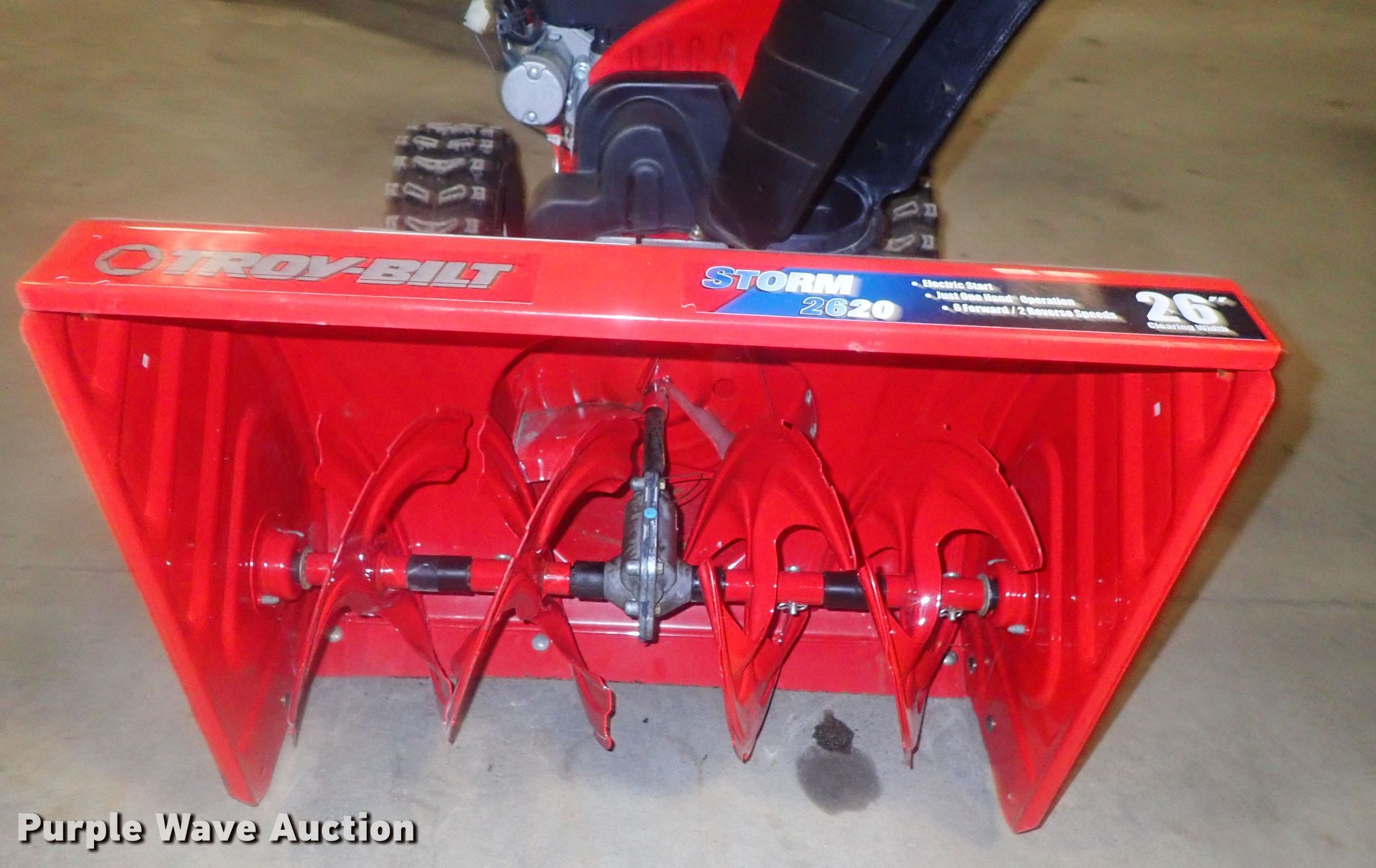 Purple Wave is selling a used Lawn and Garden in Kansas. This item is a Troy-Bilt Storm 2620 snow blower with the following: 26"W, Gas engine, Unused