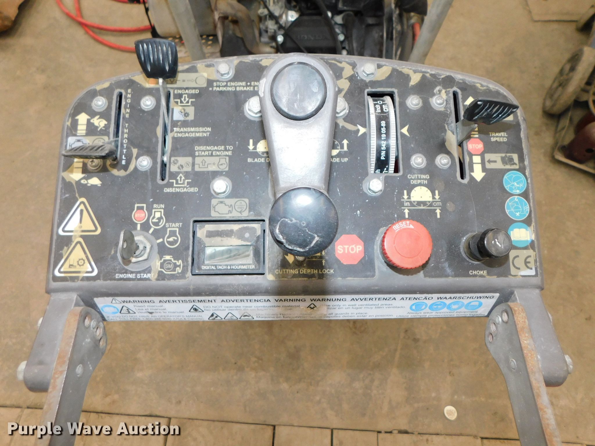 Purple Wave is selling a used Concrete Equip. or Acces. in Nebraska. This item is a Concrete saw with the following: 492 hours on meter, Honda two cylinder gas engine, 20 HP, Cutting guide, Water application, 24" blade capacity, Additional shutoff included