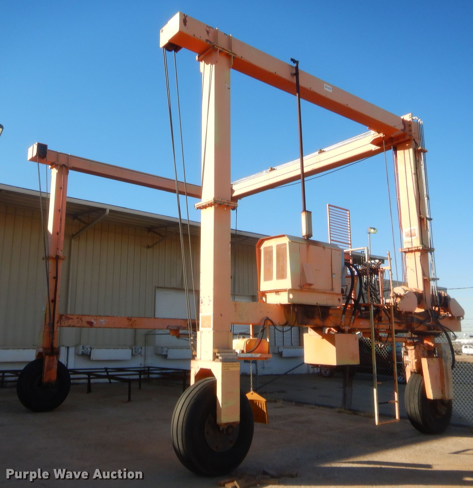 Gantry crane. 894 hours on meter, 60,000 lbs capacity, Drive motor, 43x77 tires. Disassembly and removal is the sole responsibility of the purchaser. ARS America, Inc.. 200 NE 48th St. Oklahoma City, OK 73105