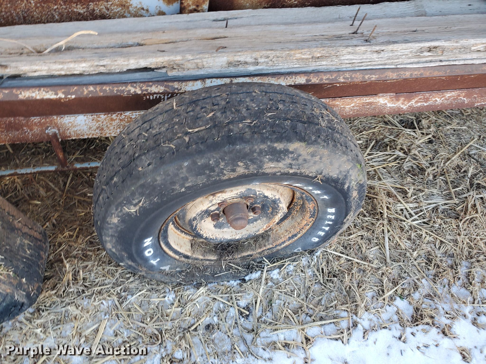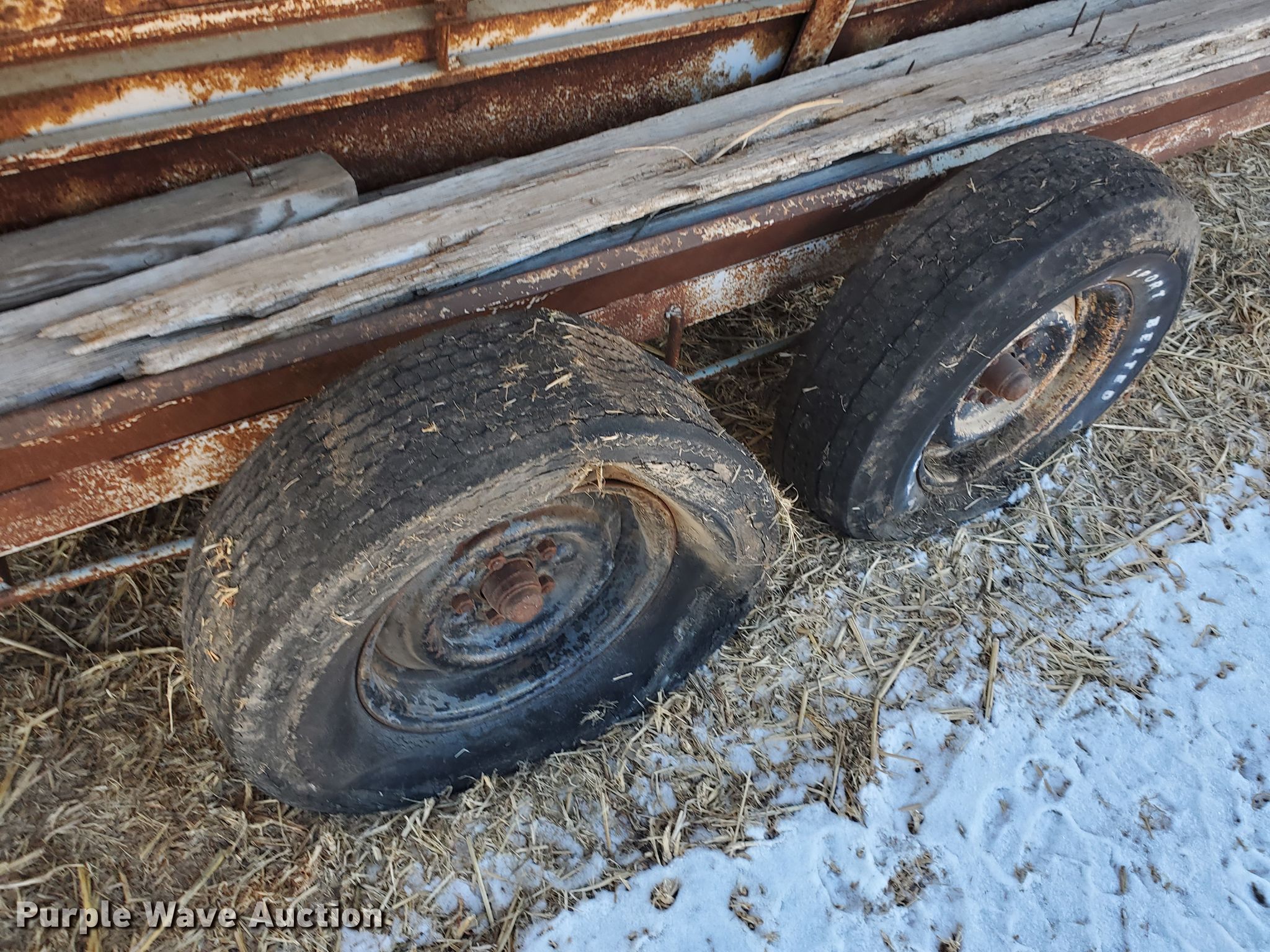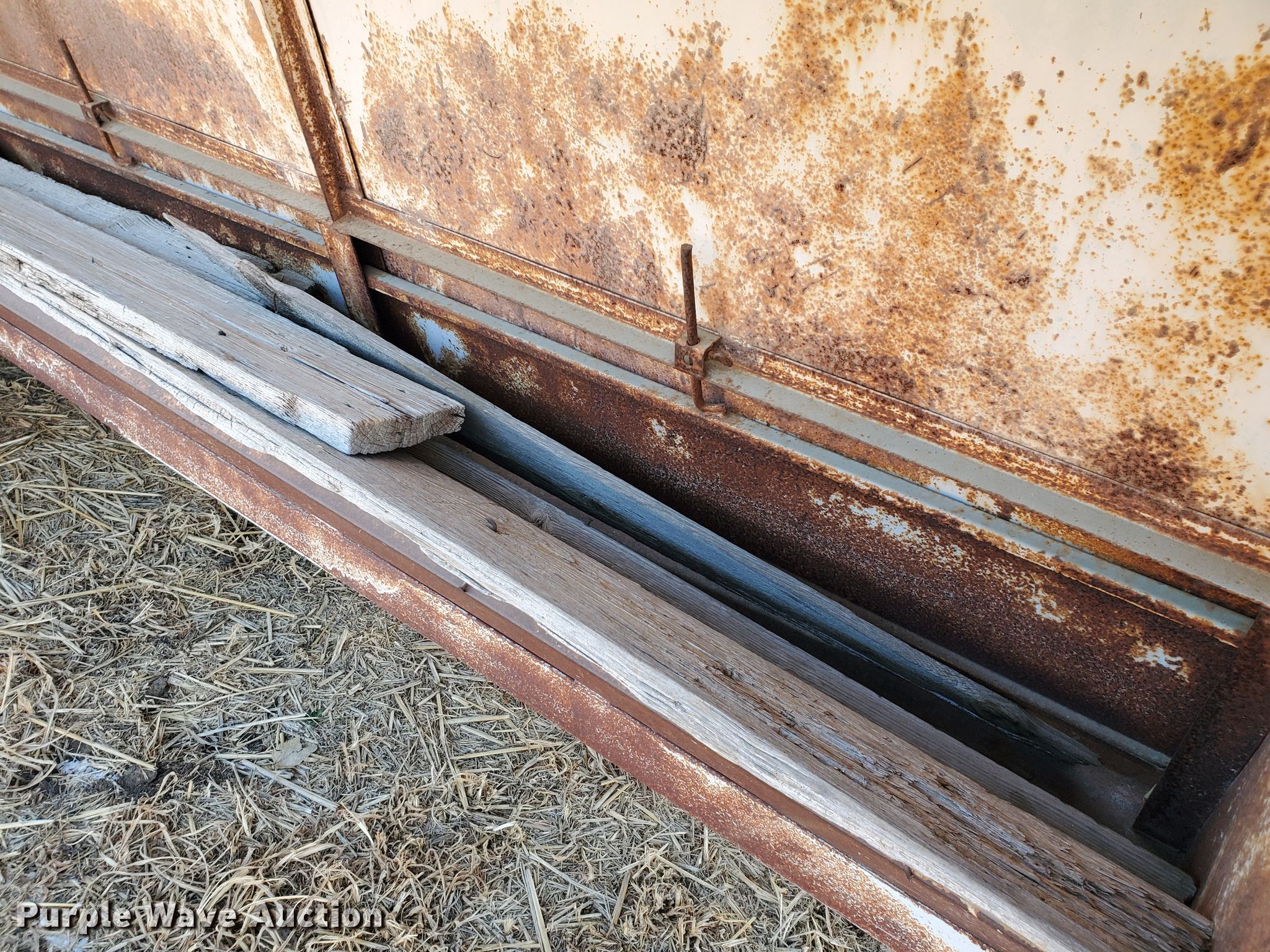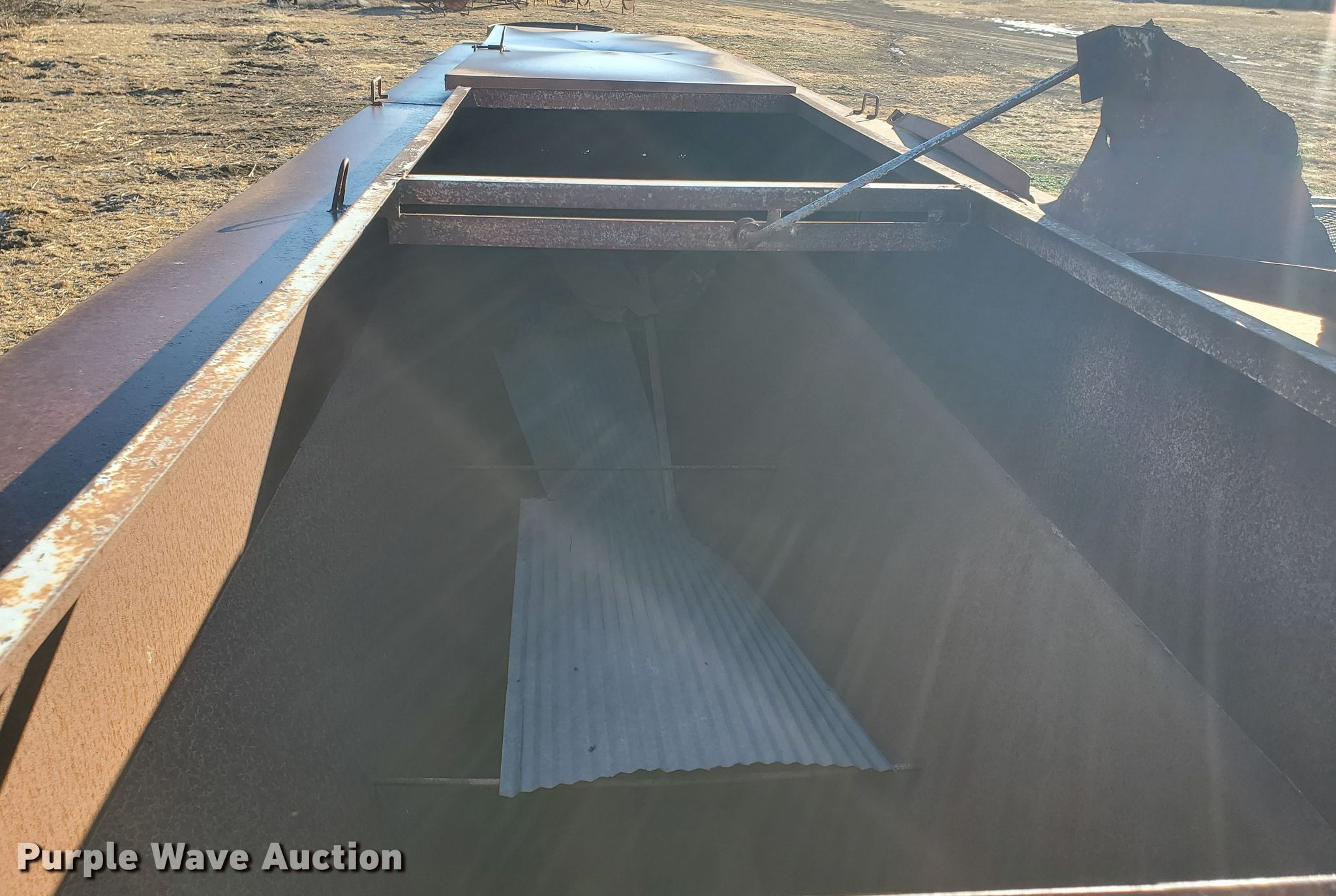 Palmer creep feeder. 16'L x 92"W hopper, F78-14 tires, Tires need to be replaced, Top door damage. Fort Hays State University Farms. 601 Park St. Hays, KS 67601