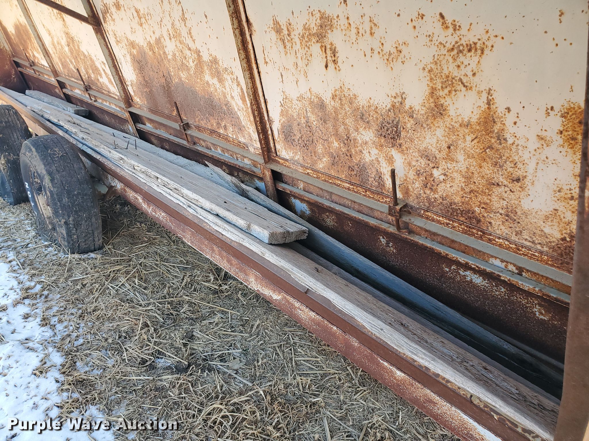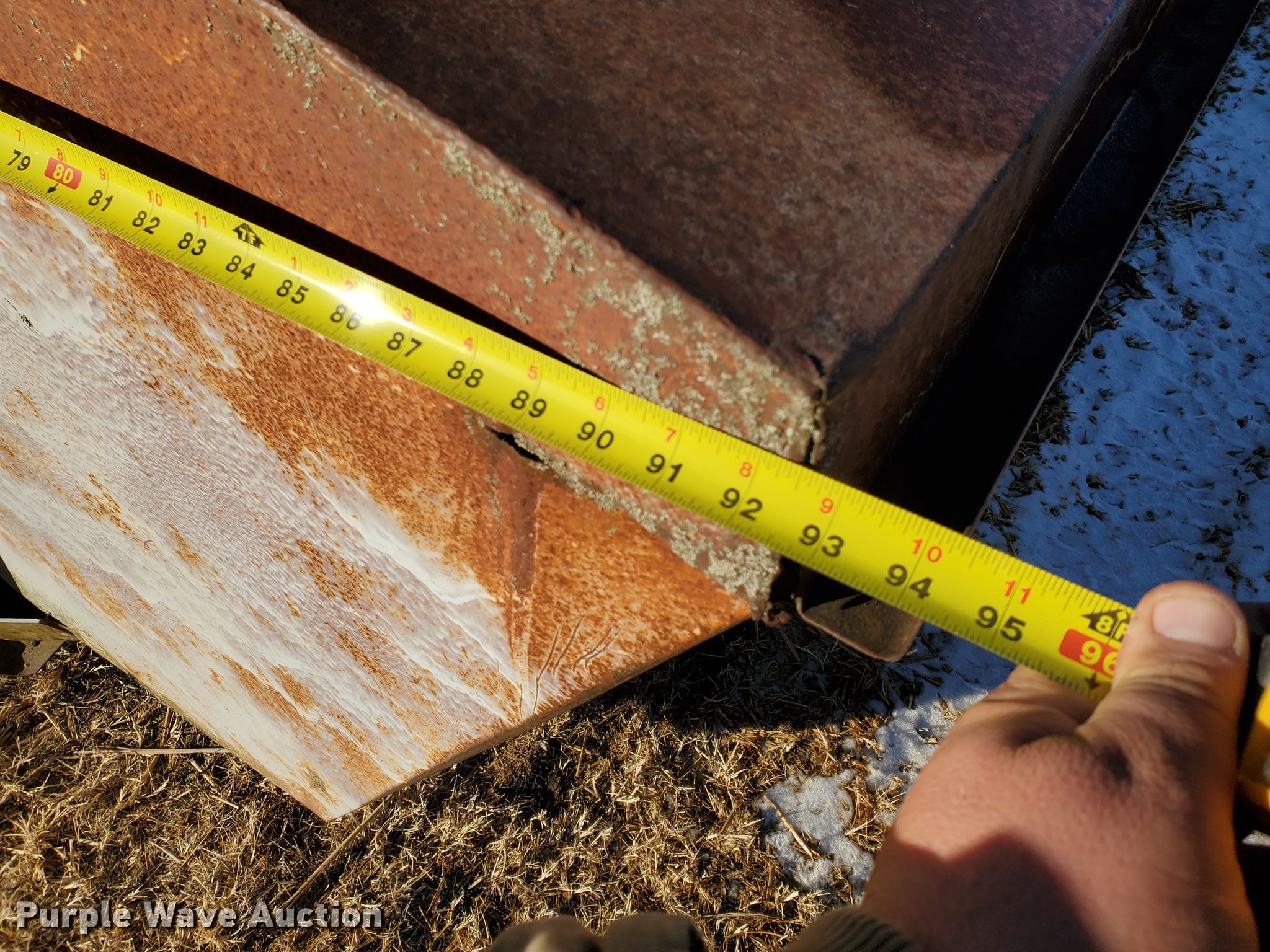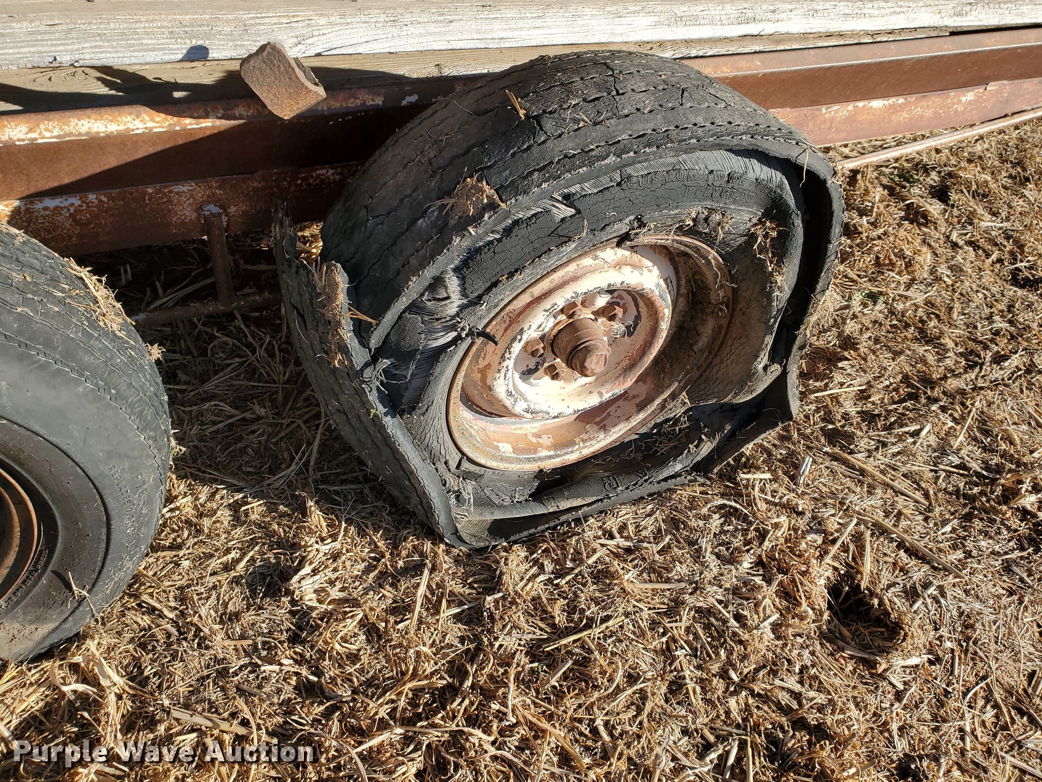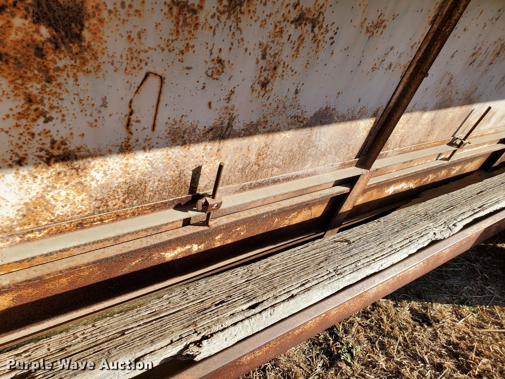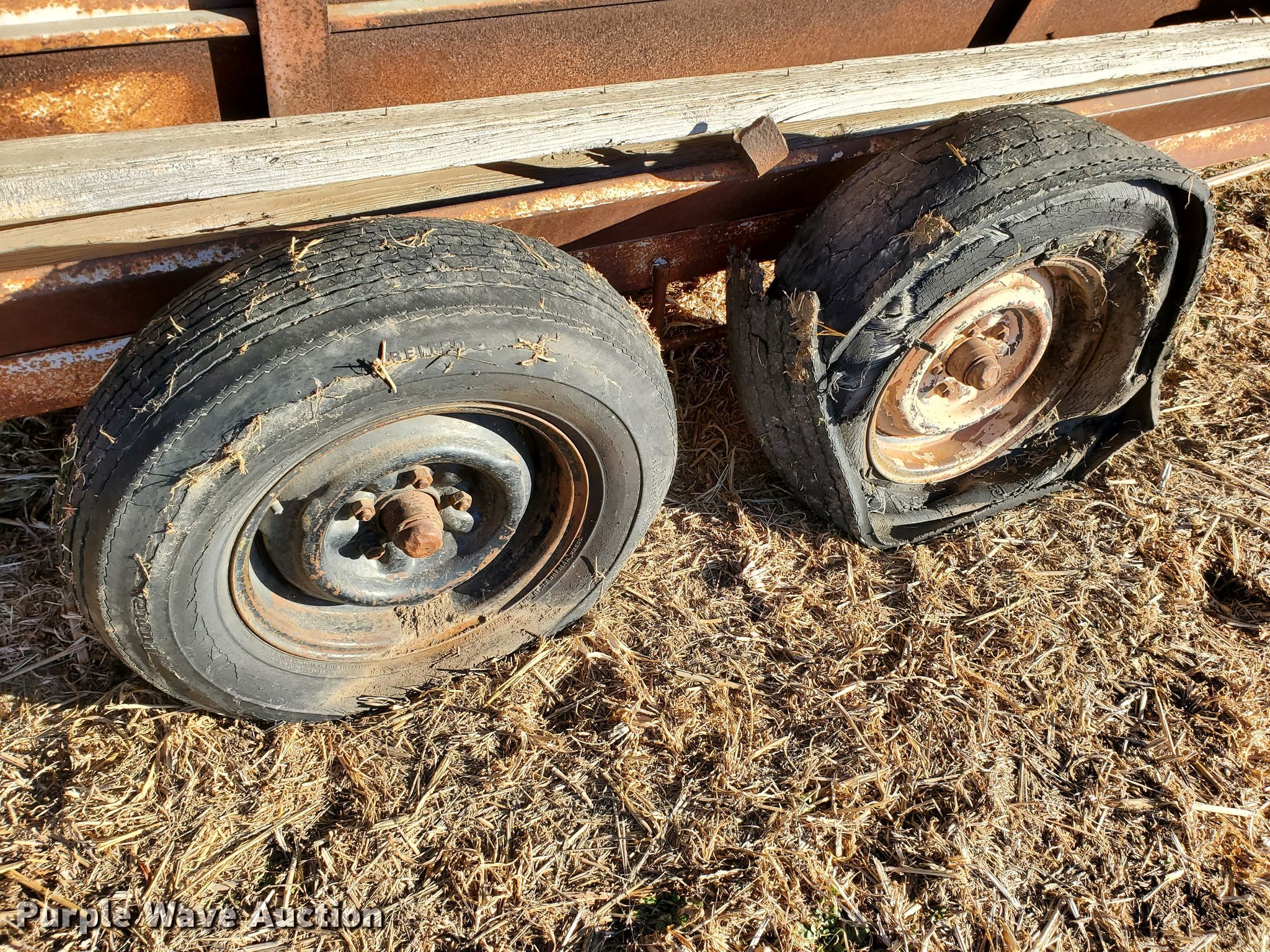Palmer creep feeder. 16'L x 92"W hopper, F78-14 tires, Tires need to be replaced, Top door damage. Fort Hays State University Farms. 601 Park St. Hays, KS 67601