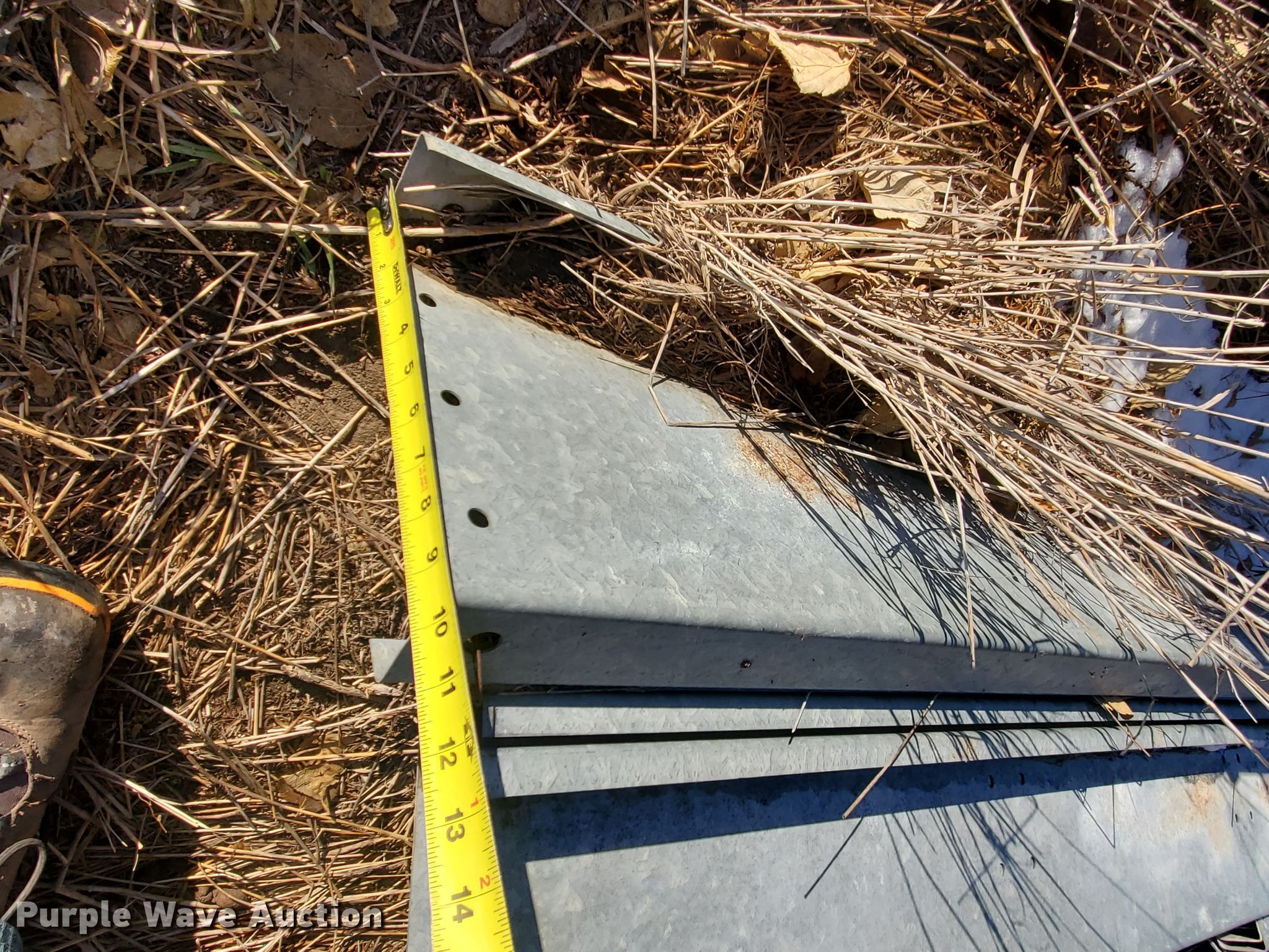 Purple Wave is selling a used Building Materials in Kansas. This item is a (22) pieces of galvanized metal with the following: (4) Approx. 24'L x 10"W, (18) approx. 19'L x 10"W