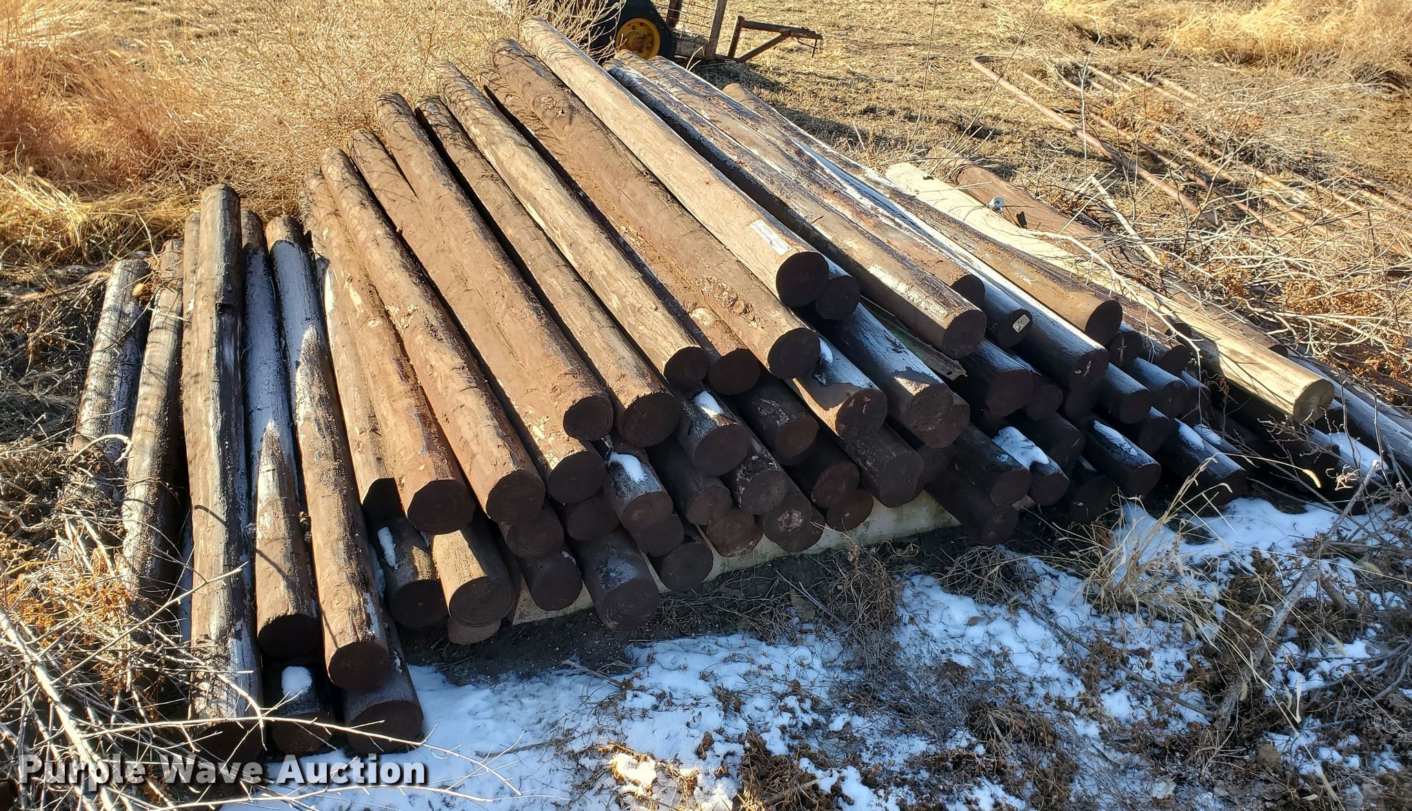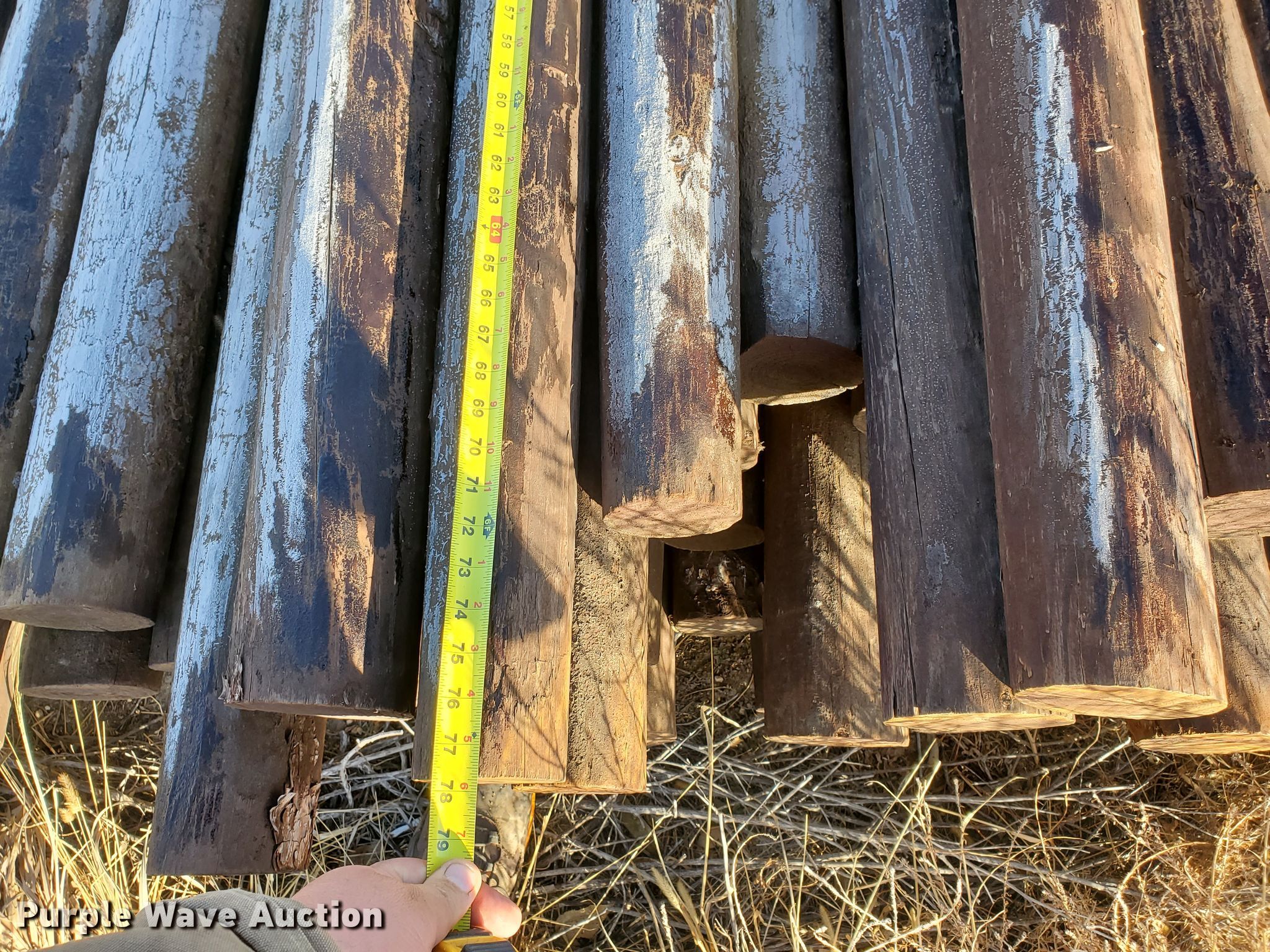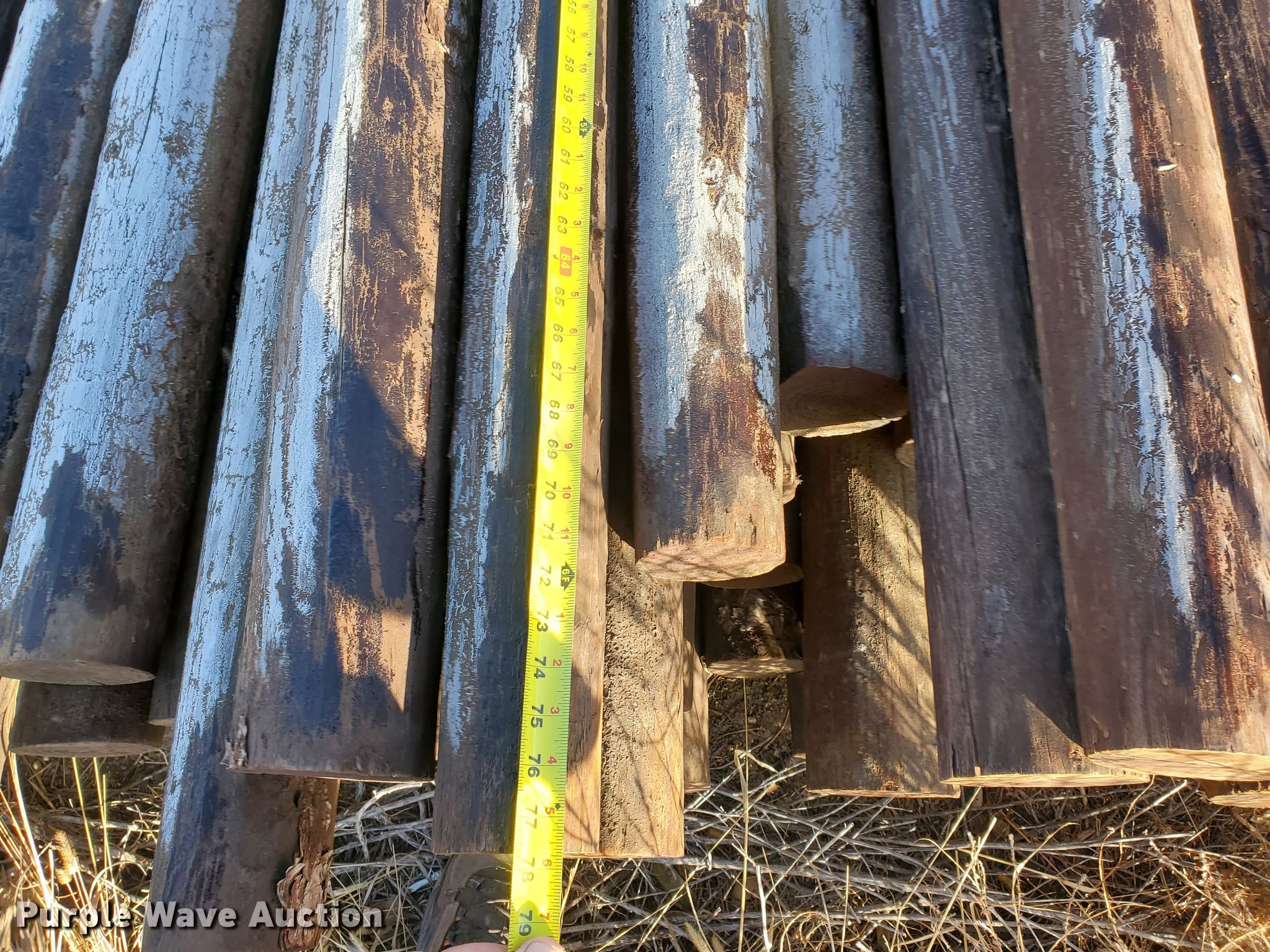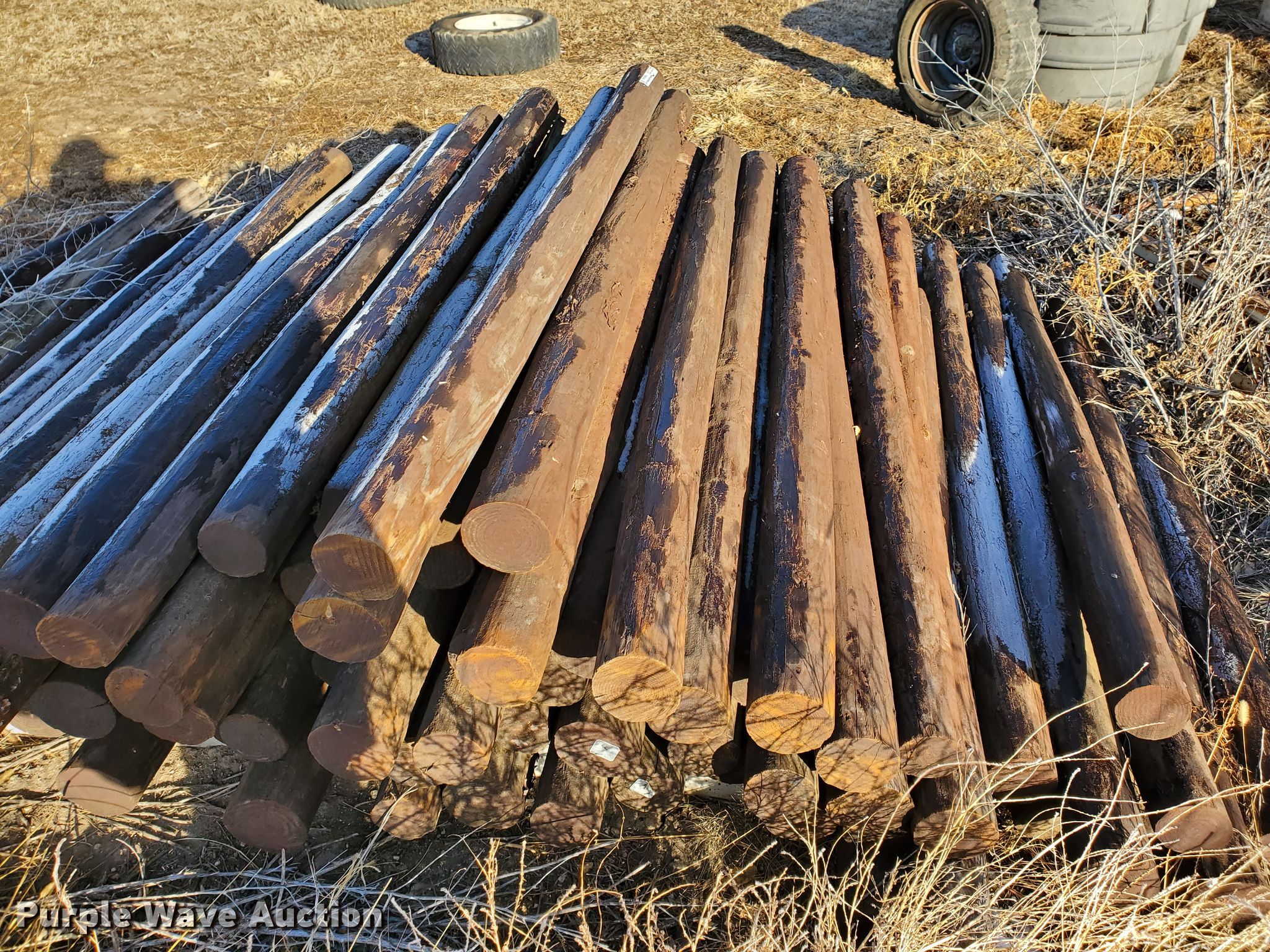 Purple Wave is selling a used Fencing Materials in Kansas. This item is a (95) creosote posts with the following: 6.5'L x 4" diameter