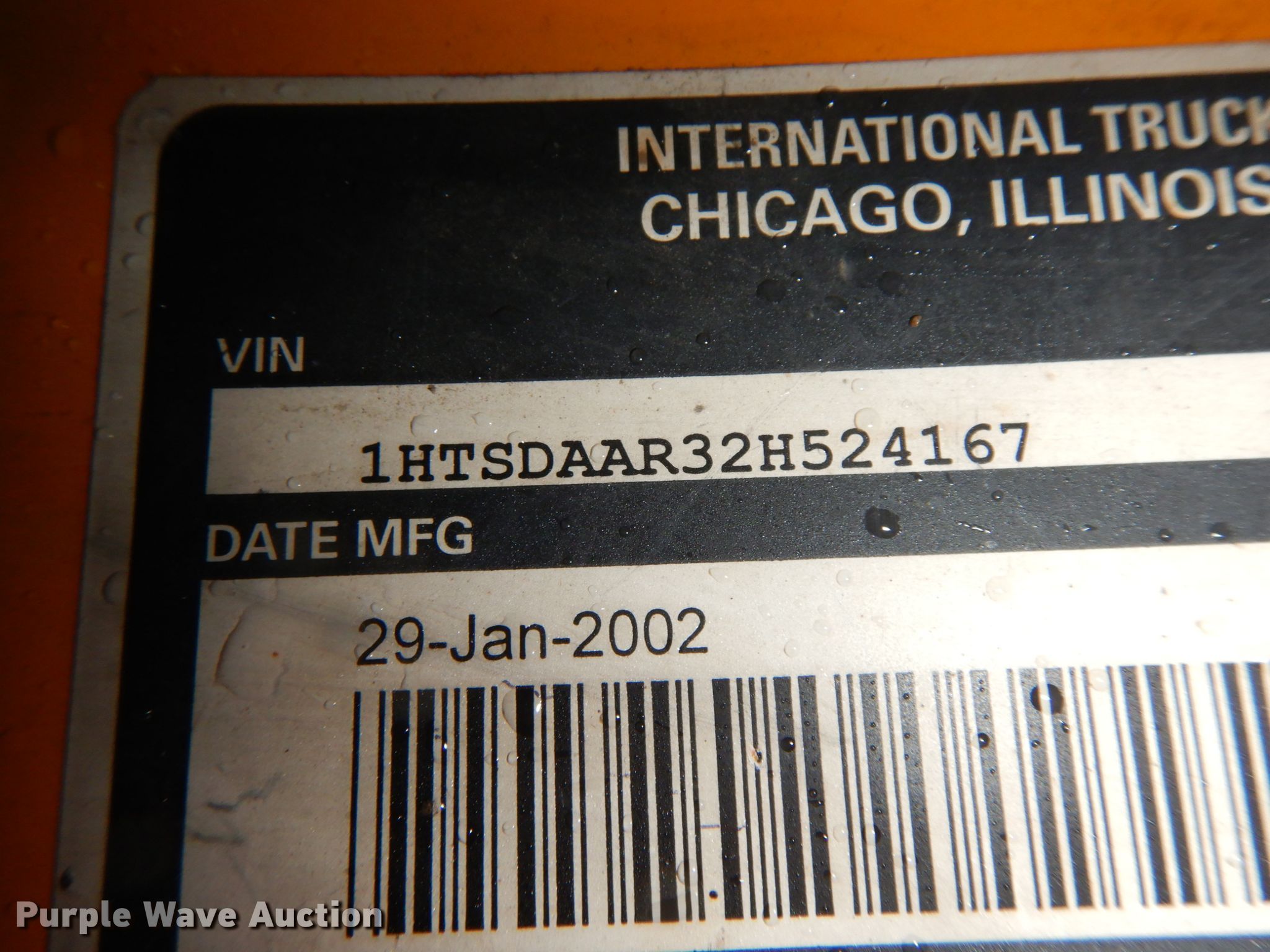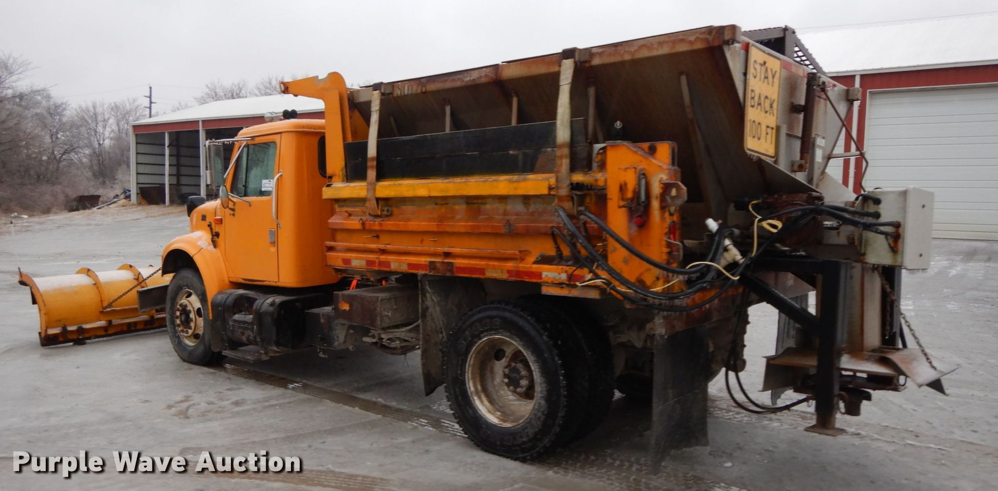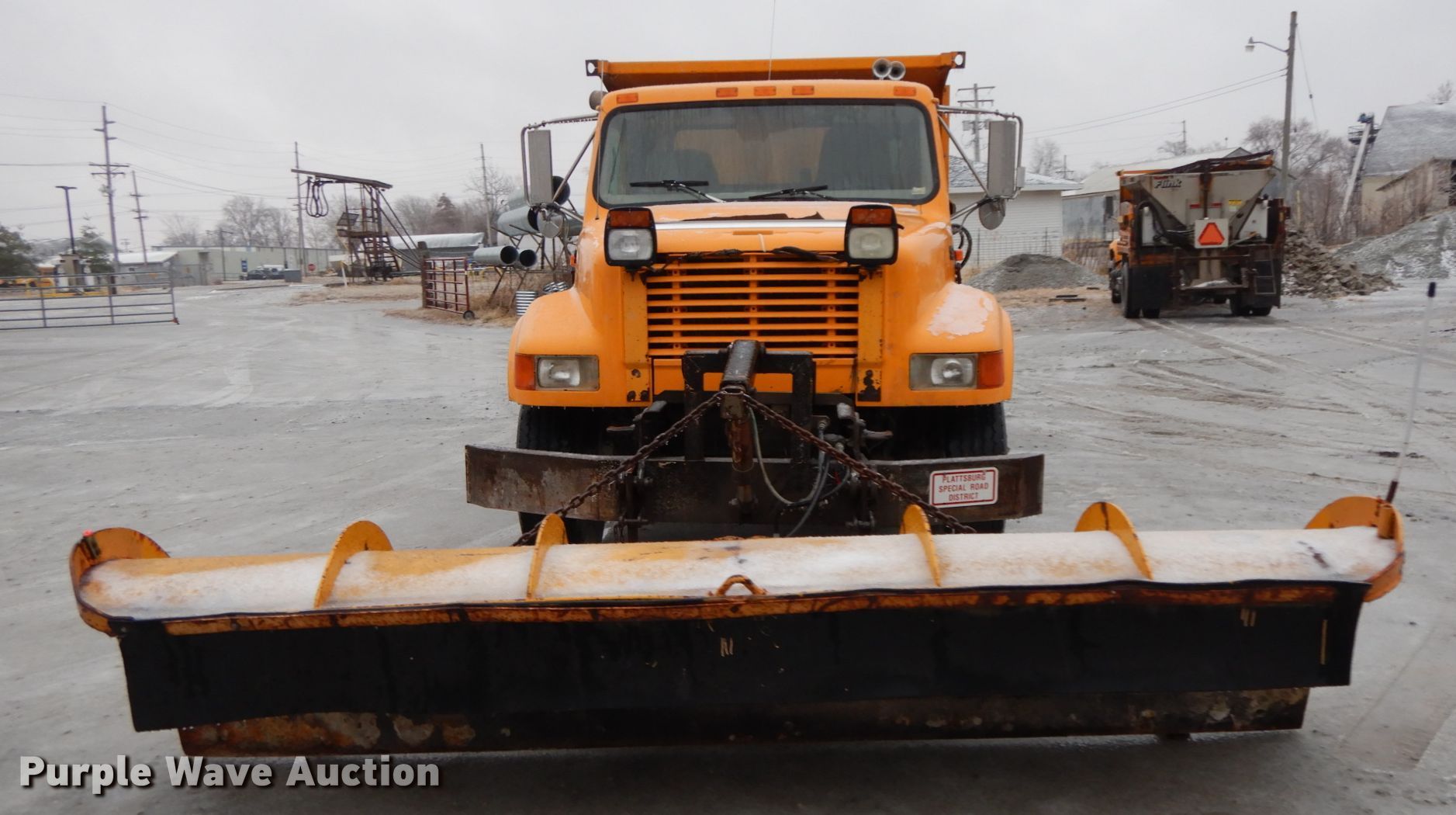 2002 International 4900 dump truck. 200,504 miles on odometer, Engine hours: 12,846. Engine International DT466, Displacement: 7.6L, Cylinders: 6, Fuel type: Diesel. Transmission Automatic. Chassis Axles: Single, Suspension: Air, Brakes: Air, PTO, Wheelbase: 171". Interior AC, Heat, Heated mirrors, Power windows, Cruise control. Operational Dump bed 10' L x 96" W, Side height: 24", Side board height: 12", Bed type: Steel, Ram: Single , End gate: Air operated, Plow Width: 120". Tires Front: 315/80R22.5, Rear: 11R22.5. Notes Windshield chipped or cracked. Missouri title. Title distribution may be delayed up to 30 days from verification of funds. 1HTSDAAR32H524167. Plattsburg Special Road District. 1101 Polotsky St. Plattsburg, MO 64477