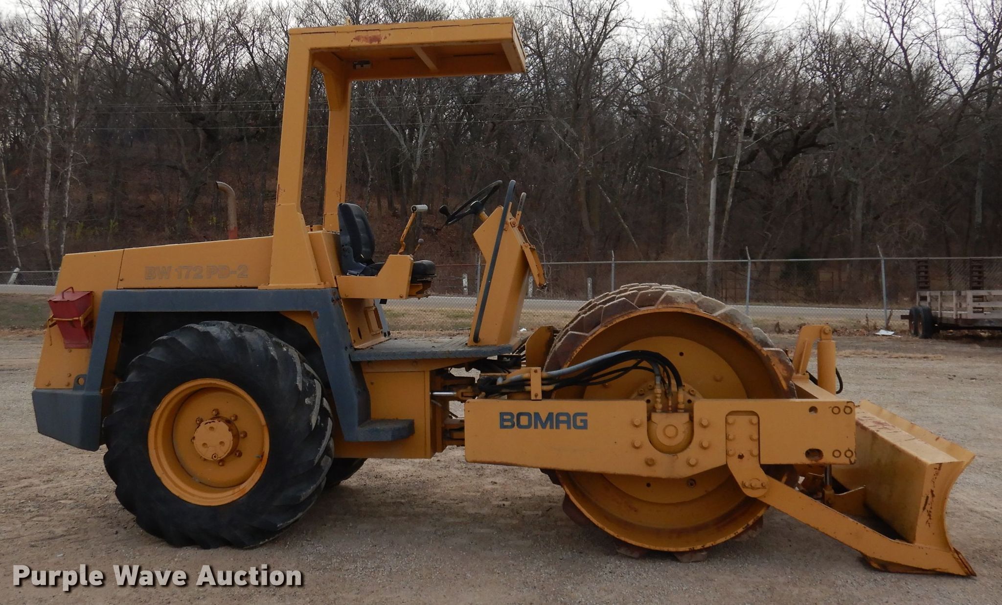 Purple Wave is selling a used Single Drum Roller Compactor in Kansas. This item is a Bomag BW172PD2 single drum roller with the following: 1,506 hours on meter, Serial: 101520500209