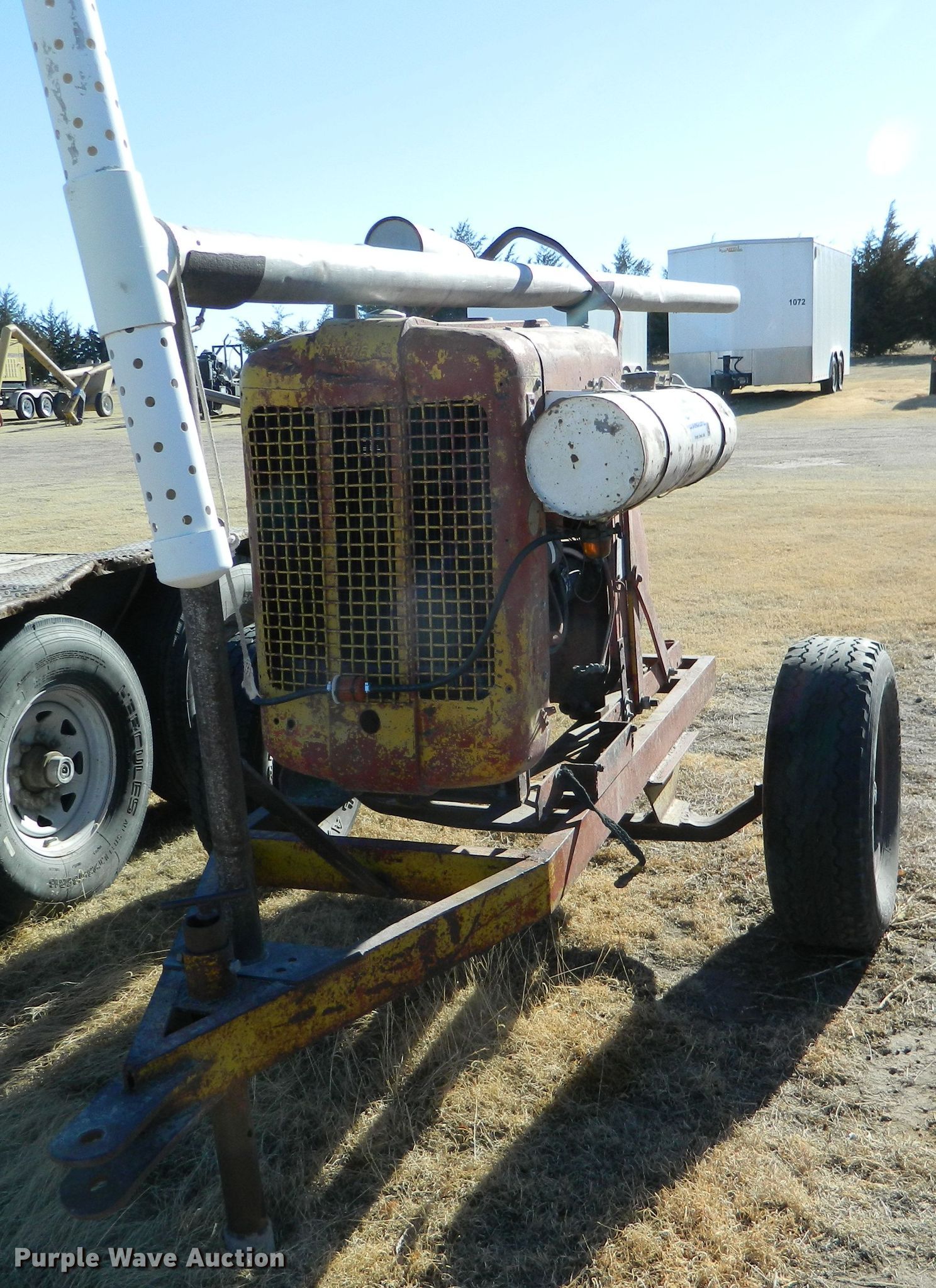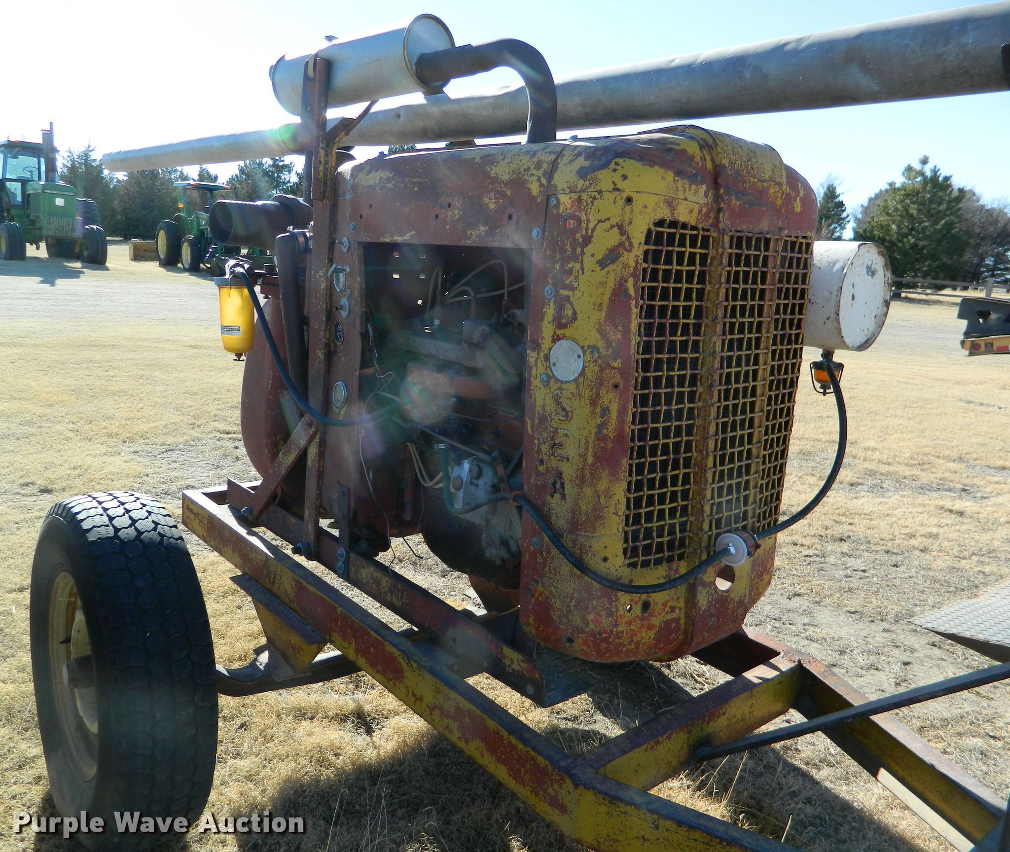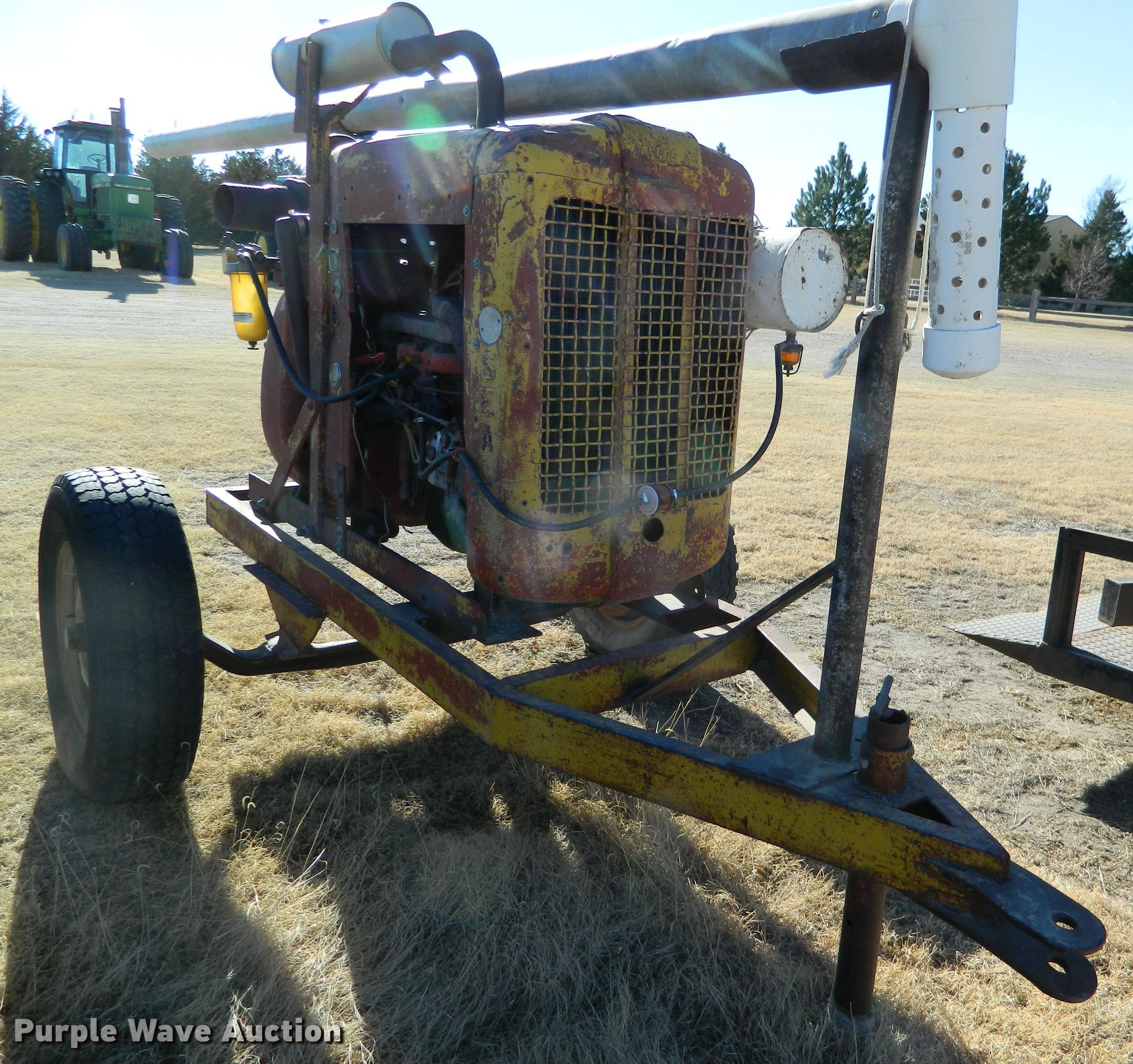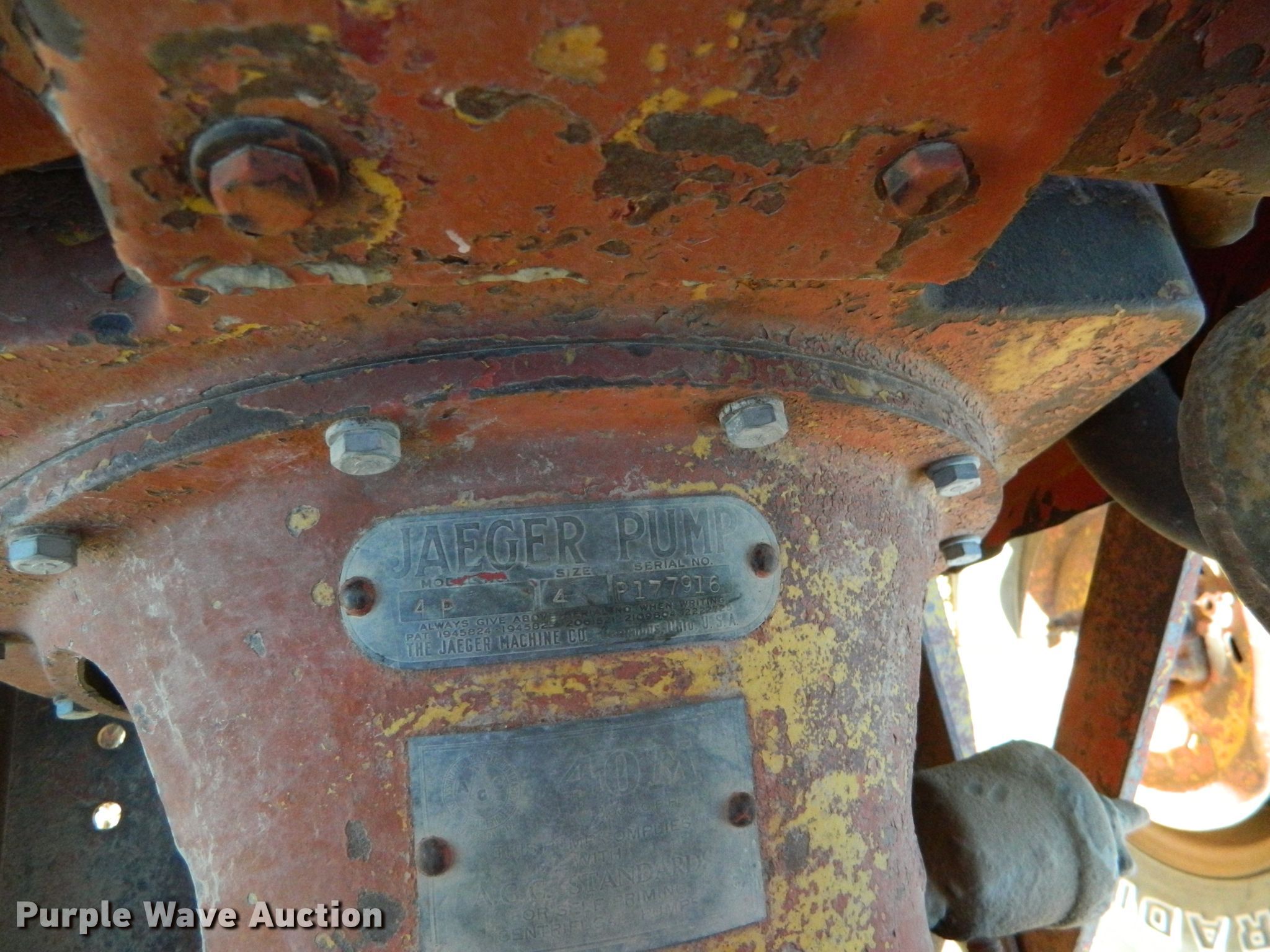 Purple Wave is selling a used Pump in Kansas. This item is a Jaeger 4P water pump with the following: Four cylinder gas engine, Pump size: 4, 235/75R15 tires, Serial P177916