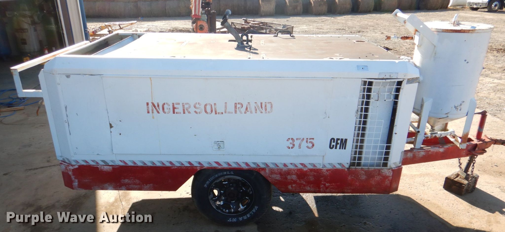 Ingersoll Rand air compressor. 5,956 hours on meter. Engine Deutz , Serial: 822500111, Cylinders: 6, Fuel type: Diesel. Operational CFM: 375. Trailer Overall length: 15' 2", Overall width: 64", Ball hitch size: 2". Tires Tire size: P265/70R16. Transfer of ownership documentation will be a bill of sale. 754950J391408. Midwest Consulting & Construct. 2719 OK-71. Quinton, OK 74561