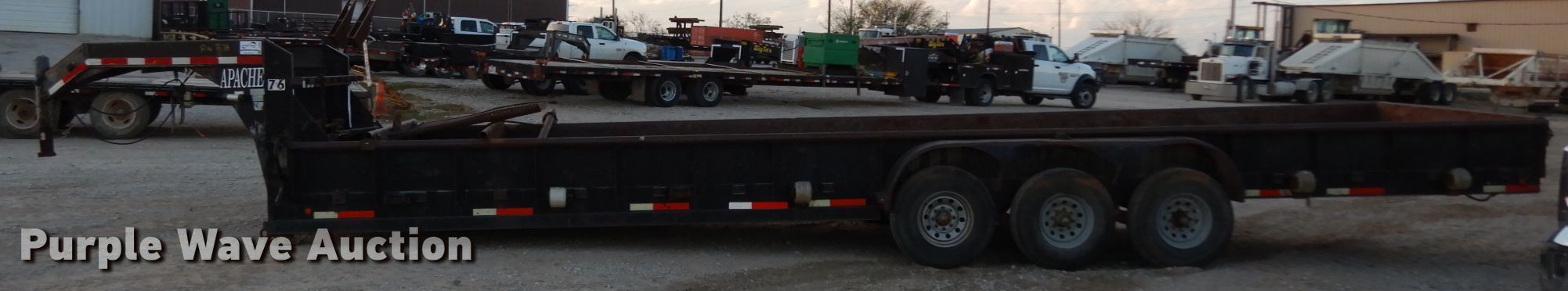 Purple Wave is selling a used Equip. Trailer in Texas. This item is a 2007 Apache equipment trailer with the following: 40'L x 107"W overall, 32'L x 83"W wood deck, 16" side height, 24" floor height, Dual leg landing gear, Spring suspension, Electric brakes, ST235/85R16 tires, GVWR 21,000 lbs, Unit# T-76