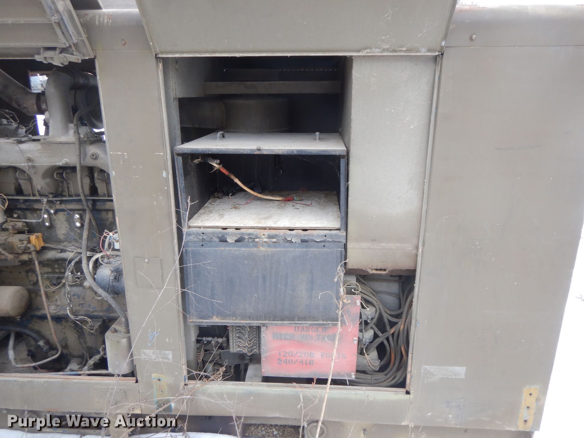 1967 ITT Service MB-15W generator. 472 hours on meter, Serial: 67-0242. Engine Cummins, Cylinders: 6, Fuel type: Diesel. Operational Generator kVA: 189, kW: 150, Electric start, Fuel tank. Notes Unit was transported without covering exhaust , Non-operational unit. JG Quarry Equipment. 305 SW Elm Ln. Trenton, MO 64683