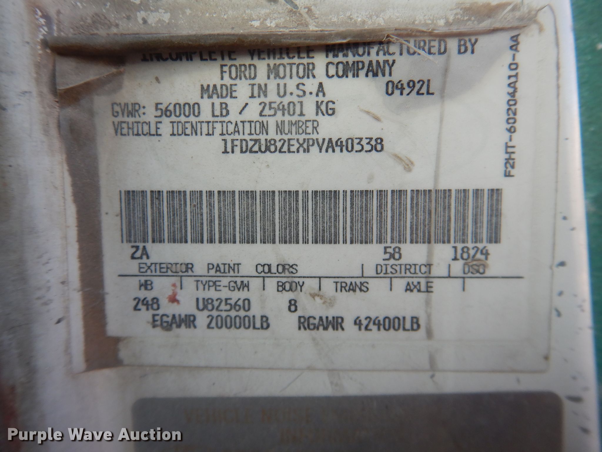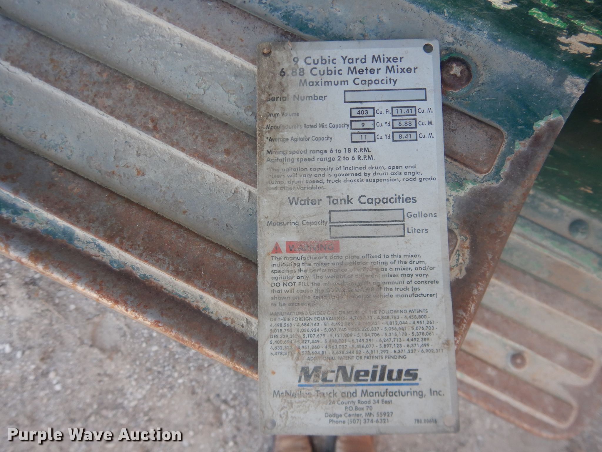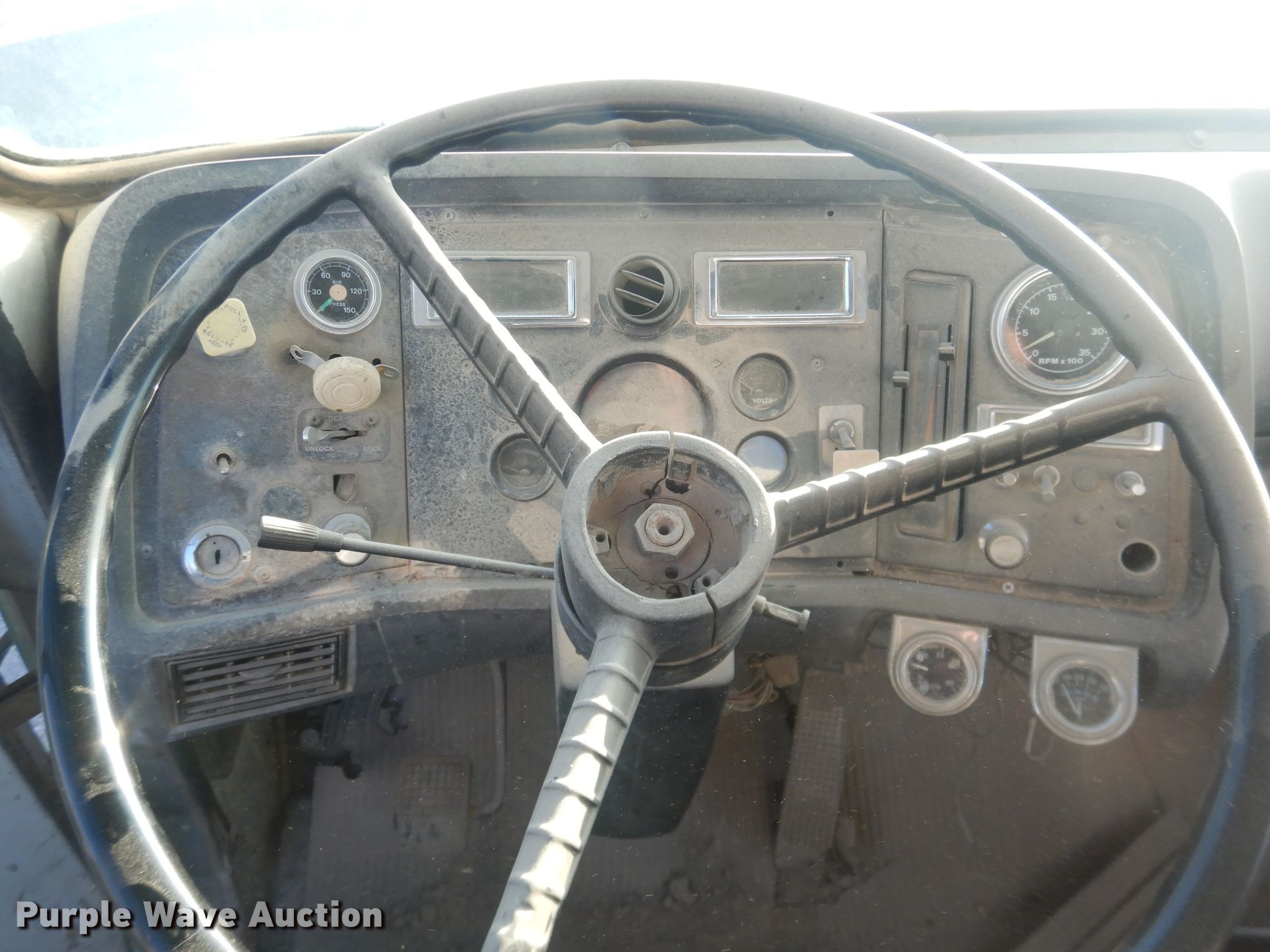 1993 Ford L8000 ready mix truck. 186,543 miles on odometer, Unit #: 10. Engine Displacement: 8.3L, Cylinders: 6, Fuel type: Diesel. Transmission Eaton Fuller Road Ranger, Manual, Speed: 8. Chassis Axles: Tandem, Suspension: Spring, Brakes: Air, PTO. Interior Heat. Operational Mixer TMMB, Serial: 773, Capacity: 9 cu.yd., Discharge: Rear, In-cab controls, Water tank capacity: 125 gallons, Chute Extensions: 1, Chute type: Steel.. Tires Front: 425/65R22.5, Rear: 11R22.5. Notes Unknown operating condition. Iowa title. 1FDZU82EXPVA40338. Croell Redi-Mix. 1531 Airpark Ave. Liberal, KS 67901