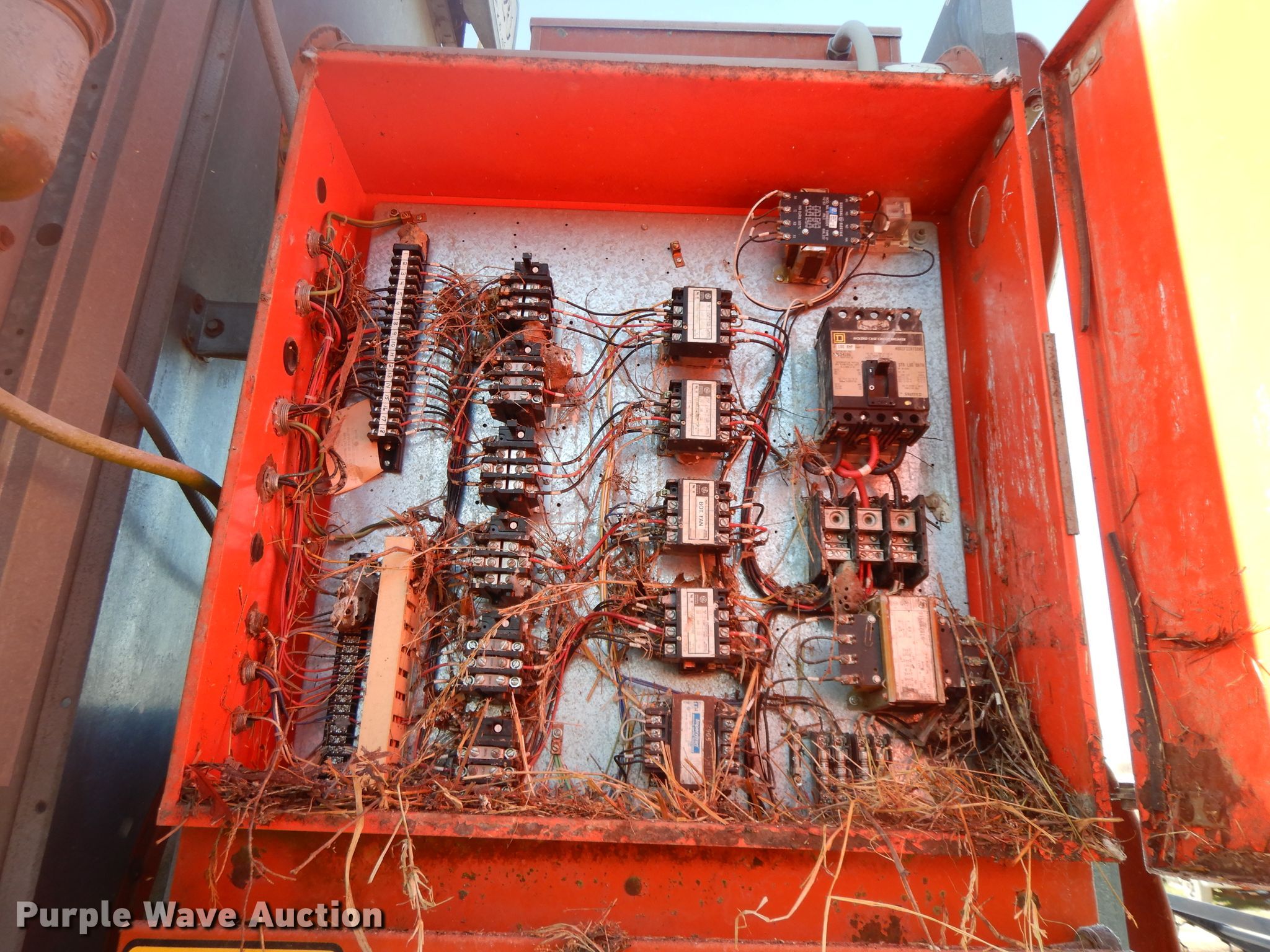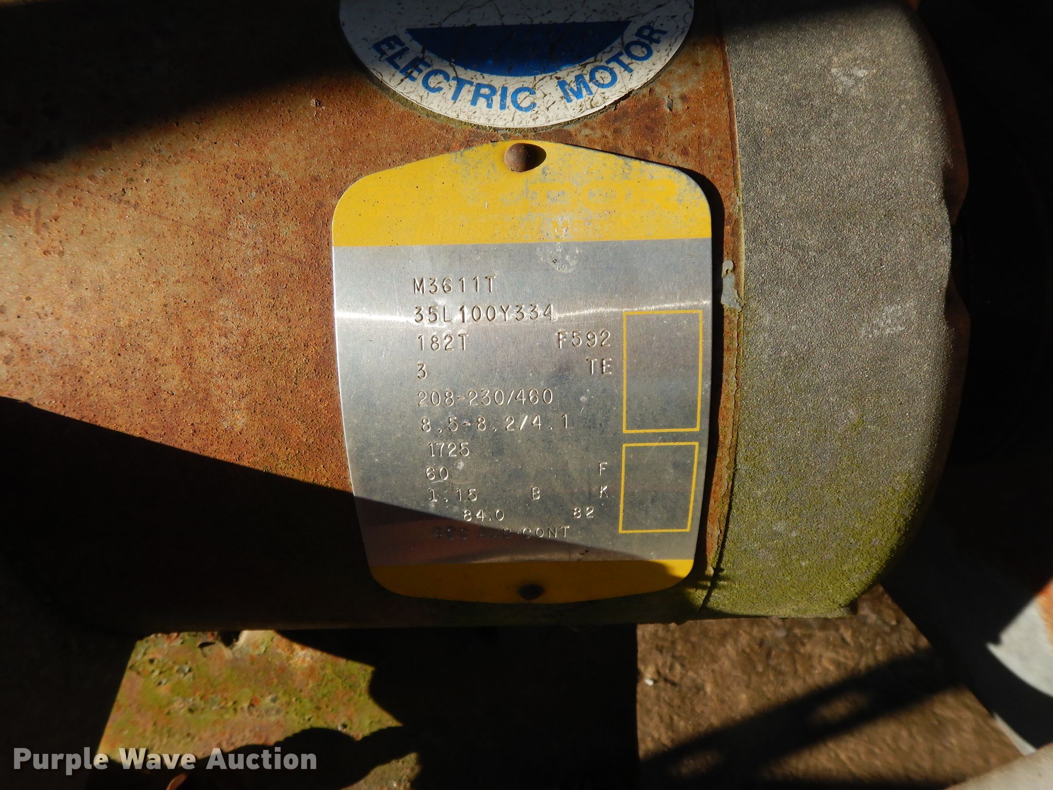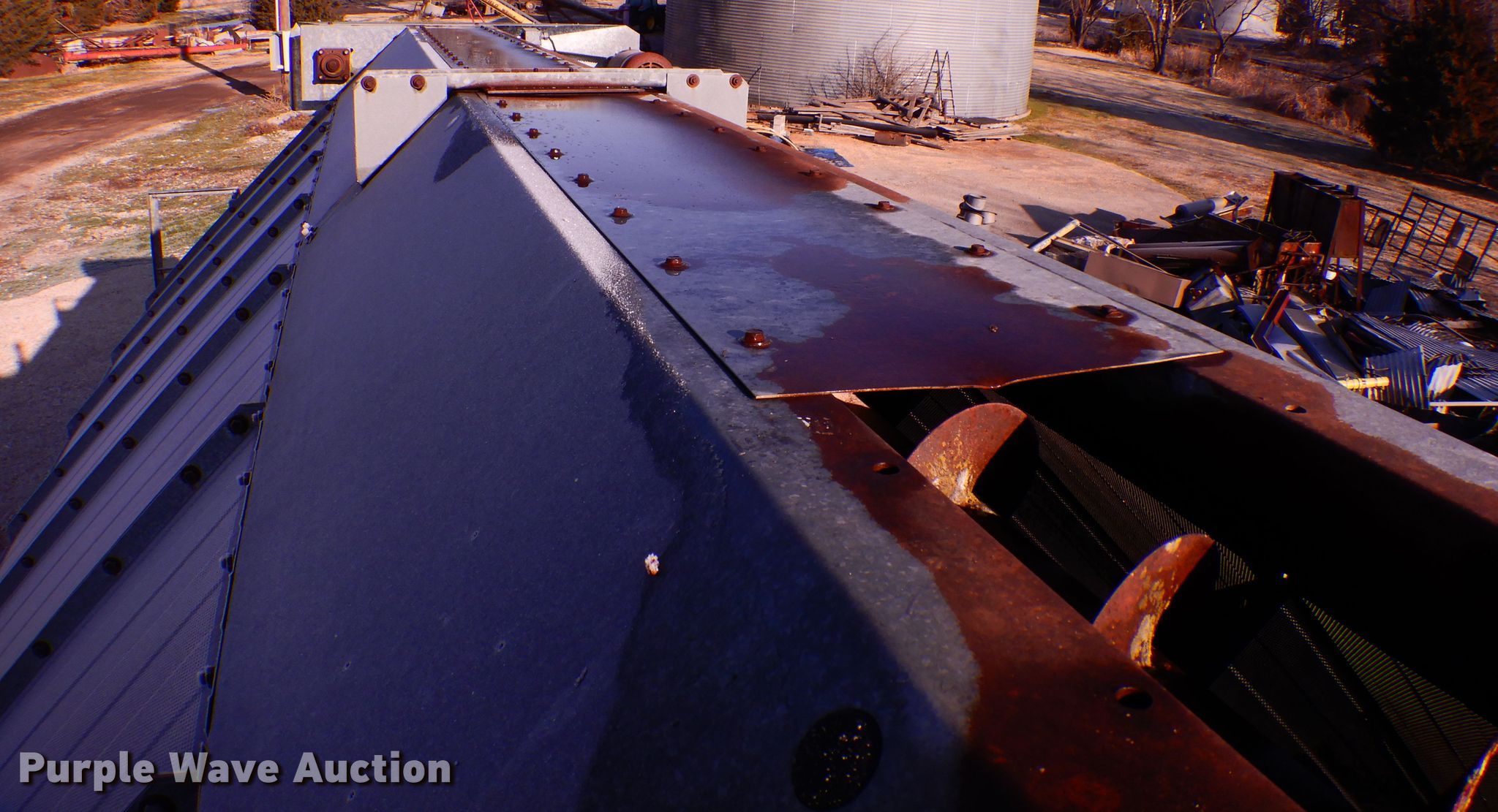 Purple Wave is selling a used Grain Dryer in Kansas. This item is a Farm Fan U1024 JDHI-3-440VNG grain dryer with the following: 922 hours on meter, 14' x 149" dryer compartment, Dual fans, Front and rear access ladders, Chain drive, Electric motor, Model M3611T, 208-230-/460V, 1,725 RPM, Three phase, Serial 35L100Y334, Enclosed control panel, Model CF/SA 320 3E 440V NG DSS HR 10/10, Serial L-6012, Single axle, Currently unattached, 7.50R16 tires, Serial 118088