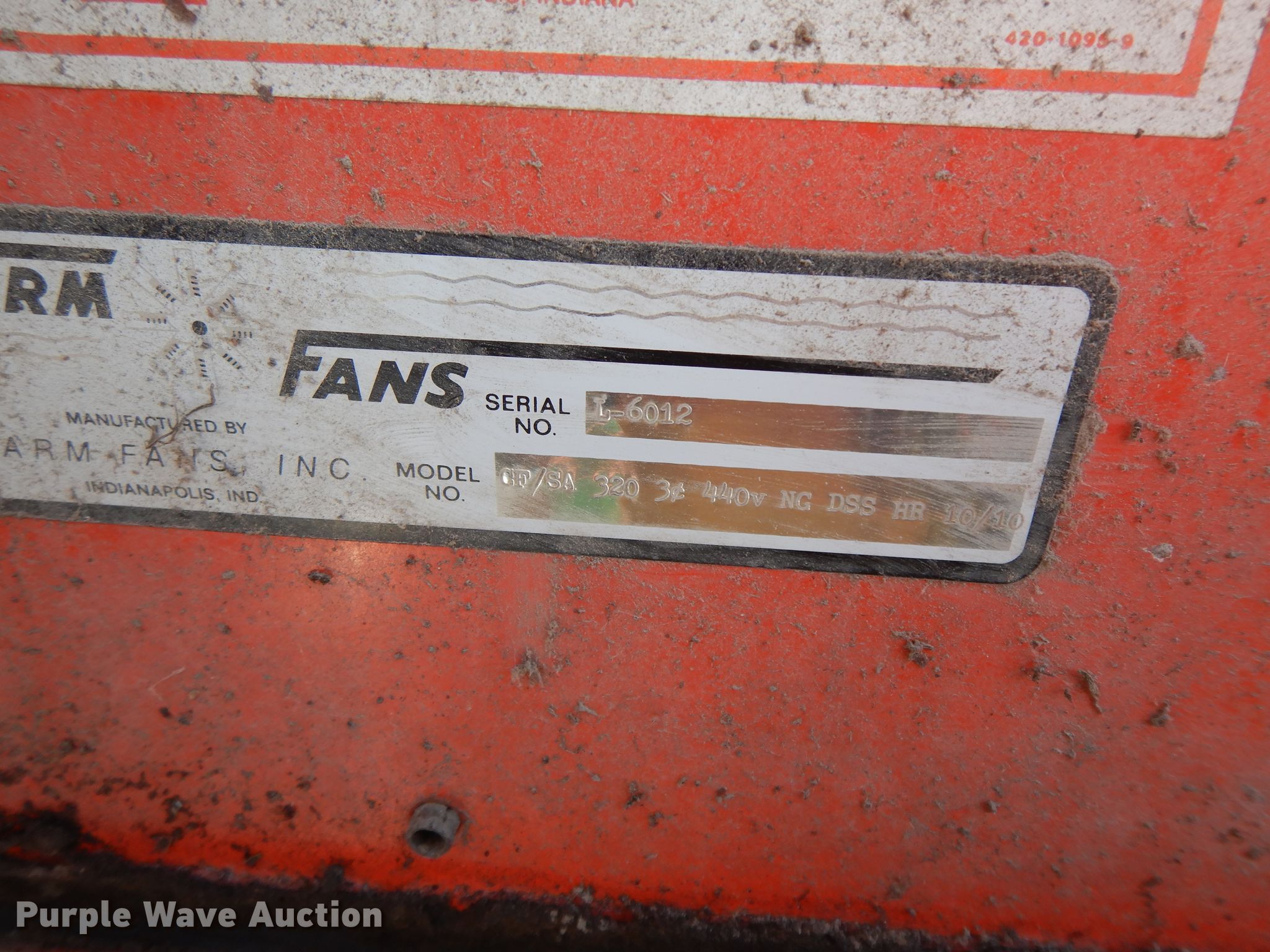 This Farm Fan U1024 JDHI-3-440VNG grain dryer will sell to the highest bidder regardless of price.