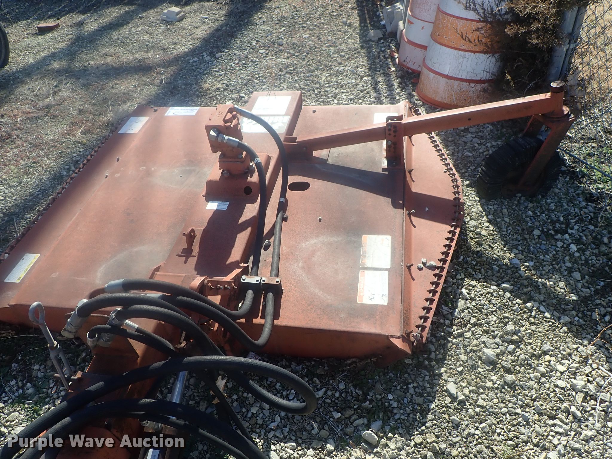 60"W rotary mower. Solid tail wheel, Three point, Unit has sat for several years Water may be present in hydraulic reservoir. City of Goessel. Goessel, KS 67053