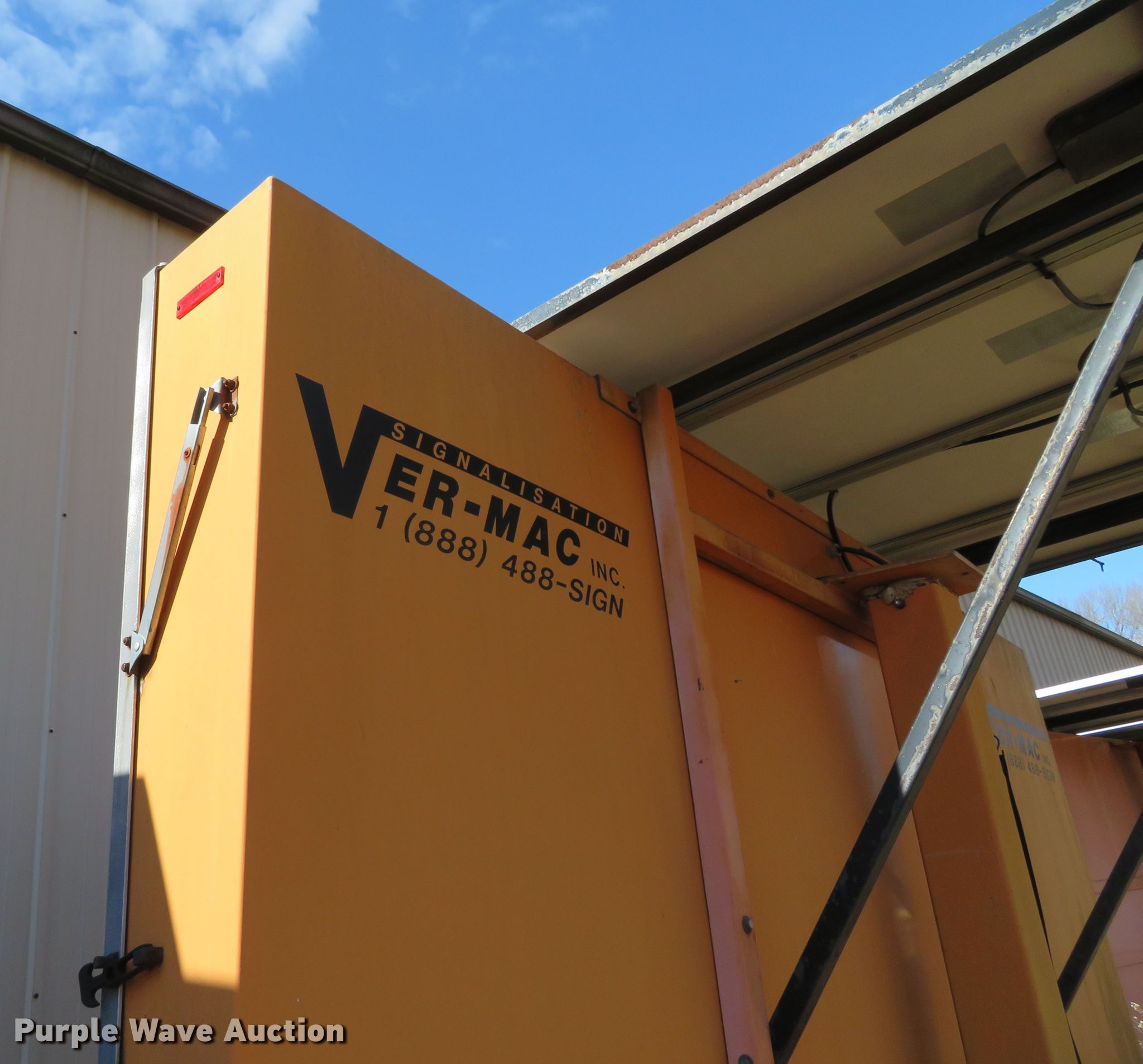 Purple Wave is selling a used Road Safety Equip. in Missouri. This item is a (2) Ver-Mac PCMS1210 message boards with the following: 132"L x 72"H board, ST225/75R15 tires, Parts only, Non-operational unit, Serial 99-09283/00-10492, Unit# MB4/MB3